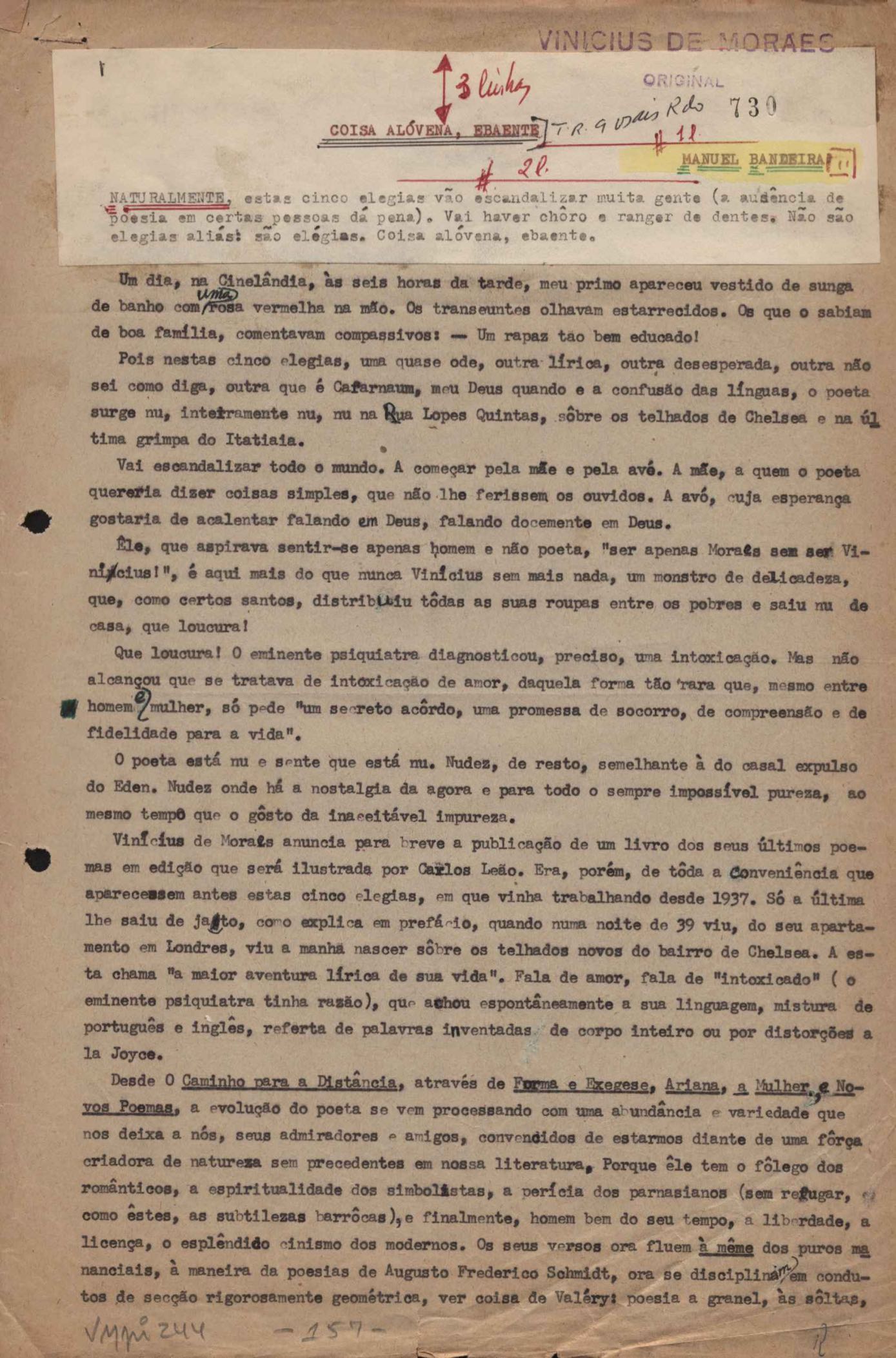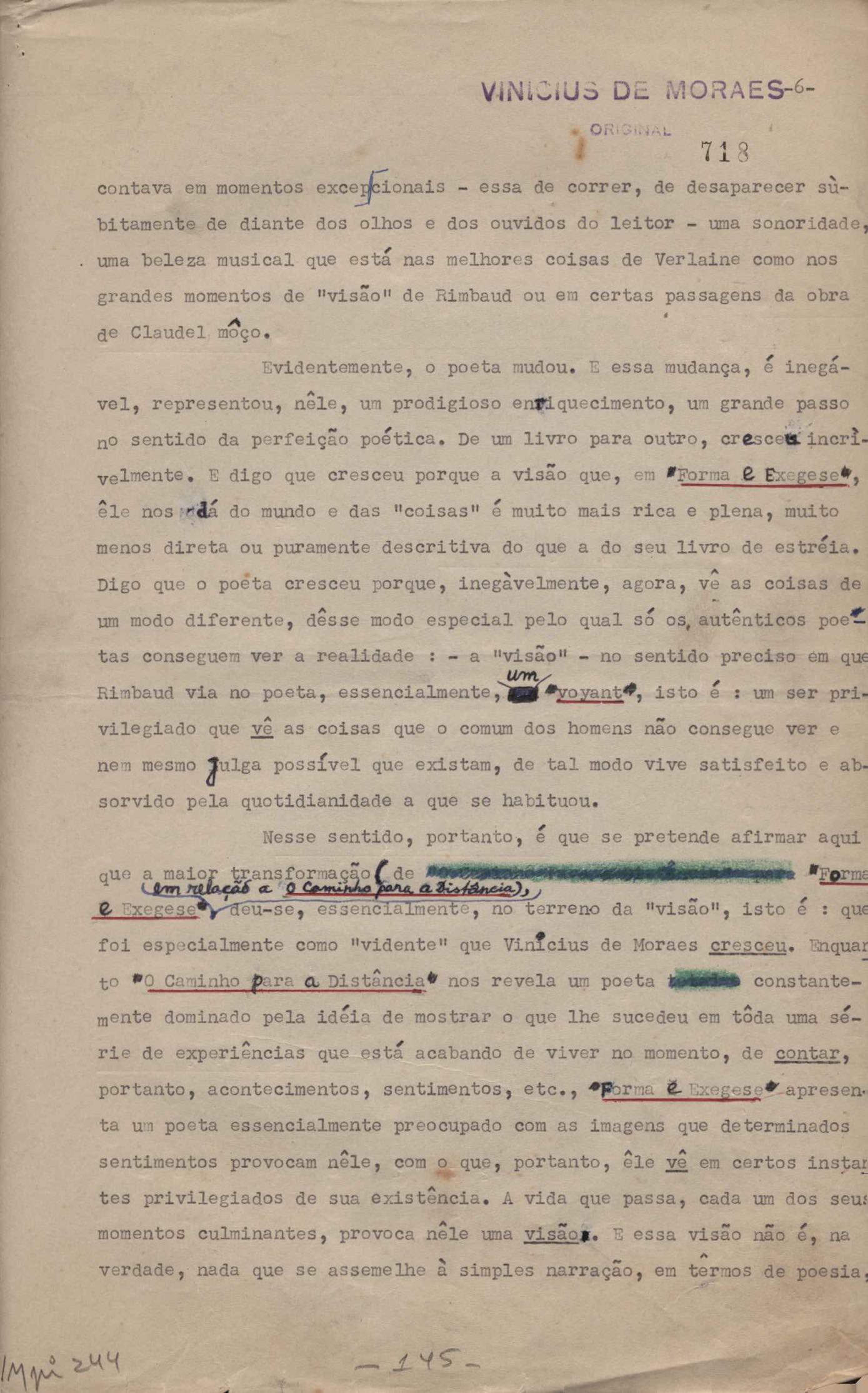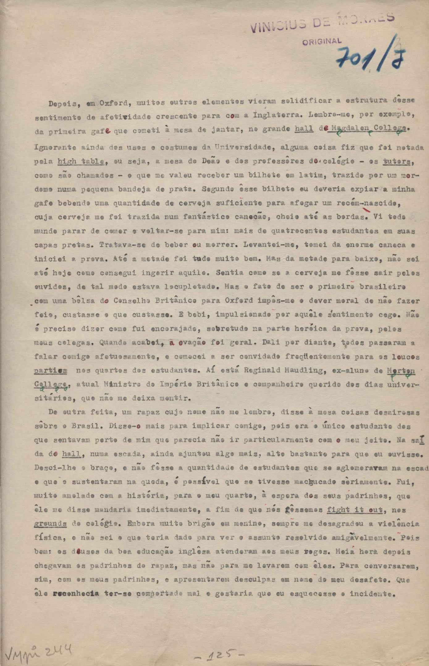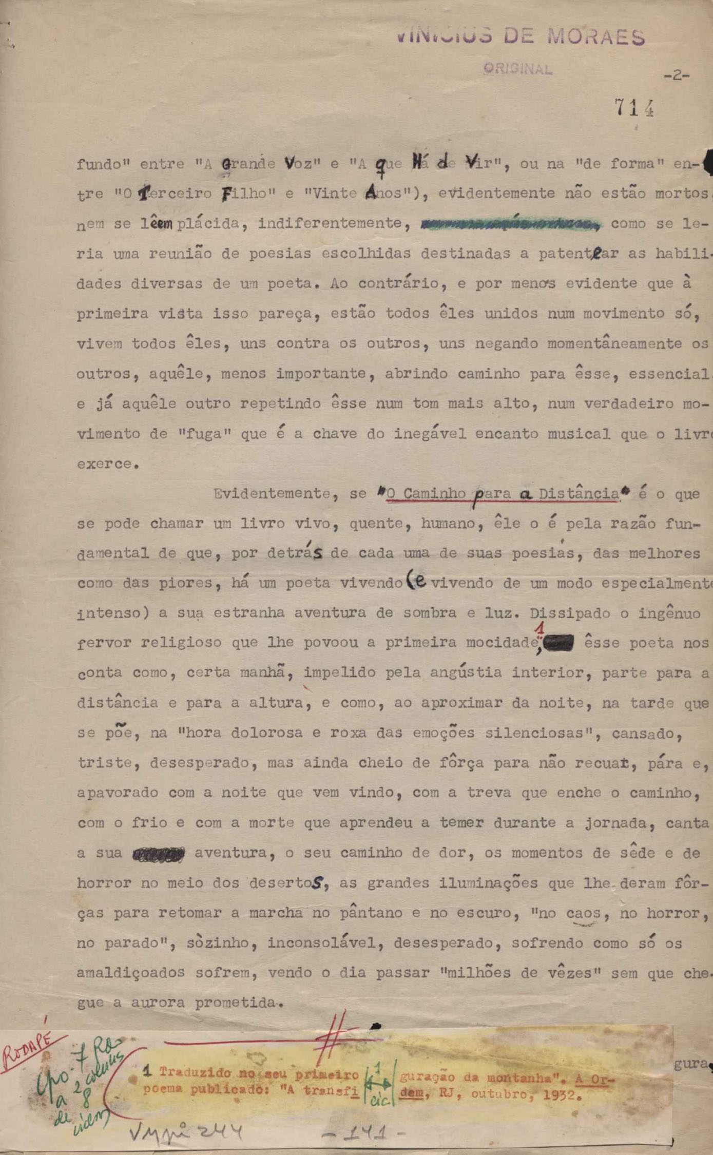 Datiloscrito que serviu de base à primeira edição publicada pela José Aguilar Editora.