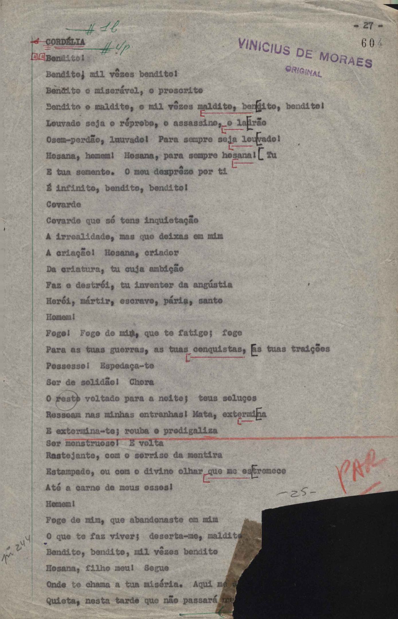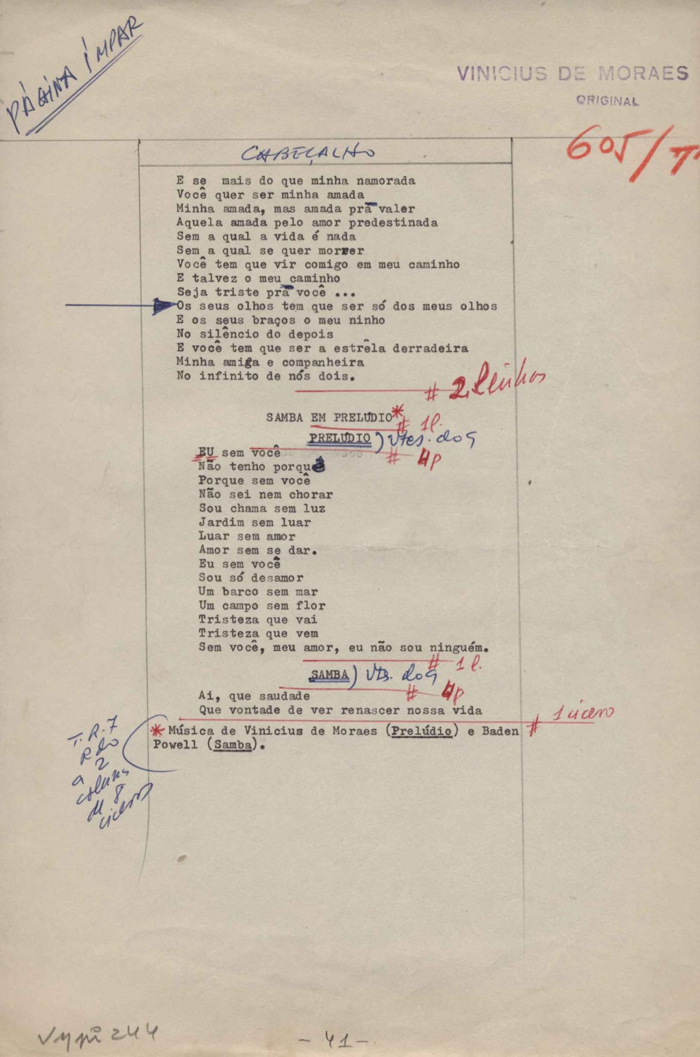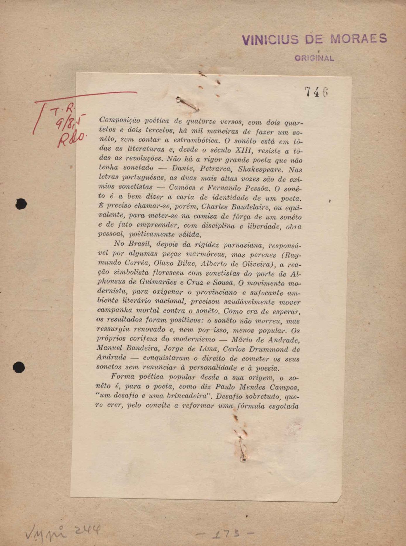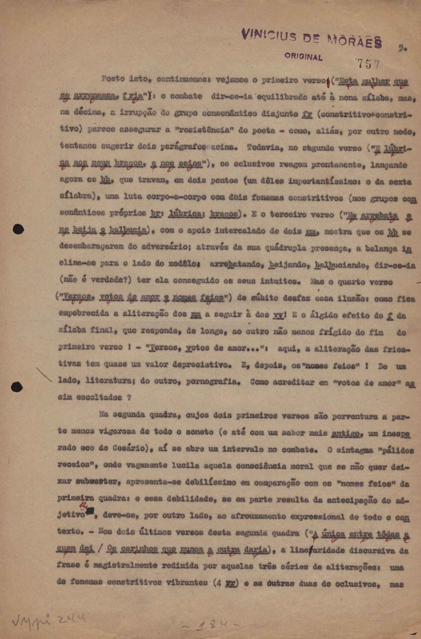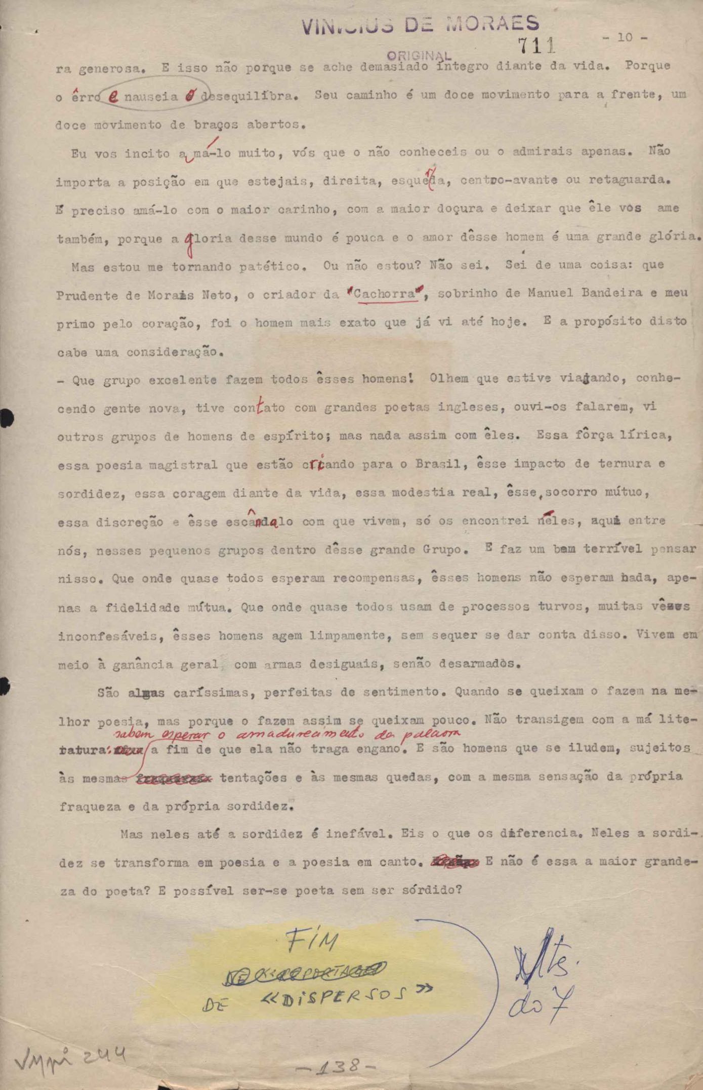 Datiloscrito que serviu de base à primeira edição publicada pela José Aguilar Editora.