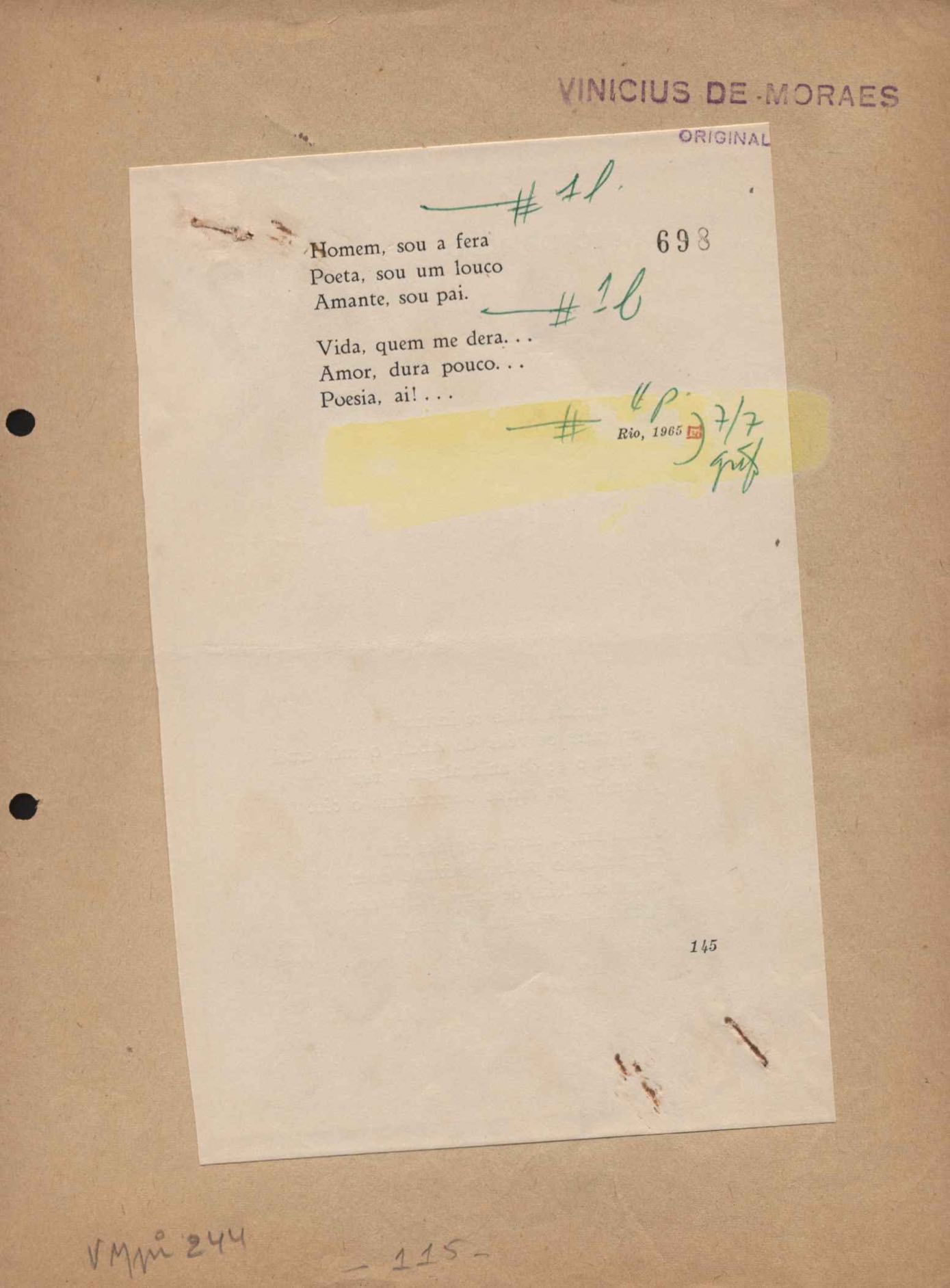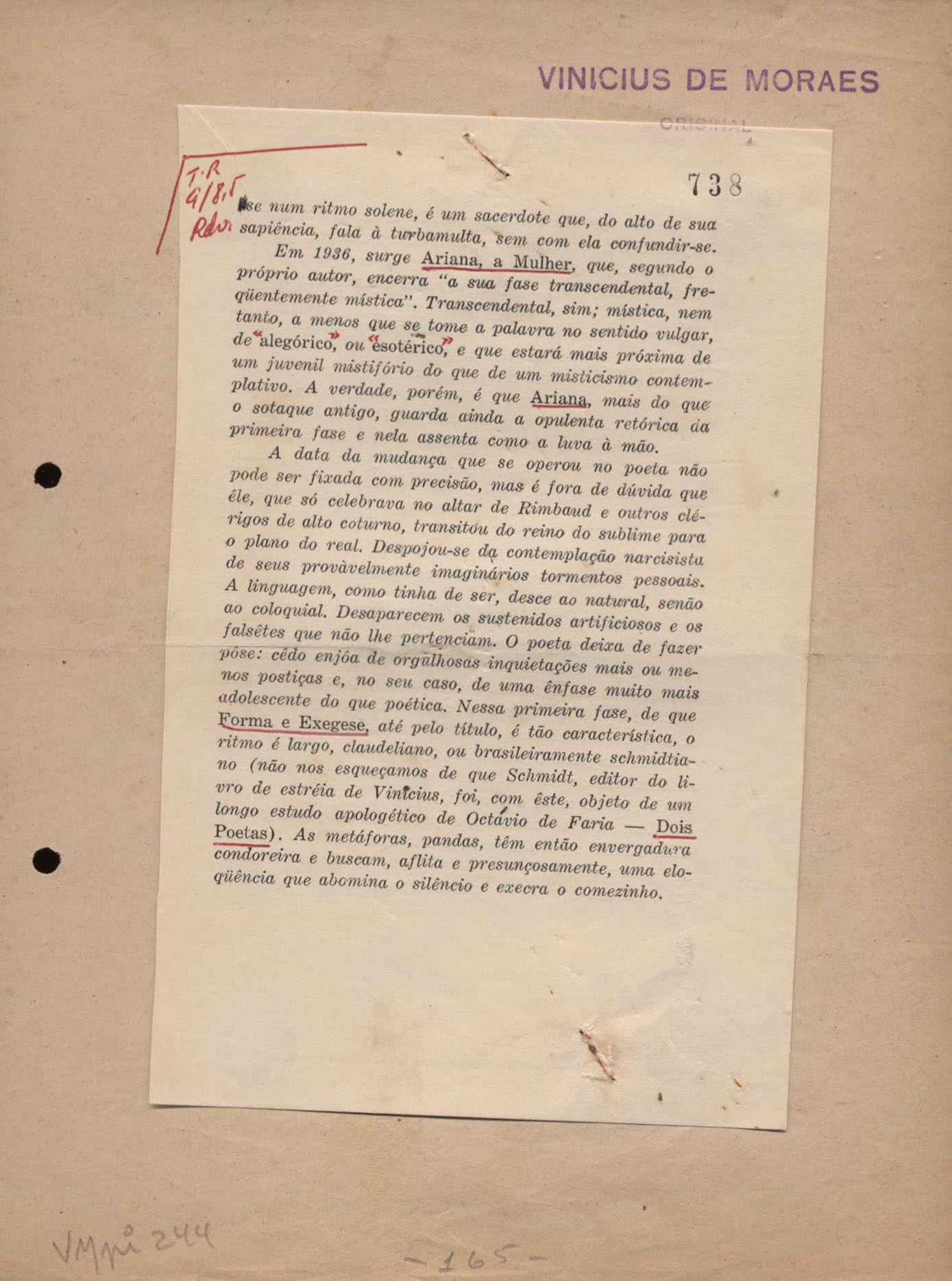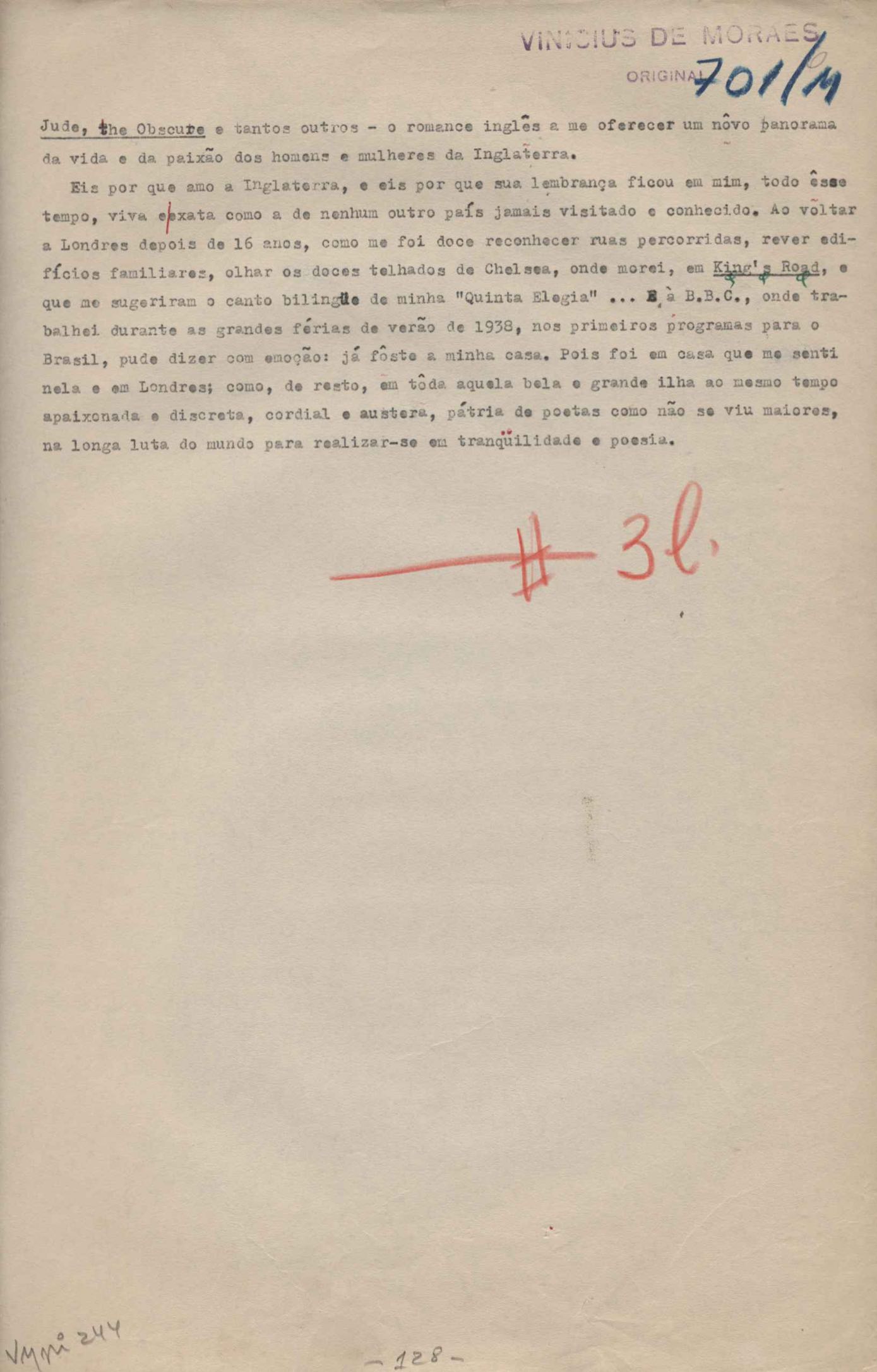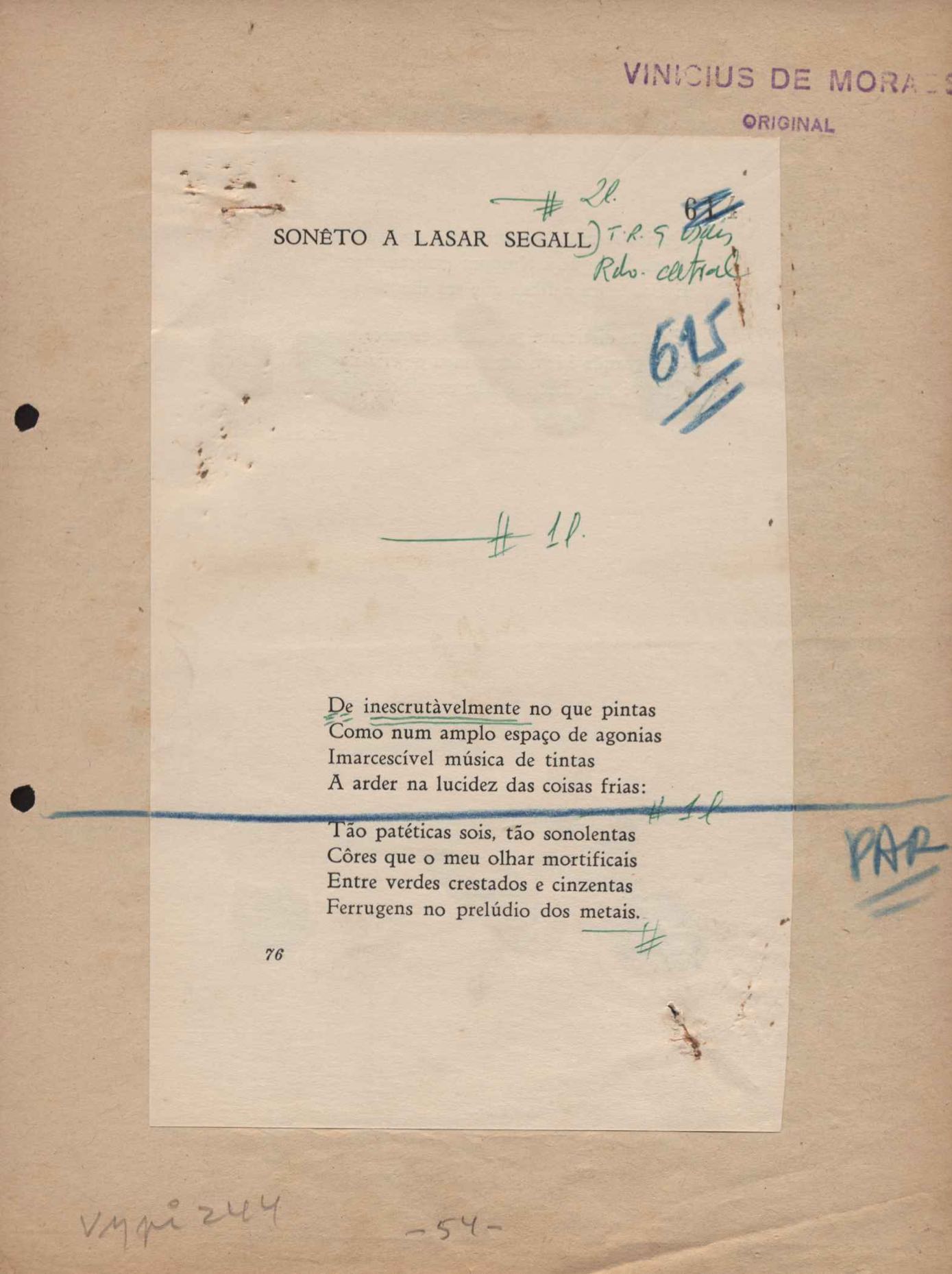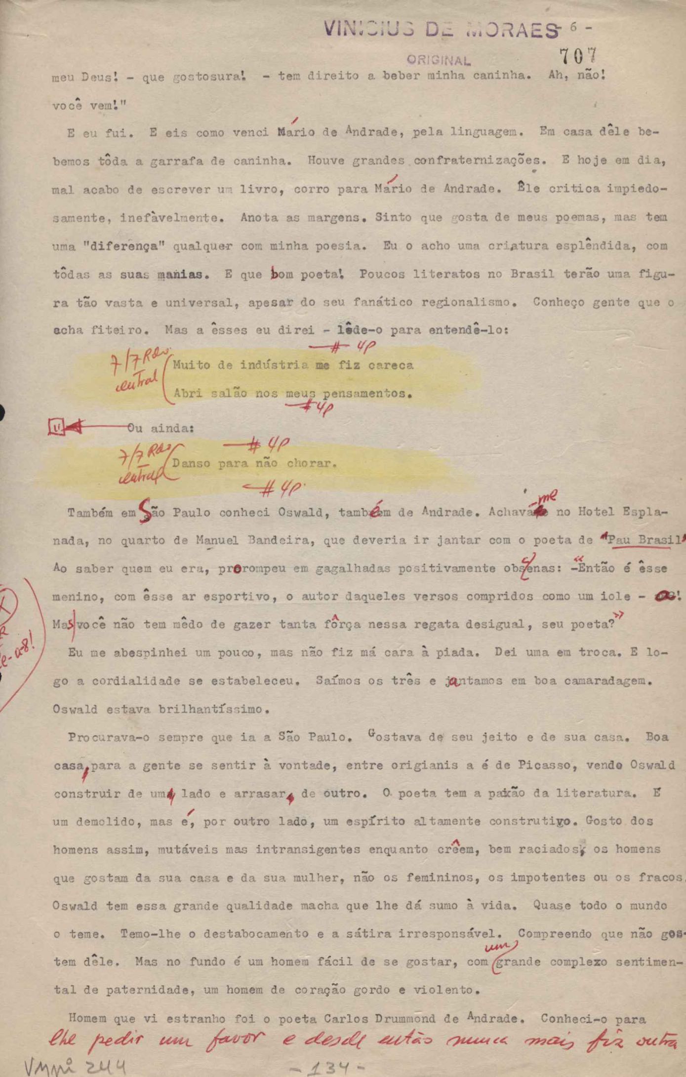Datiloscrito que serviu de base à primeira edição publicada pela José Aguilar Editora.