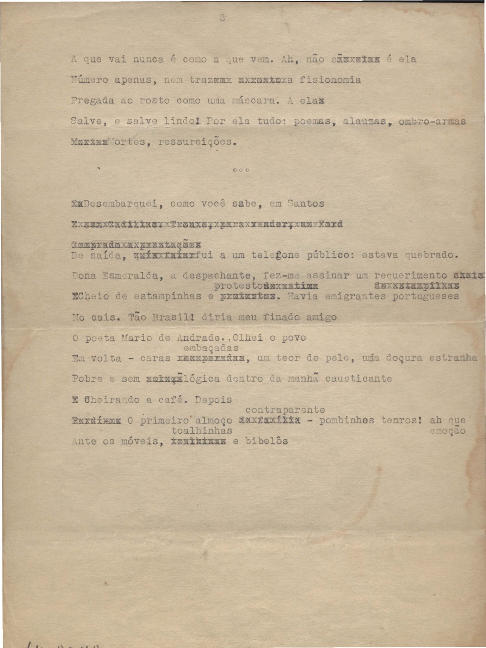 Poemas (231). "A Berlim", "A você, com amor", "Abecedê dos bichos", "Os acadêmicos… das 5 horas", "Acalanto do tirano", "Acontecimento", "Adeus, amigos meus", "Alexandra, a caçadora", "Alexandrinos a Florença", "O alfaiate", "Amor", "Angina pultácea", "O anjo e o túmulo", "Anistia", "Antônia, as flores e os cactos", "Aos de casa", "Aribe", "Áries", "Ave Susana", "Aventuras de Zorinha", "Balada da perna ortopédica", "Balada de Santa Luzia", "Balada do Rei Gê Tule", "Balada dos tecelões", "Balango das debutantes", "Banho", "Beethoven", "Beleza do corpo da amiga", "Bellum omnia contra omnes", "Os bens imóveis", "O bilhar", "Bola", "A cabeça em chamas", "A cabritinha", "Cadenza no poema a Eisenstein", "O caipora", "Canção da alta irrealidade", "Canção da esposa", "Canção do Tinhá", "Canção em lágrimas na morte de Manuel Bandeira", "O candiru", "O cântico das águas", "Cantiga do ausente", "Cantiga X", "Cantiga XI", "Cantiga XIII", "Canto", "Canto V", "Canto VI", "Canto VII", "Canto do deserto", "Canto do desespero", "Canto do soldado desconhecido", "Canto triste", "O caso Sacco e Vanzetti", "Cemitério marinho", "China minha", "Coma alcóolico", "Conhecimento", "Cotidiano nº 2 ou como já dizia o Chico…", "Cromo", "Da fidelidade", "Desafio", "O desespero da caridade", "Desolação", "Dia de Oxalá", "Dobrado de mestre cucas", "Dois sonetos com avião", "Elba, Elbinha, Elbita", "Elegia a Chaplin Calvero Chaplin", "Elegia de Belém do Pará", "Elegia de Paris", "Elegia fúnebre para minha prima", "O eleito", "Eliana", "Em algum lugar", "Em Montevidéu", "Enigma", "Epitalâmio", "Esboço", "Estâncias a minha filha", "Estava triste o pinguim?", "Estudo", "Eu, cá por mim, odeio paradoxos", "Explicando", "Eu nasci marcado pela paixão…", "Exumação de Mário de Andrade", "Fala íntima", "A formiga", "A freirinha", "Frevo do barão", "Fuga e adágio", "Fui andando por um caminho…", "O general", "O haver", "High barbaree", "Himeneu", "Hino da Escola Monteiro Lobato", "História de alma", "O homem do chapéu de coco foi visto andando pelas cercanias", "Os homens da terra", "Idílio", "A infância do poeta", "José", "Lázaro", "Legenda", "A legenda do príncipe poeta", "Little bird", "Little mohee", "Lua do trópico", "Lullaby to Susana", "Madrigal", "Mãe", "O maestro Villa-Lobos fixa-se na eternidade", "O mal de Nava", "Marcha", "Marcha da Guanabara", "Mário", "Marlene", "Medo de amar", "A melhor amiga", "Menino de roça", "O menino no cemitério", "Mensagem a minha amiga Danuza Leão Wainer", "A miragem", "My darling’s Batel", "Modinha de Natal para a bem-amada", "A morte de meu carneirinho", "A morte do pintainho", "A mosca", "O mosquito", "Na esperança de teus olhos", "Não me fales de adeus", "Não te dou perdão", "Nature boy", "Natureza humana", "Noturno de Genebra", "Numa noite de luar", "O que disseram as flores a respeito de uma outra chamada Virgínia", "Ode a maio", "Ode a S. Francisco de Assis", "Ode no octontenário de Manuel Bandeira", "Oferenda", "Otávio", "P(b)a(o)i", "Padre nosso", "O pai", "O passante", "O pastor", "Patético", "Paulinho Garcez", "Pensée de desespoir", "A perdida esperança", "Pescador", "Petite histoire naturelle", "Plagiando o poeta…", "Poema de ano novo", "Poema erótico para Isabel", "O poema errante de 7 de outubro", "Poema feito para chegar aos ouvidos de S. Teresa", "Poema na morte de meu compadre Carlos Echenique", "Poesia de água doce feita com água salgada às dez e meia", "O poeta diz adeus a sua amiga", "A ponte de Van Gogh", "Ponto da aurora nascendo", "Por você", "O pranteado", "O presente", "Pressentimento", "Princípio", "As procelárias", "Quadrinha", "Quando um peixe-espada", "Quase um adeus", "Quem és", "Quem nunca comeu melado", "Quem parte não reparte", "Questões de cinema", "Quiromancia", "Realidade", "Redondilhas pra Tati", "A retirada", "Retrato de Carlos Drummond de Andrade", "Retrato de Maria Lúcia (II)", "Romance da amada e da morte", "Romance da morena", "Romanza de alma", "A rosa", "Os rouxinóis", "O sacrifício do vinho", "Sagitário", "A santa de Sabará", "Santo Antônio", "Saudade de você", "Sinos", "Sob o trópico de câncer", "O soldado", "Soneto", "Soneto a Oxford", "Soneto a quatro mãos", "Soneto ao Caju", "Soneto da desesperança", "Soneto da Ilha", "Soneto da primavera", "Soneto da criação", "Soneto de luz e treva", "Soneto de um casamento", "Soneto do amigo", "Soneto do amor demais", "Soneto do breve momento", "Soneto na morte de José Artur da Frota Moreira", "Soneto sentimental à cidade de São Paulo", "Souvenir", "Stelas…", "A tartaruga da paz", "Tatiografia", "Teorema poético", "Touro", "A transfiguração da montanha", "Trovas", "A última música", "Última primavera", "O último liberto", "Unção", "A vã pergunta", "Valsa suburbana", "Verdade", "Você não é de nada mesmo", "Volta" e "A volta de Lázaro". Anexo: 1. Outras versões manuscritas e datilografadas de "Adeus, amigos meus", "Alexandra, a caçadora", "Alexandrinos a Florença", "O anjo e o túmulo", "Ave Susana", "Aventuras de Zorinha", "Os bens imóveis", "Canção do Tinhá", "Canção em lágrimas na morte de Manuel Bandeira", "Canto triste", "Da fidelidade", "O desespero da caridade", "Dois sonetos com avião", "Elba, Elbinha, Elbita", "Elegia fúnebre para minha prima", "Esboço", "Estâncias a minha filha", "Exumação de Mário de Andrade", "Fala íntima", "Frevo do barão", "O haver", "Os homens da terra", "Mãe", "O menino no cemitério", "A miragem", "A morte do pintainho", "Na esperança de teus olhos", "Ode a São Francisco", "Patético", "Poema de ano novo", "Poema na morte de meu compadre Carlos Echenique", "O poeta aprendiz [homônimo]", "As procelárias", "O que disseram as flores a respeito de uma outra chamada Virgínia", "Quase um adeus", "Retrato de Carlos Drummond de Andrade", "A santa de Sabará", "Sinos", "Sob o Trópico do Câncer", "Soneto a Oxford", "Soneto ao Caju", "So