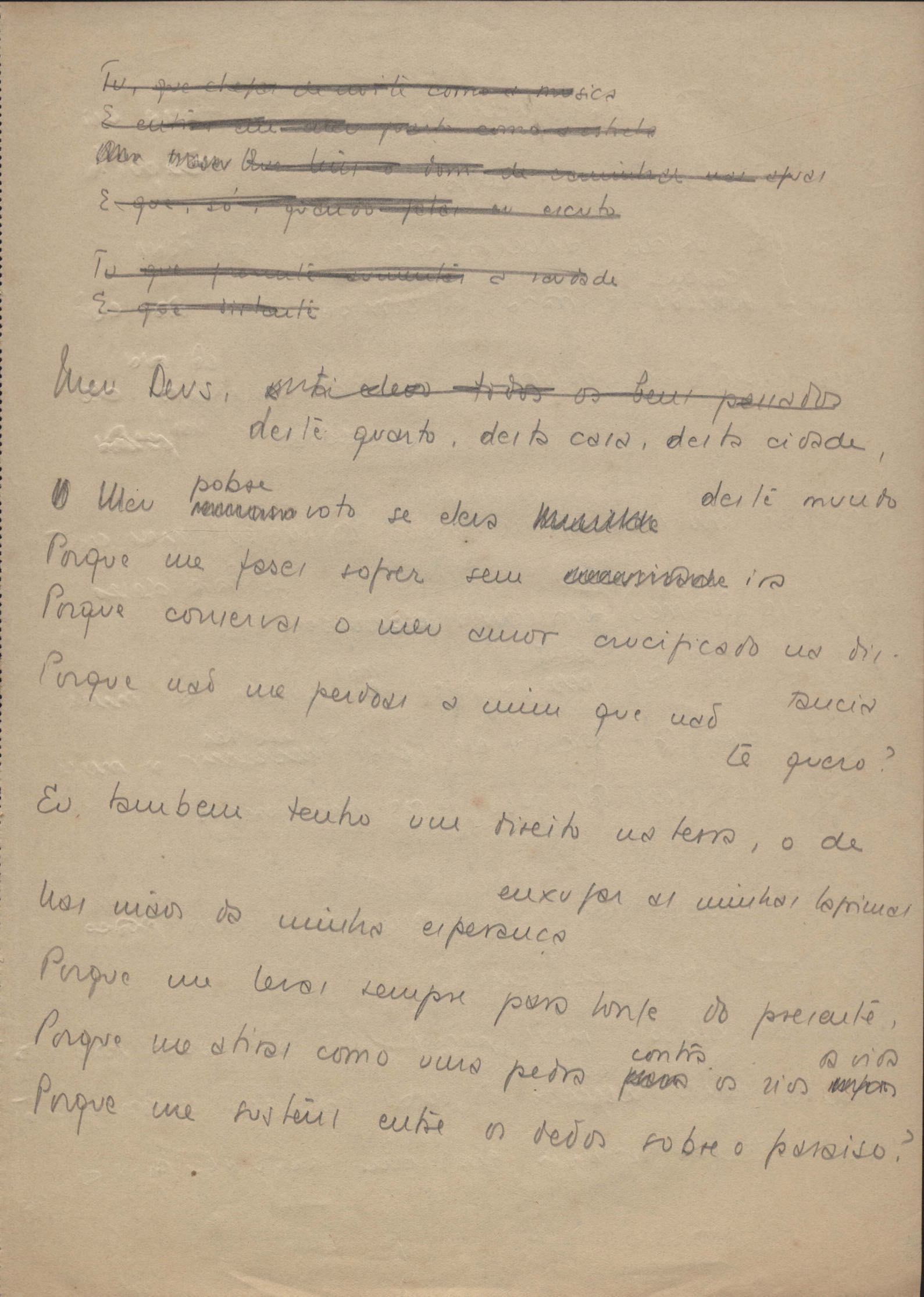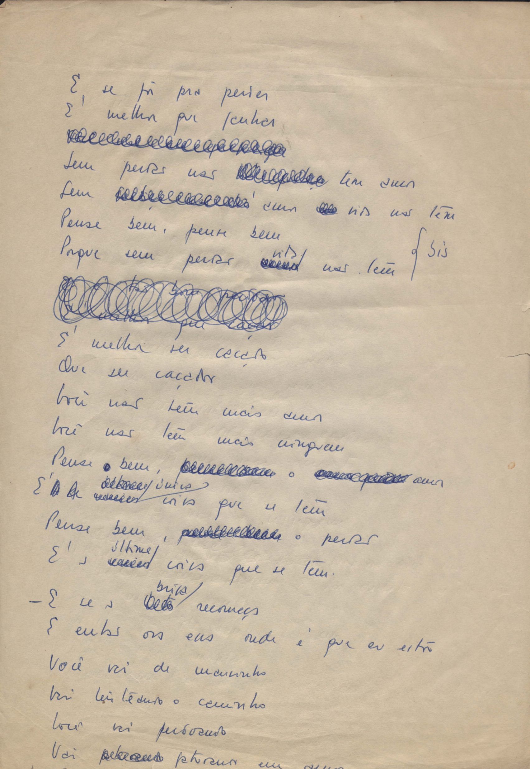 Poemas (231). "A Berlim", "A você, com amor", "Abecedê dos bichos", "Os acadêmicos… das 5 horas", "Acalanto do tirano", "Acontecimento", "Adeus, amigos meus", "Alexandra, a caçadora", "Alexandrinos a Florença", "O alfaiate", "Amor", "Angina pultácea", "O anjo e o túmulo", "Anistia", "Antônia, as flores e os cactos", "Aos de casa", "Aribe", "Áries", "Ave Susana", "Aventuras de Zorinha", "Balada da perna ortopédica", "Balada de Santa Luzia", "Balada do Rei Gê Tule", "Balada dos tecelões", "Balango das debutantes", "Banho", "Beethoven", "Beleza do corpo da amiga", "Bellum omnia contra omnes", "Os bens imóveis", "O bilhar", "Bola", "A cabeça em chamas", "A cabritinha", "Cadenza no poema a Eisenstein", "O caipora", "Canção da alta irrealidade", "Canção da esposa", "Canção do Tinhá", "Canção em lágrimas na morte de Manuel Bandeira", "O candiru", "O cântico das águas", "Cantiga do ausente", "Cantiga X", "Cantiga XI", "Cantiga XIII", "Canto", "Canto V", "Canto VI", "Canto VII", "Canto do deserto", "Canto do desespero", "Canto do soldado desconhecido", "Canto triste", "O caso Sacco e Vanzetti", "Cemitério marinho", "China minha", "Coma alcóolico", "Conhecimento", "Cotidiano nº 2 ou como já dizia o Chico…", "Cromo", "Da fidelidade", "Desafio", "O desespero da caridade", "Desolação", "Dia de Oxalá", "Dobrado de mestre cucas", "Dois sonetos com avião", "Elba, Elbinha, Elbita", "Elegia a Chaplin Calvero Chaplin", "Elegia de Belém do Pará", "Elegia de Paris", "Elegia fúnebre para minha prima", "O eleito", "Eliana", "Em algum lugar", "Em Montevidéu", "Enigma", "Epitalâmio", "Esboço", "Estâncias a minha filha", "Estava triste o pinguim?", "Estudo", "Eu, cá por mim, odeio paradoxos", "Explicando", "Eu nasci marcado pela paixão…", "Exumação de Mário de Andrade", "Fala íntima", "A formiga", "A freirinha", "Frevo do barão", "Fuga e adágio", "Fui andando por um caminho…", "O general", "O haver", "High barbaree", "Himeneu", "Hino da Escola Monteiro Lobato", "História de alma", "O homem do chapéu de coco foi visto andando pelas cercanias", "Os homens da terra", "Idílio", "A infância do poeta", "José", "Lázaro", "Legenda", "A legenda do príncipe poeta", "Little bird", "Little mohee", "Lua do trópico", "Lullaby to Susana", "Madrigal", "Mãe", "O maestro Villa-Lobos fixa-se na eternidade", "O mal de Nava", "Marcha", "Marcha da Guanabara", "Mário", "Marlene", "Medo de amar", "A melhor amiga", "Menino de roça", "O menino no cemitério", "Mensagem a minha amiga Danuza Leão Wainer", "A miragem", "My darling’s Batel", "Modinha de Natal para a bem-amada", "A morte de meu carneirinho", "A morte do pintainho", "A mosca", "O mosquito", "Na esperança de teus olhos", "Não me fales de adeus", "Não te dou perdão", "Nature boy", "Natureza humana", "Noturno de Genebra", "Numa noite de luar", "O que disseram as flores a respeito de uma outra chamada Virgínia", "Ode a maio", "Ode a S. Francisco de Assis", "Ode no octontenário de Manuel Bandeira", "Oferenda", "Otávio", "P(b)a(o)i", "Padre nosso", "O pai", "O passante", "O pastor", "Patético", "Paulinho Garcez", "Pensée de desespoir", "A perdida esperança", "Pescador", "Petite histoire naturelle", "Plagiando o poeta…", "Poema de ano novo", "Poema erótico para Isabel", "O poema errante de 7 de outubro", "Poema feito para chegar aos ouvidos de S. Teresa", "Poema na morte de meu compadre Carlos Echenique", "Poesia de água doce feita com água salgada às dez e meia", "O poeta diz adeus a sua amiga", "A ponte de Van Gogh", "Ponto da aurora nascendo", "Por você", "O pranteado", "O presente", "Pressentimento", "Princípio", "As procelárias", "Quadrinha", "Quando um peixe-espada", "Quase um adeus", "Quem és", "Quem nunca comeu melado", "Quem parte não reparte", "Questões de cinema", "Quiromancia", "Realidade", "Redondilhas pra Tati", "A retirada", "Retrato de Carlos Drummond de Andrade", "Retrato de Maria Lúcia (II)", "Romance da amada e da morte", "Romance da morena", "Romanza de alma", "A rosa", "Os rouxinóis", "O sacrifício do vinho", "Sagitário", "A santa de Sabará", "Santo Antônio", "Saudade de você", "Sinos", "Sob o trópico de câncer", "O soldado", "Soneto", "Soneto a Oxford", "Soneto a quatro mãos", "Soneto ao Caju", "Soneto da desesperança", "Soneto da Ilha", "Soneto da primavera", "Soneto da criação", "Soneto de luz e treva", "Soneto de um casamento", "Soneto do amigo", "Soneto do amor demais", "Soneto do breve momento", "Soneto na morte de José Artur da Frota Moreira", "Soneto sentimental à cidade de São Paulo", "Souvenir", "Stelas…", "A tartaruga da paz", "Tatiografia", "Teorema poético", "Touro", "A transfiguração da montanha", "Trovas", "A última música", "Última primavera", "O último liberto", "Unção", "A vã pergunta", "Valsa suburbana", "Verdade", "Você não é de nada mesmo", "Volta" e "A volta de Lázaro". Anexo: 1. Outras versões manuscritas e datilografadas de "Adeus, amigos meus", "Alexandra, a caçadora", "Alexandrinos a Florença", "O anjo e o túmulo", "Ave Susana", "Aventuras de Zorinha", "Os bens imóveis", "Canção do Tinhá", "Canção em lágrimas na morte de Manuel Bandeira", "Canto triste", "Da fidelidade", "O desespero da caridade", "Dois sonetos com avião", "Elba, Elbinha, Elbita", "Elegia fúnebre para minha prima", "Esboço", "Estâncias a minha filha", "Exumação de Mário de Andrade", "Fala íntima", "Frevo do barão", "O haver", "Os homens da terra", "Mãe", "O menino no cemitério", "A miragem", "A morte do pintainho", "Na esperança de teus olhos", "Ode a São Francisco", "Patético", "Poema de ano novo", "Poema na morte de meu compadre Carlos Echenique", "O poeta aprendiz [homônimo]", "As procelárias", "O que disseram as flores a respeito de uma outra chamada Virgínia", "Quase um adeus", "Retrato de Carlos Drummond de Andrade", "A santa de Sabará", "Sinos", "Sob o Trópico do Câncer", "Soneto a Oxford", "Soneto ao Caju", "So
