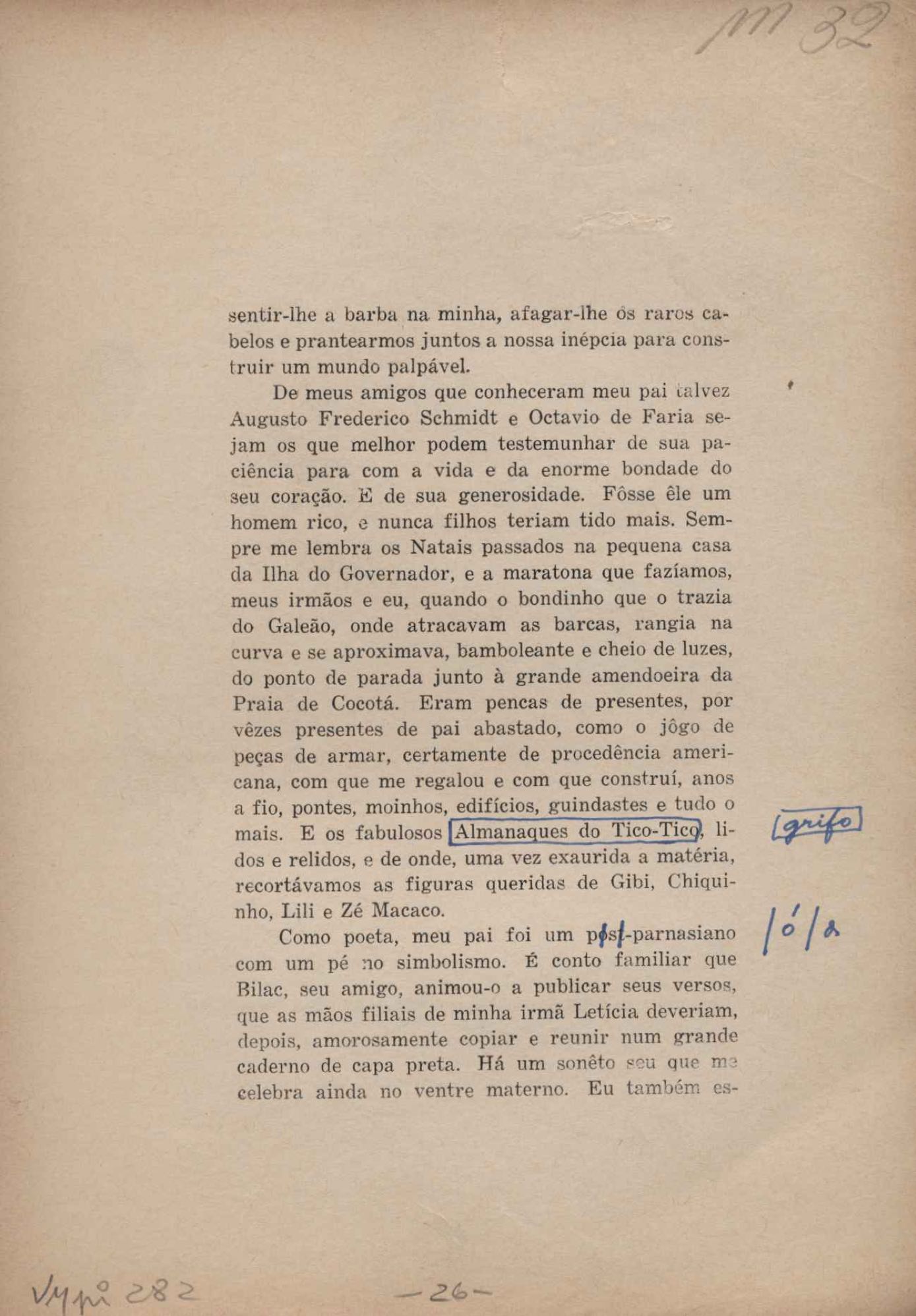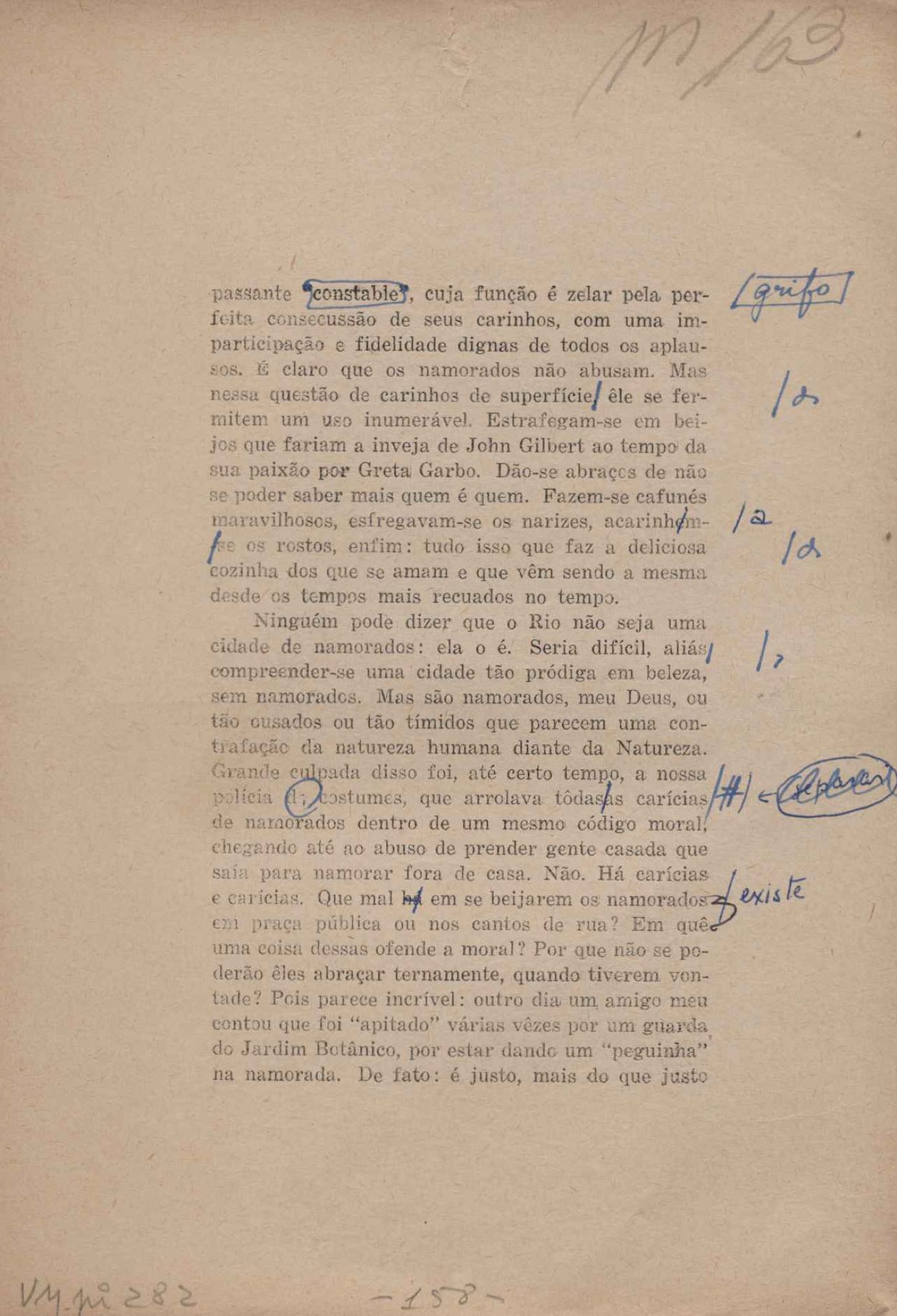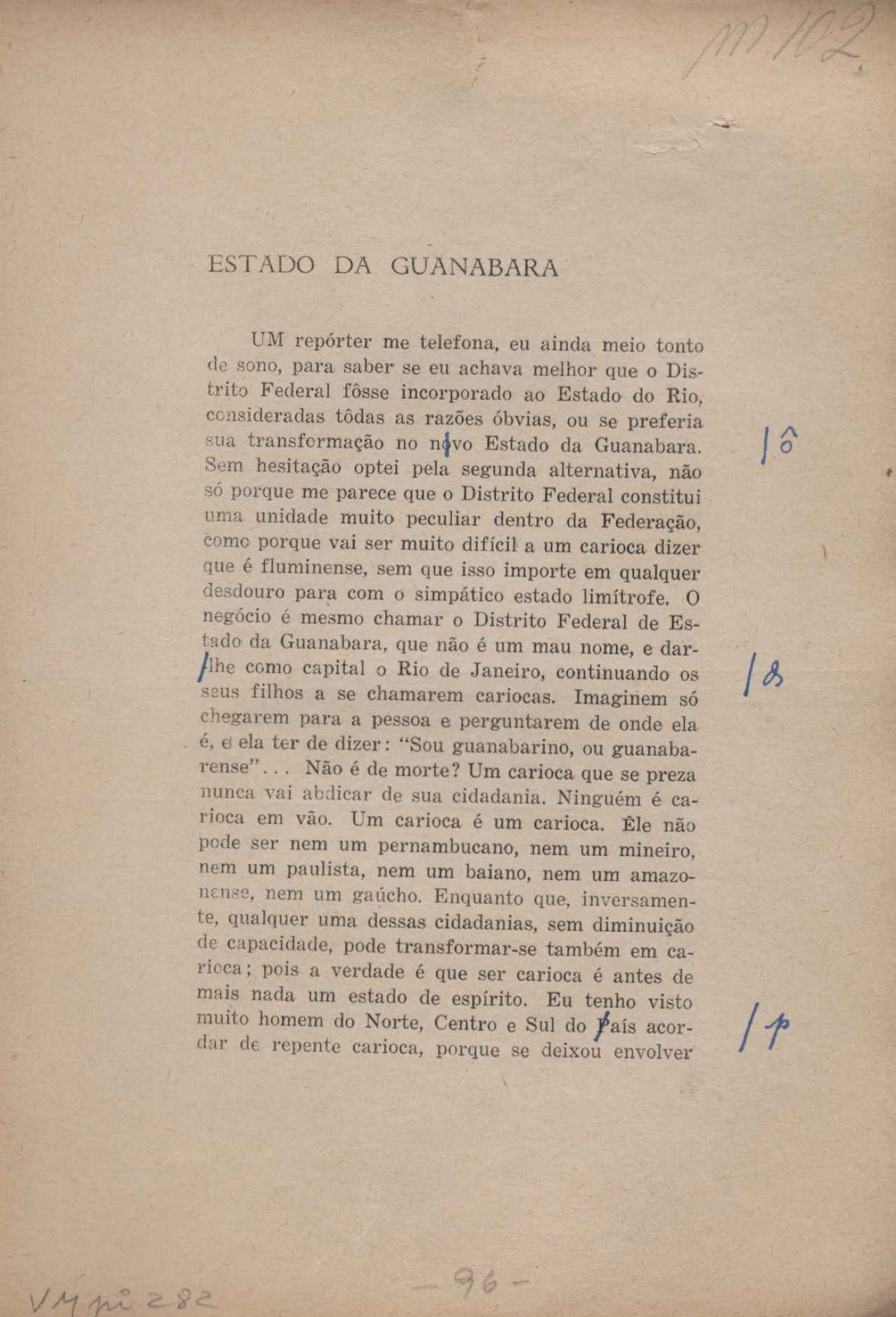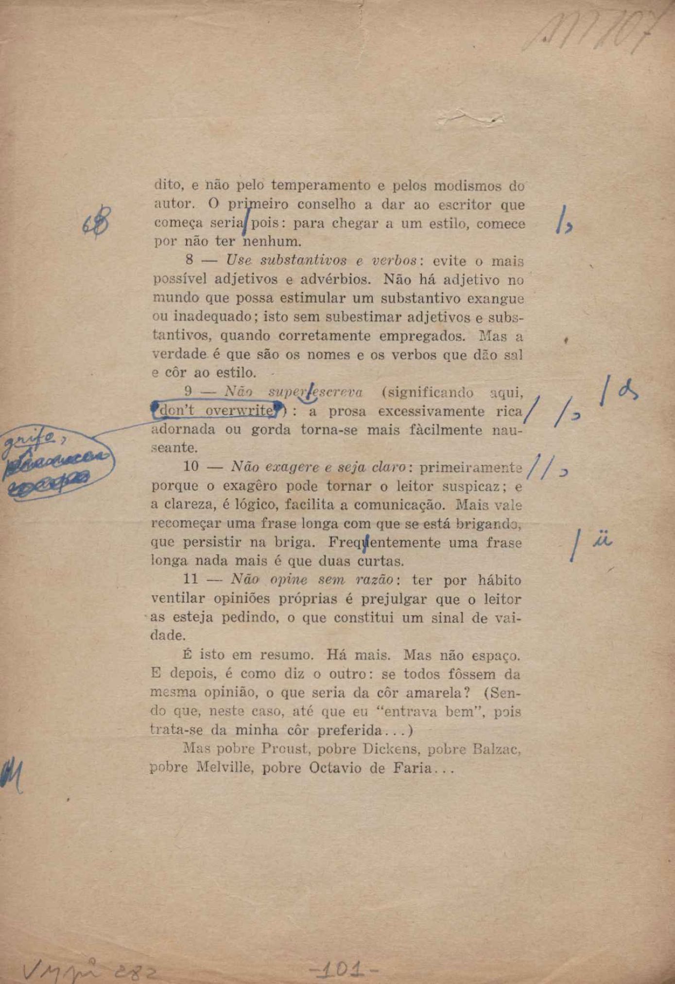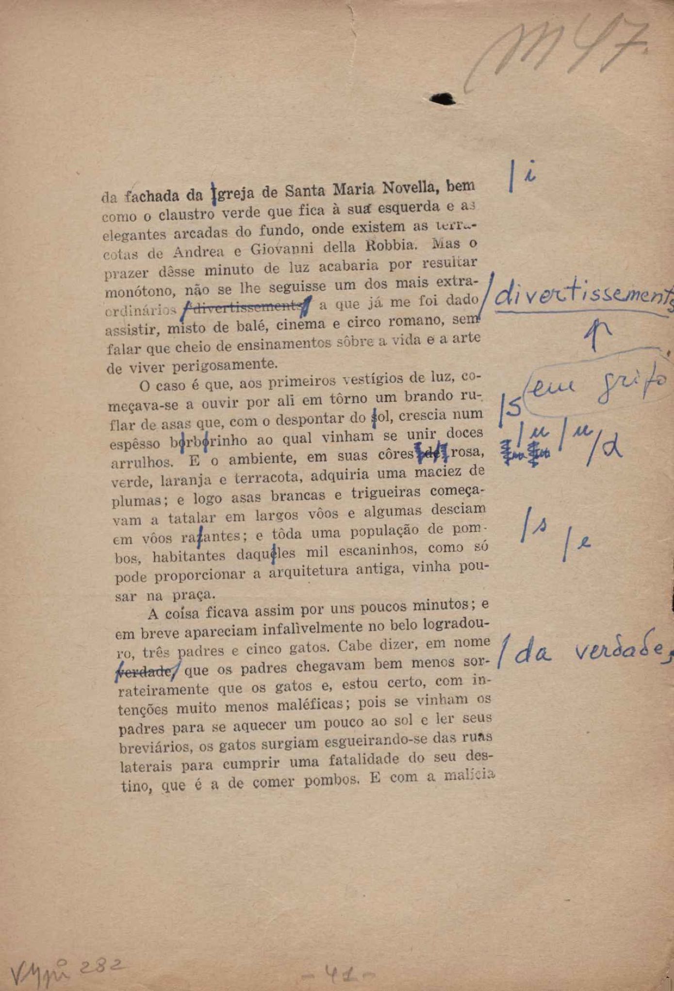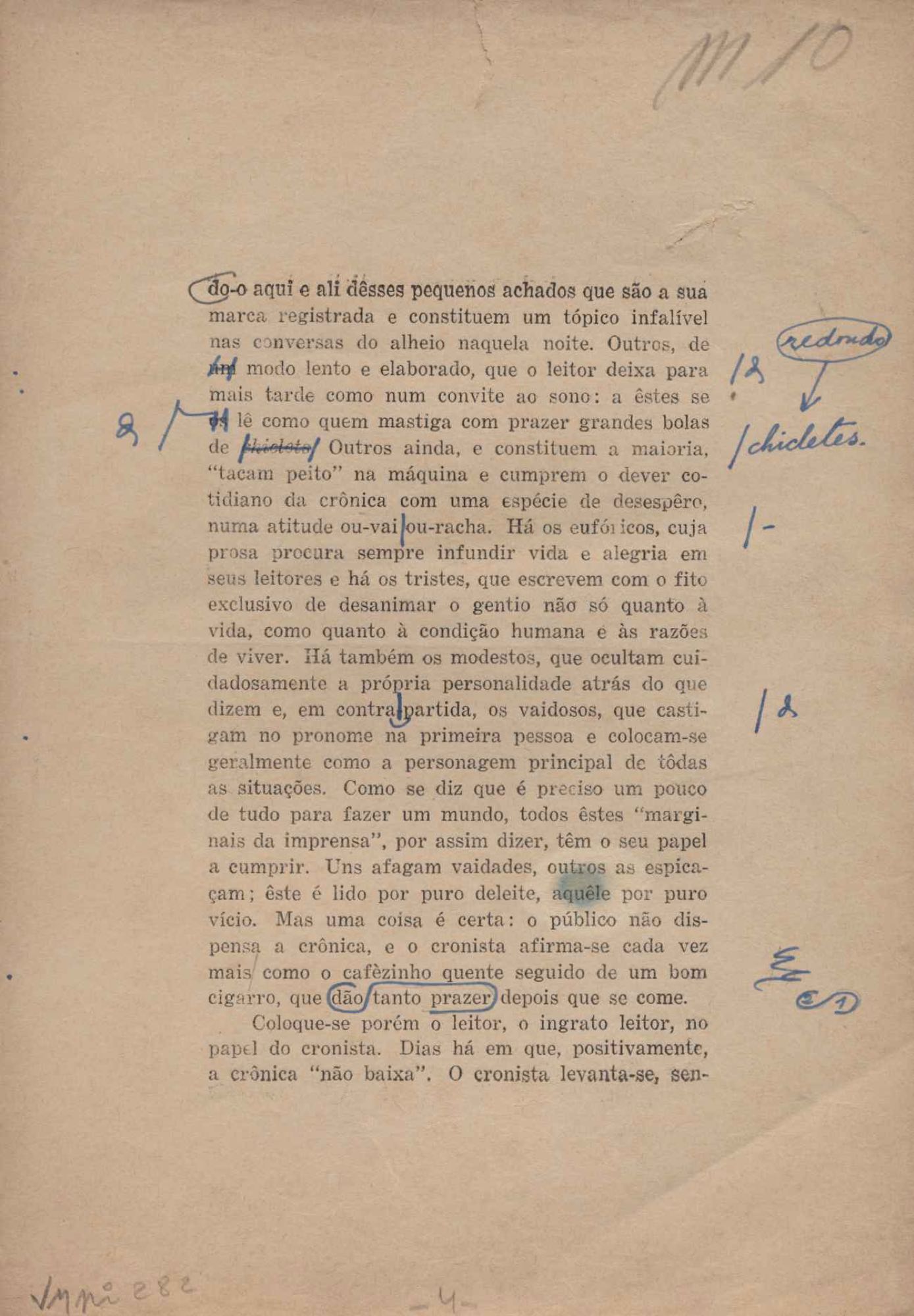 Prova tipográfica da [primeira edição?]. Prosa (1). Anexo: 1. Prova tipográfica incompleta; 2. Outras versões manuscritas e datilografadas, com emendas de: "O amor dos homens", "Antiode à tristeza", "Um beijo", "Blues para Emmett Louis Till", "Canção para a amiga dormindo", "Carta aos puros", "Carta do ausente", "... Deinde Philosophari [publ. "O mosquito"], "Dialética", "Dois poeminhas com Sputnik", "Duas canções de silêncio", "Of gold and God [publ. "Of God and gold"], "Look here, Mr. Buster..." [publ. "Olhe aqui, Mr. Buster..."], "O mais-que-perfeito", "O Margarida's", "As mulheres ocas", "Namorados no mirante", "Natal", "O ônibus Grayhound atravessa o Novo México", "Para viver um grande amor", "Pedro, meu filho", "Poema para Gilberto Amado", "O poeta aprendiz", "O poeta e a rosa", "O poeta", "Quinta rima" [publ. "Lapa de Bandeira"], "Teu nome" e "A última viagem de Jayme Ovalle".