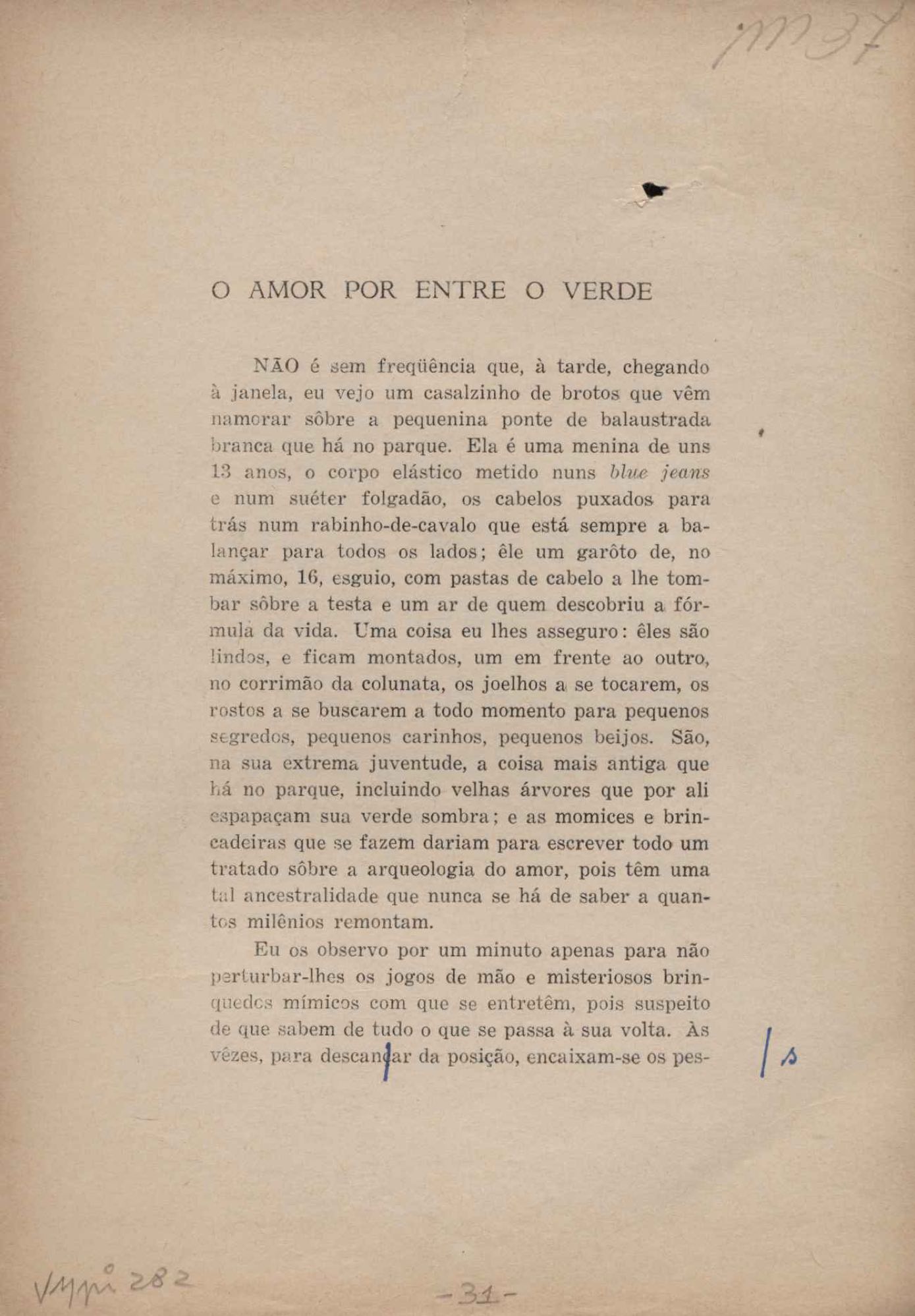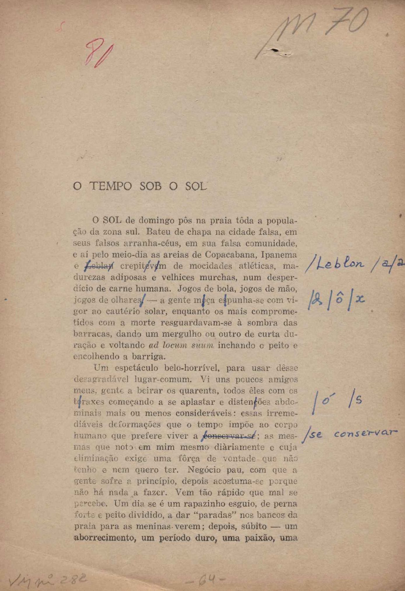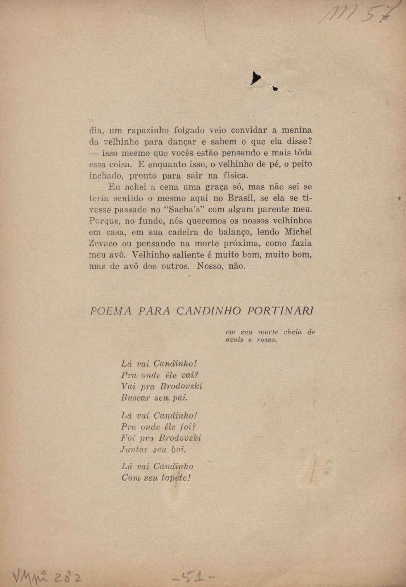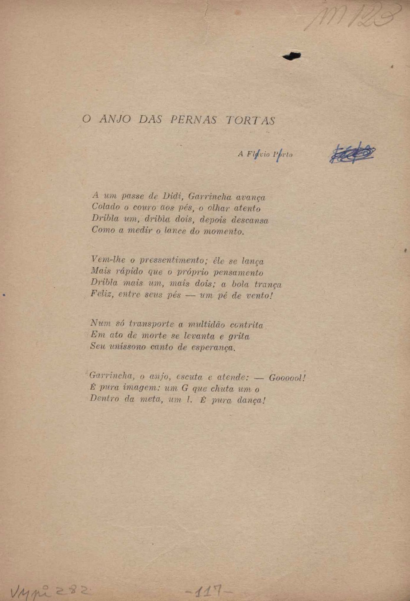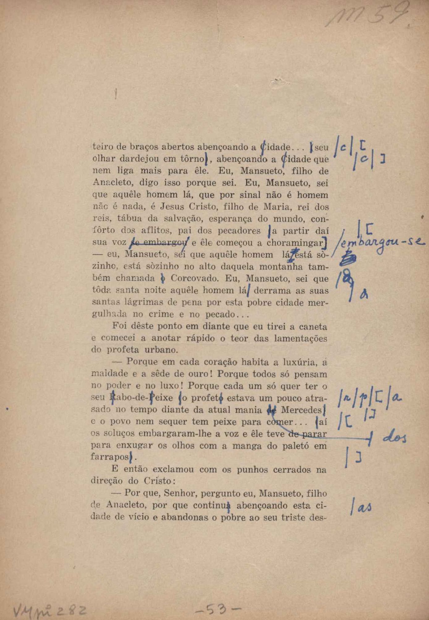 Prova tipográfica da [primeira edição?]. Prosa (1). Anexo: 1. Prova tipográfica incompleta; 2. Outras versões manuscritas e datilografadas, com emendas de: "O amor dos homens", "Antiode à tristeza", "Um beijo", "Blues para Emmett Louis Till", "Canção para a amiga dormindo", "Carta aos puros", "Carta do ausente", "... Deinde Philosophari [publ. "O mosquito"], "Dialética", "Dois poeminhas com Sputnik", "Duas canções de silêncio", "Of gold and God [publ. "Of God and gold"], "Look here, Mr. Buster..." [publ. "Olhe aqui, Mr. Buster..."], "O mais-que-perfeito", "O Margarida's", "As mulheres ocas", "Namorados no mirante", "Natal", "O ônibus Grayhound atravessa o Novo México", "Para viver um grande amor", "Pedro, meu filho", "Poema para Gilberto Amado", "O poeta aprendiz", "O poeta e a rosa", "O poeta", "Quinta rima" [publ. "Lapa de Bandeira"], "Teu nome" e "A última viagem de Jayme Ovalle".