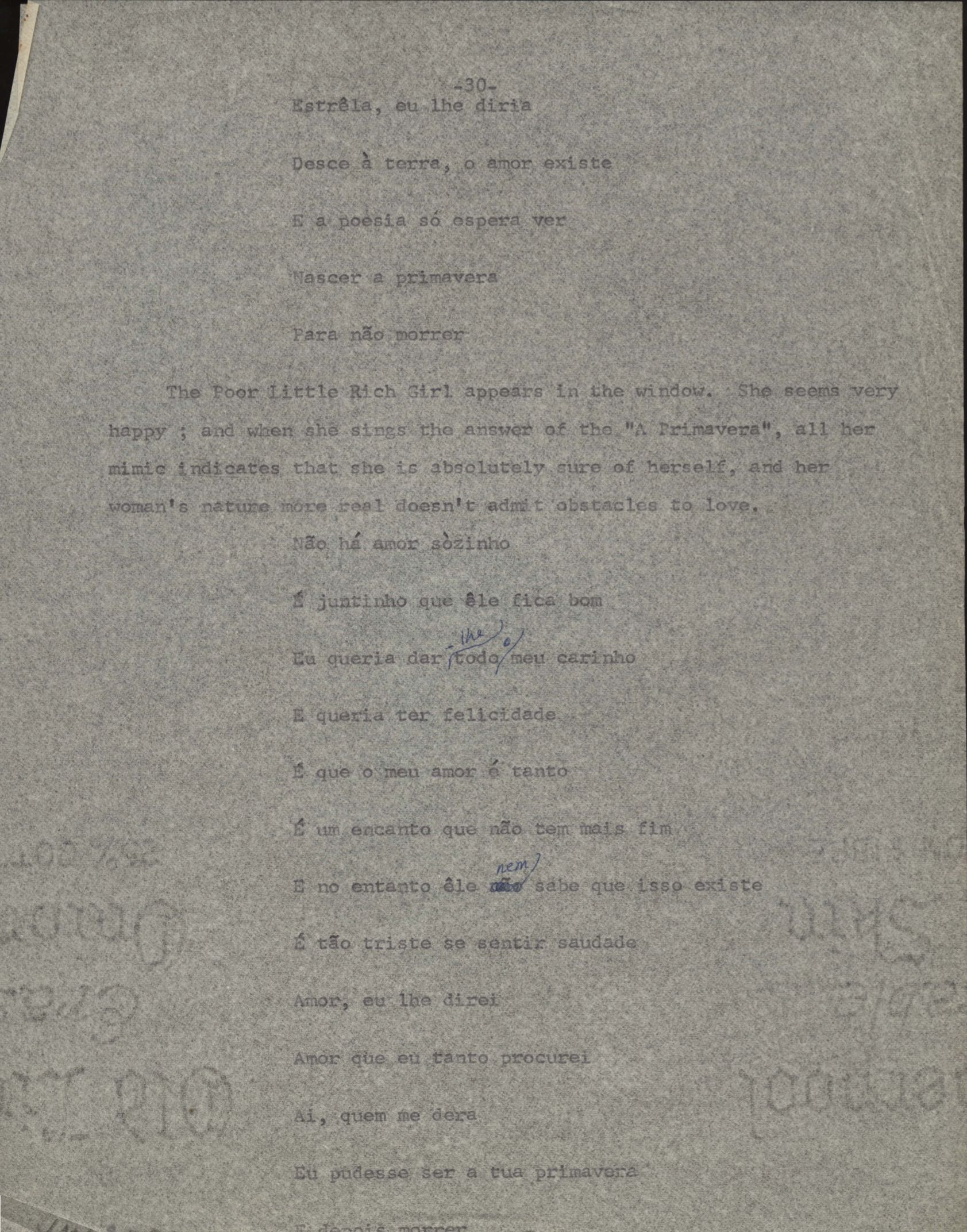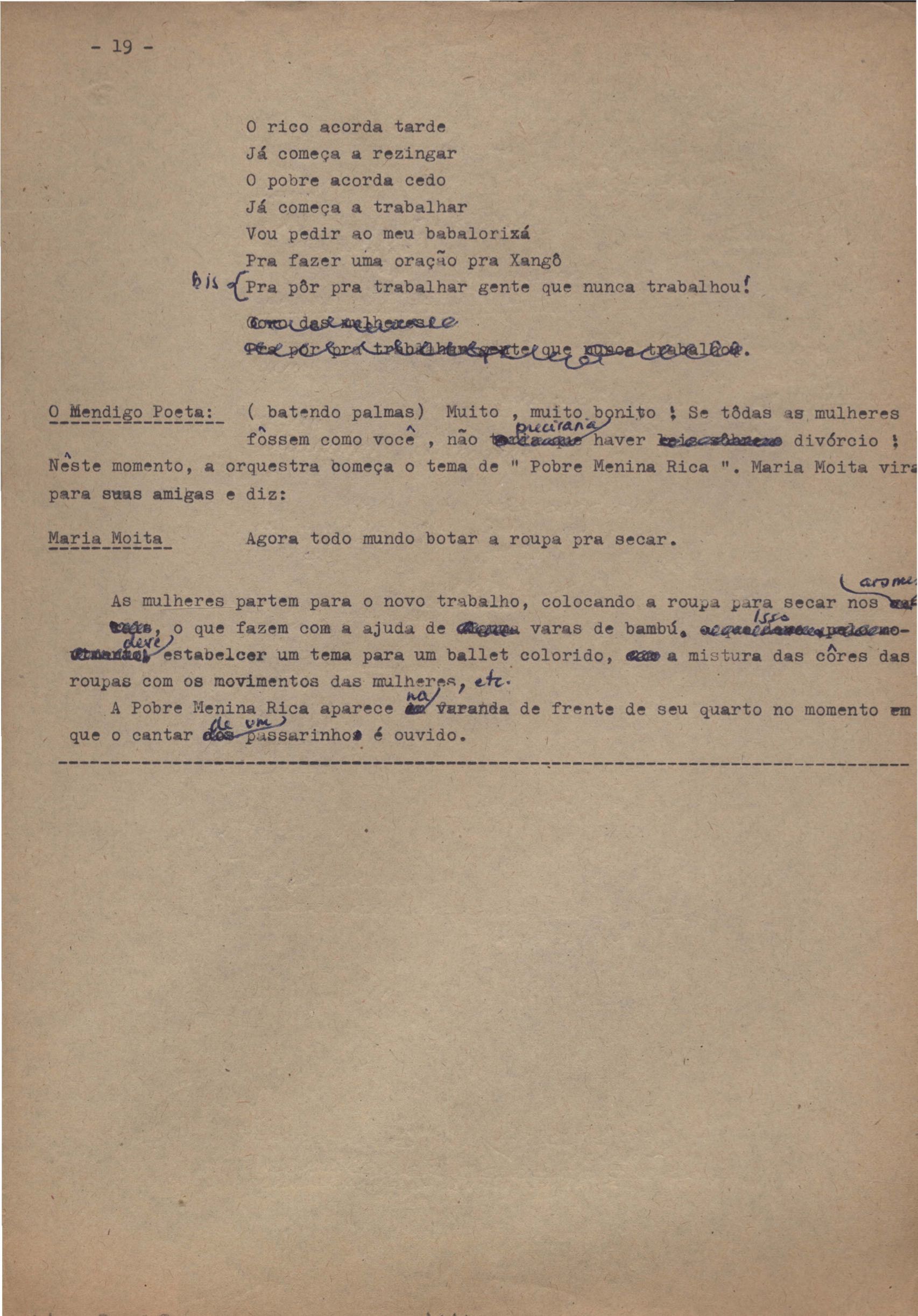 Roteiro para show (1). Anexo: 1. Outras versões; 2. Tradução para o inglês; 3. Texto explicativo de VM (2 versões); 4. Diversos.