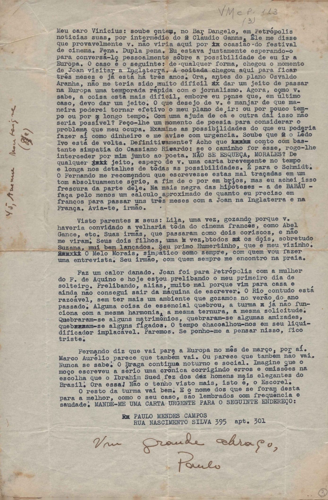 SÉRIE: CORRESPONDÊNCIA PESSOAL