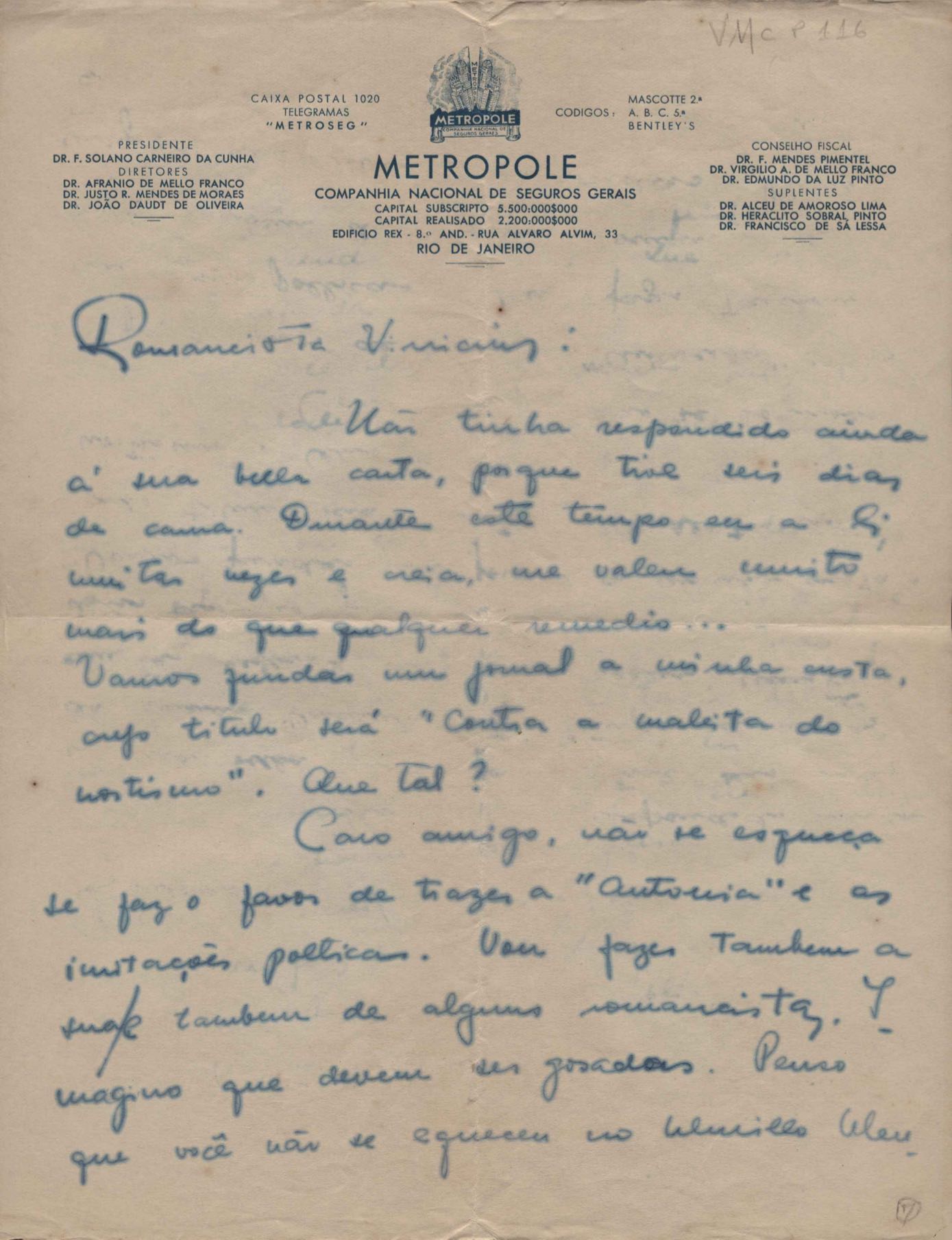 SÉRIE: CORRESPONDÊNCIA PESSOAL