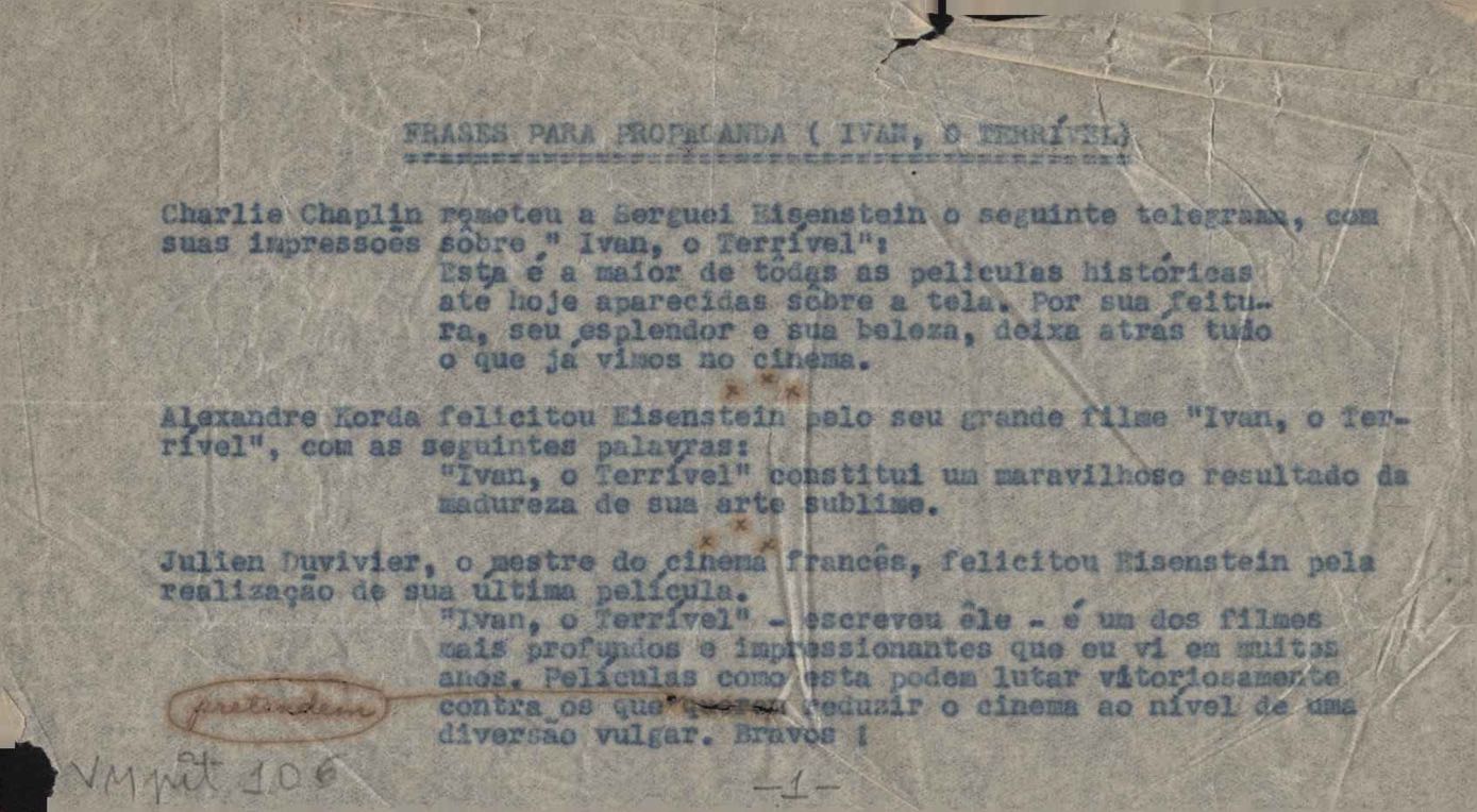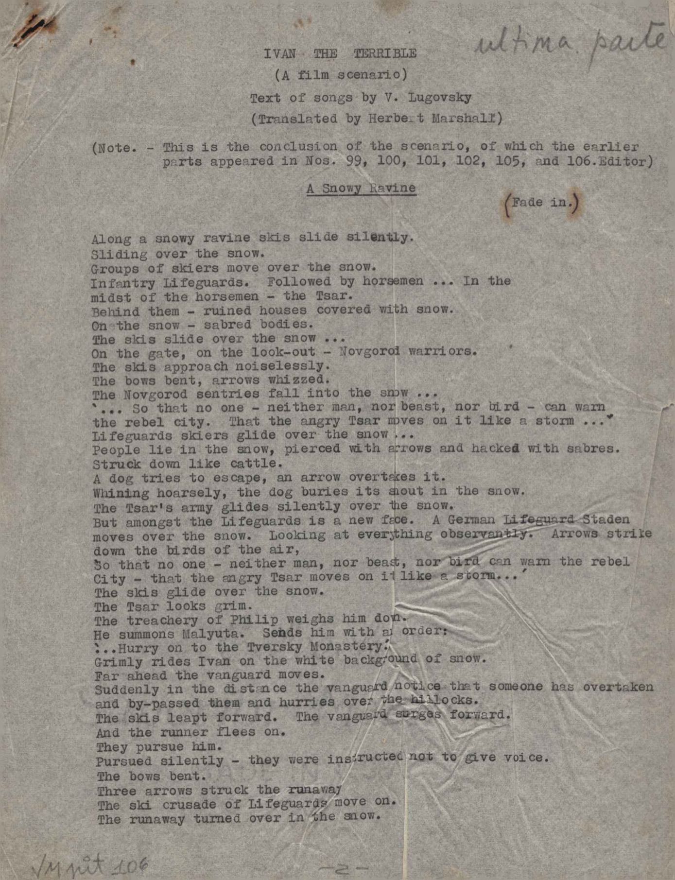 Tradução (1) da trilha sonora de V. Lugovsky. Anexo: Versão para o português de [?].