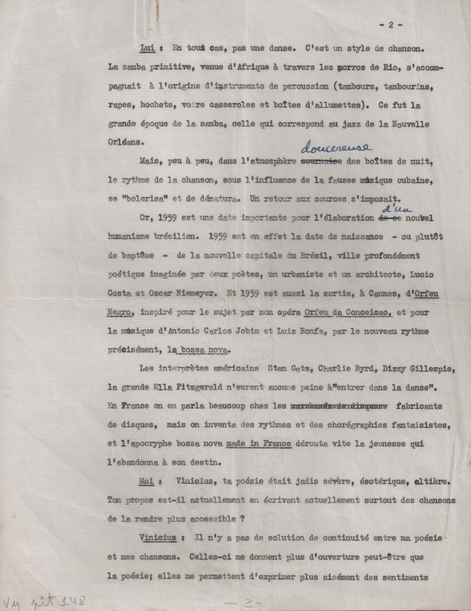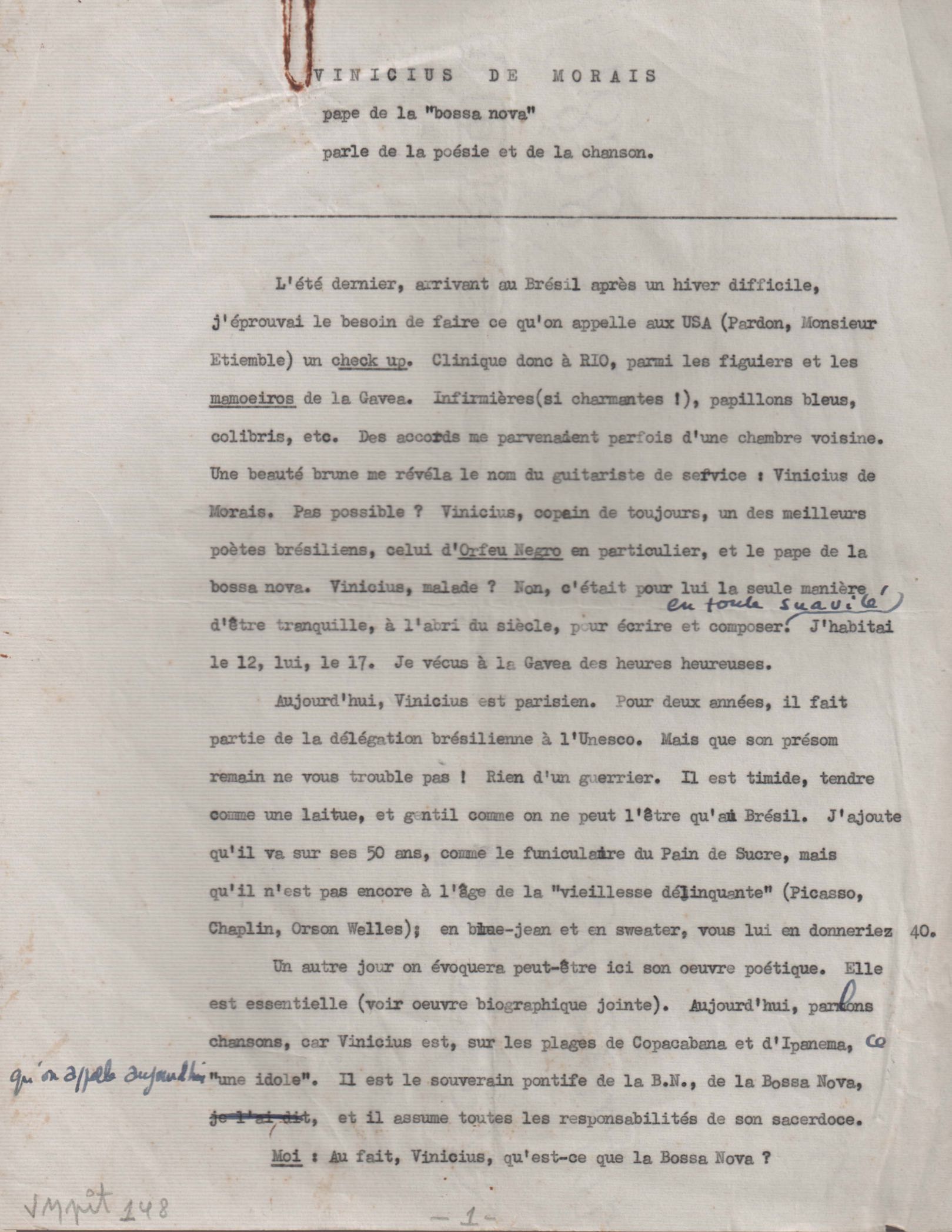 "Vinicius de Moraes - pape de la bossa nova - parle de la poésie et de la chanson"
