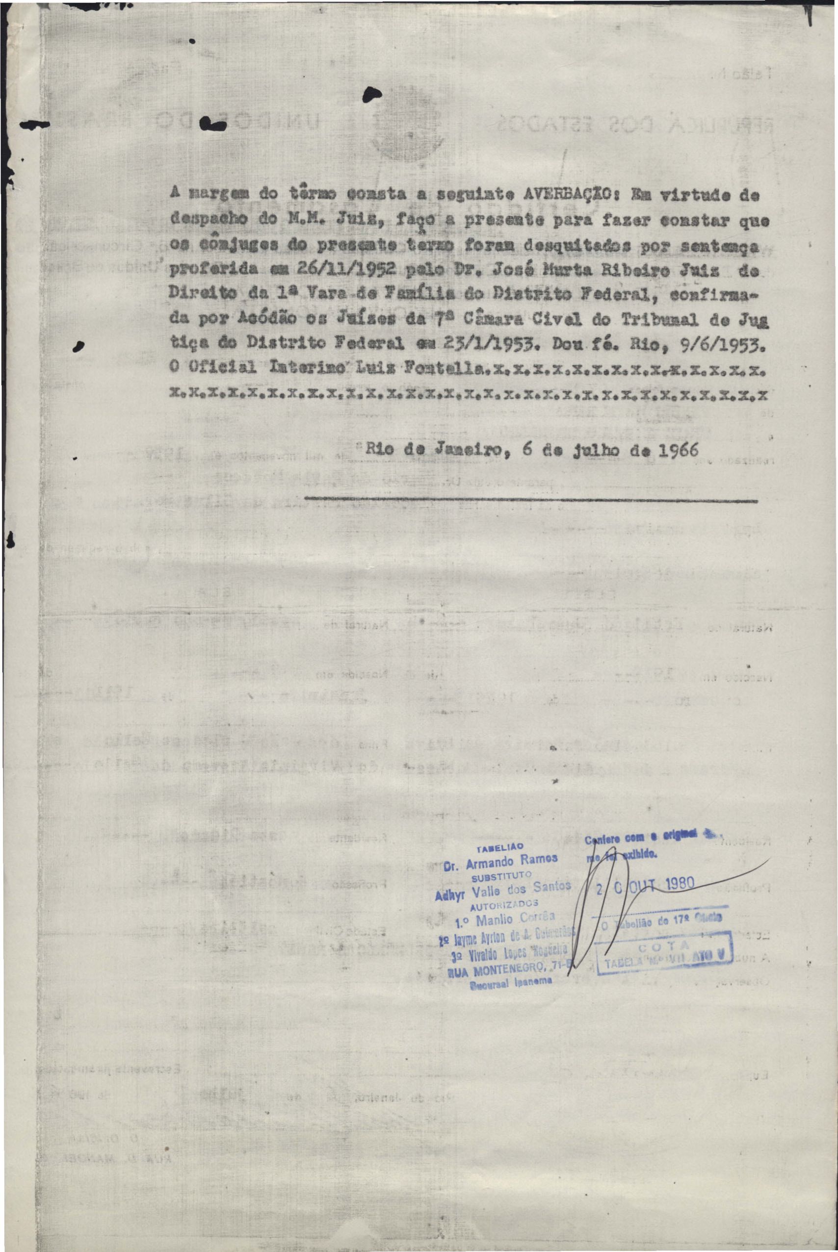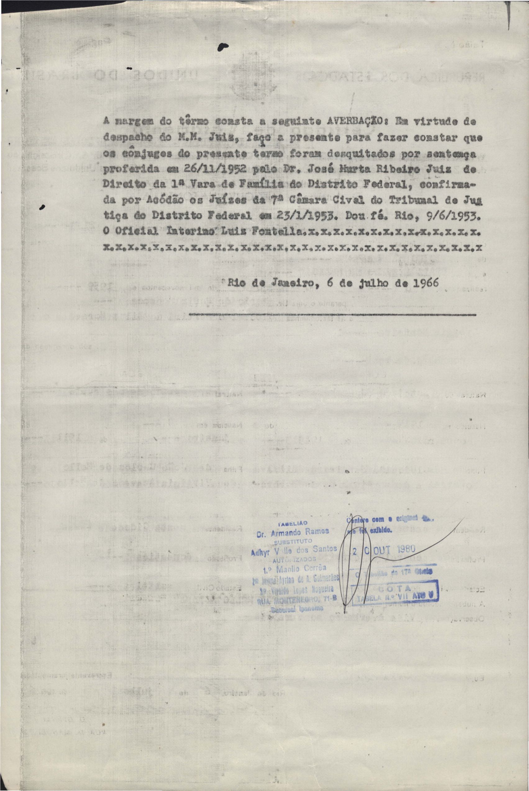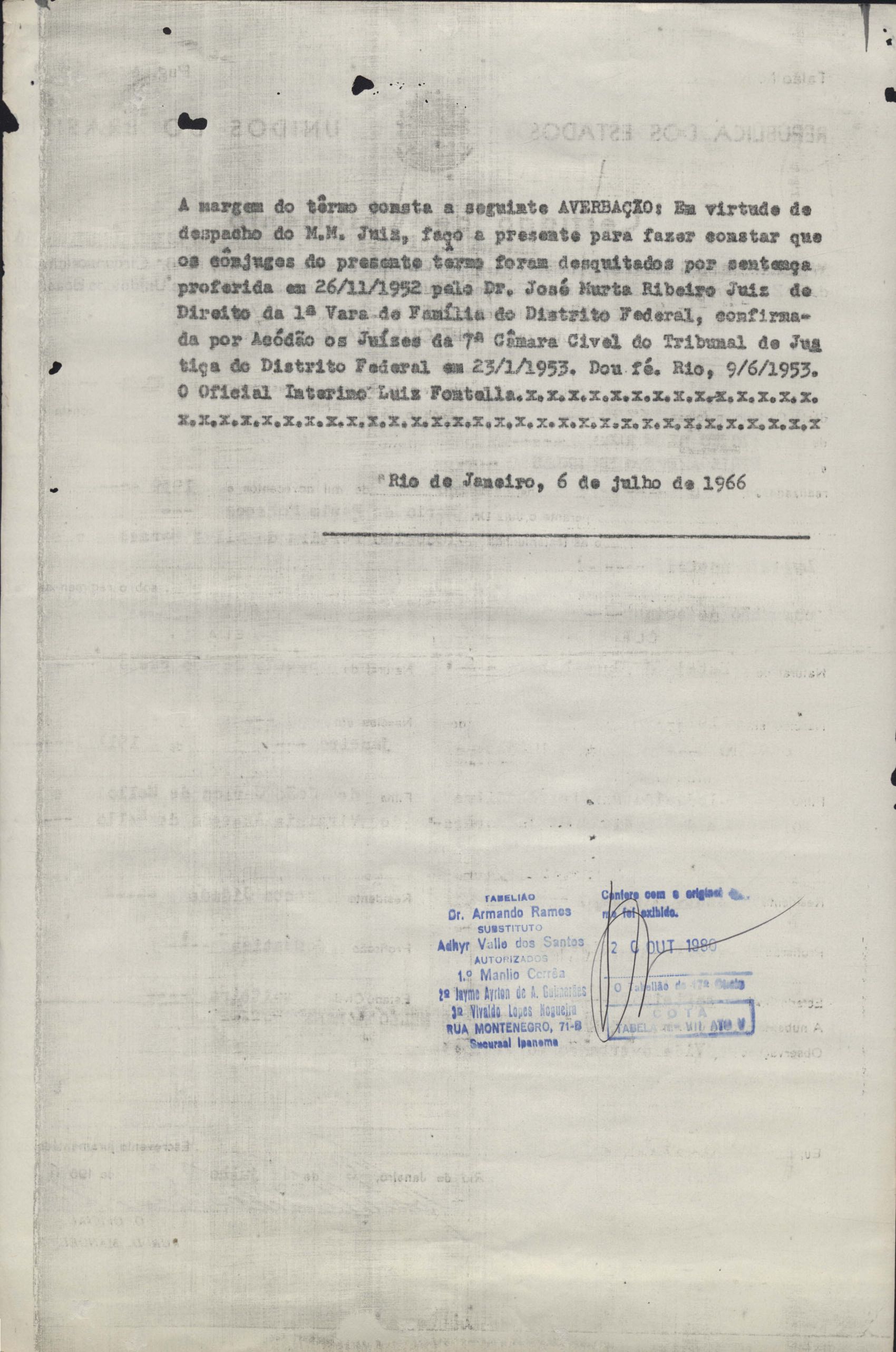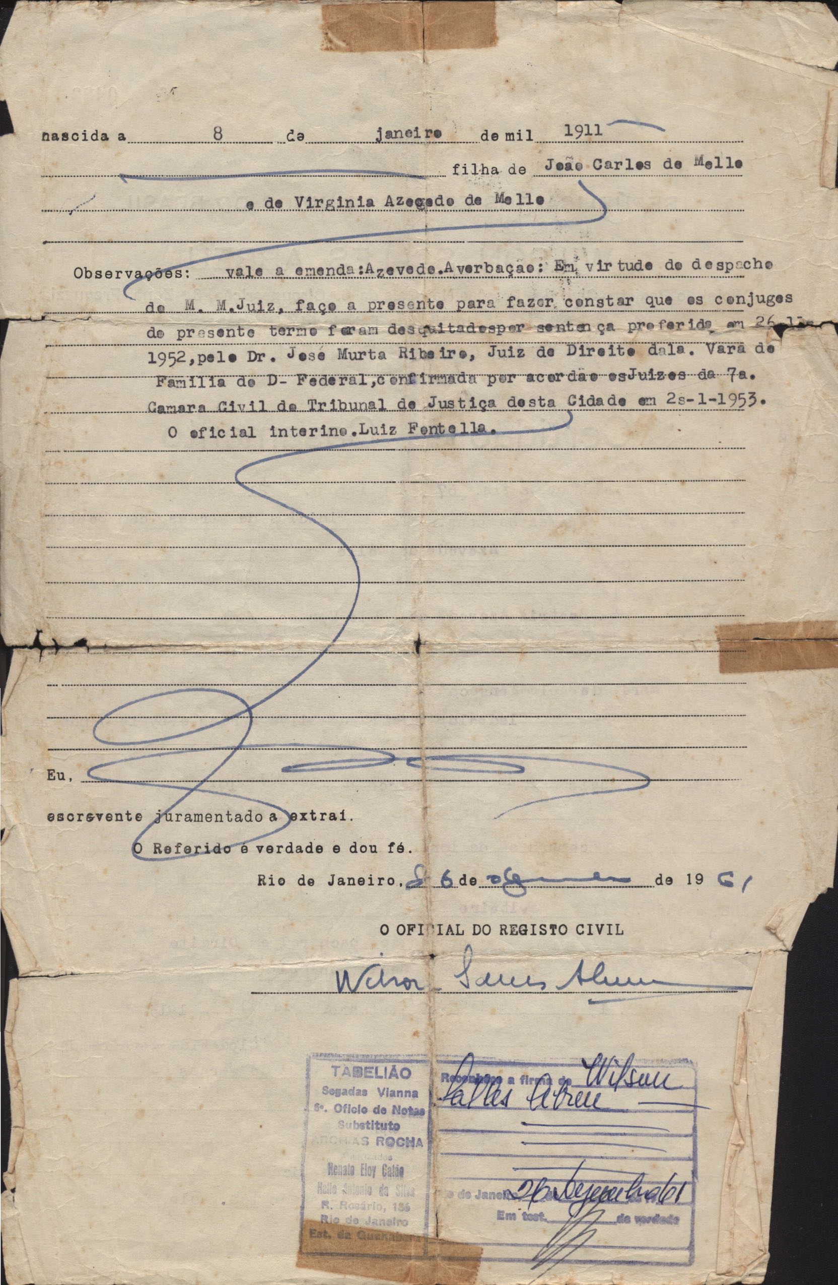 Certidão de casamento de VM com Beatriz Azevedo de Mello Moraes [Tati de Moraes]