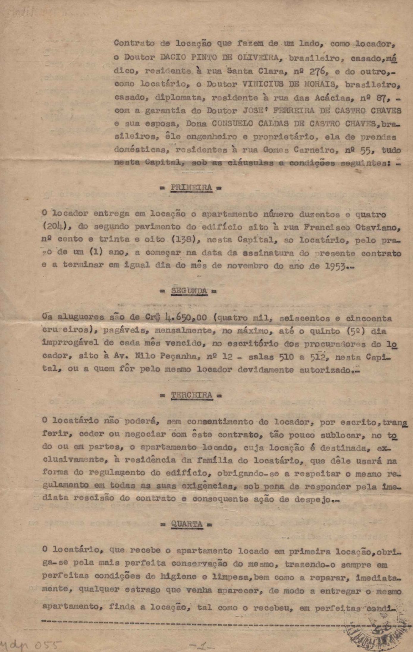 Contrato de locação de imóvel residencial entre VM e Dácio Pinto de Oliveira
