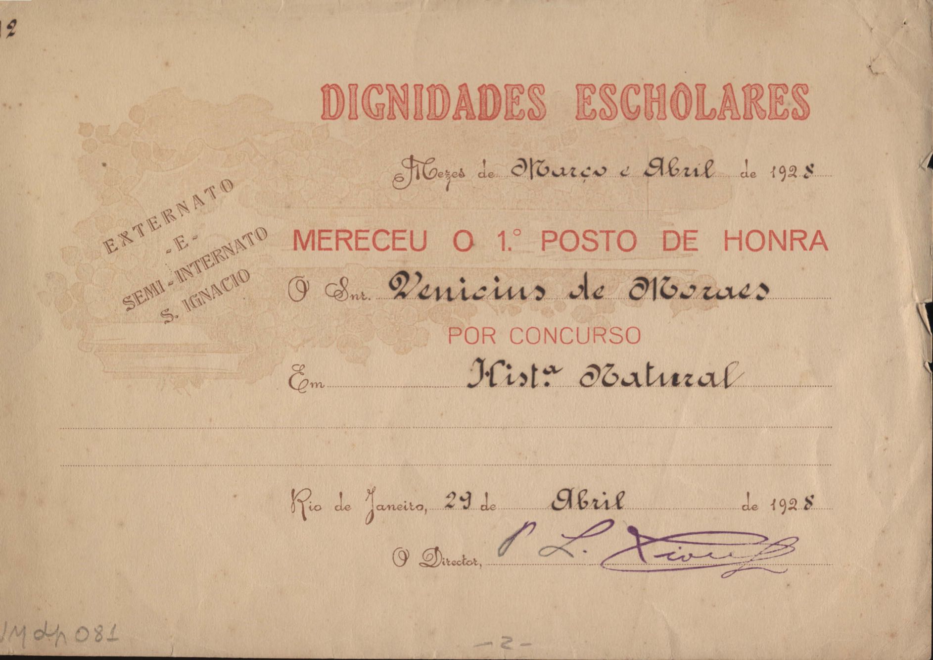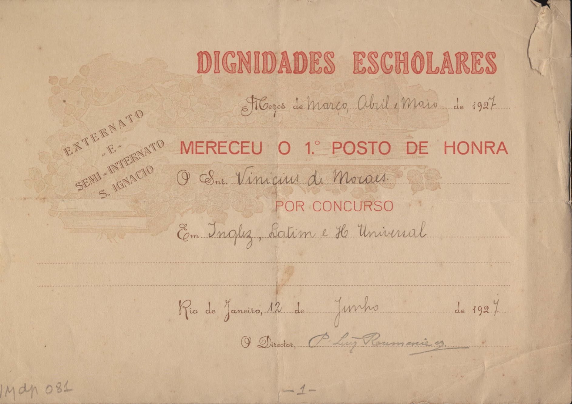 Diplomas escolares (2) do Colégio Santo Inácio