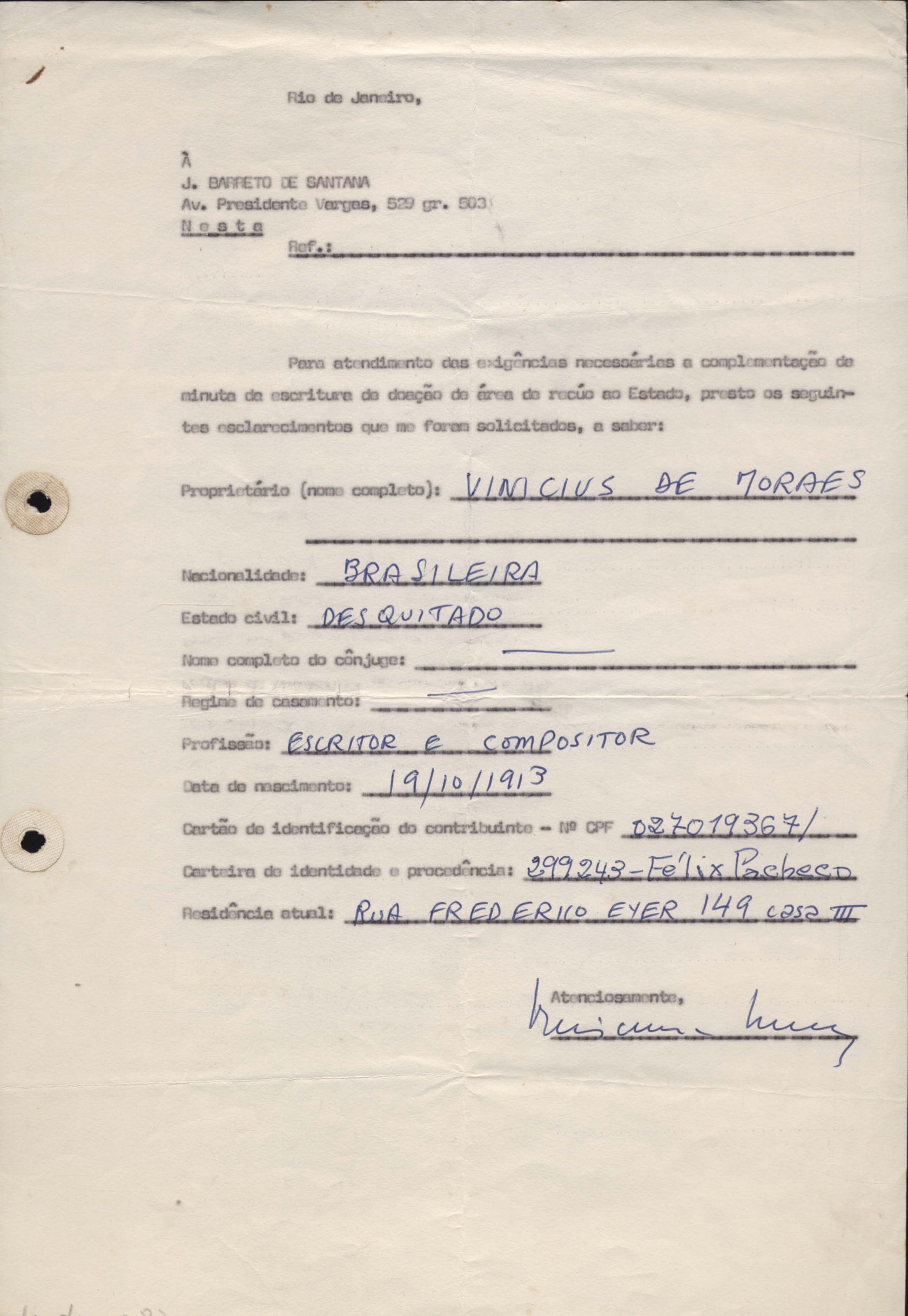Esclarecimento de dados pessoais de VM para J. Barreto de Santana