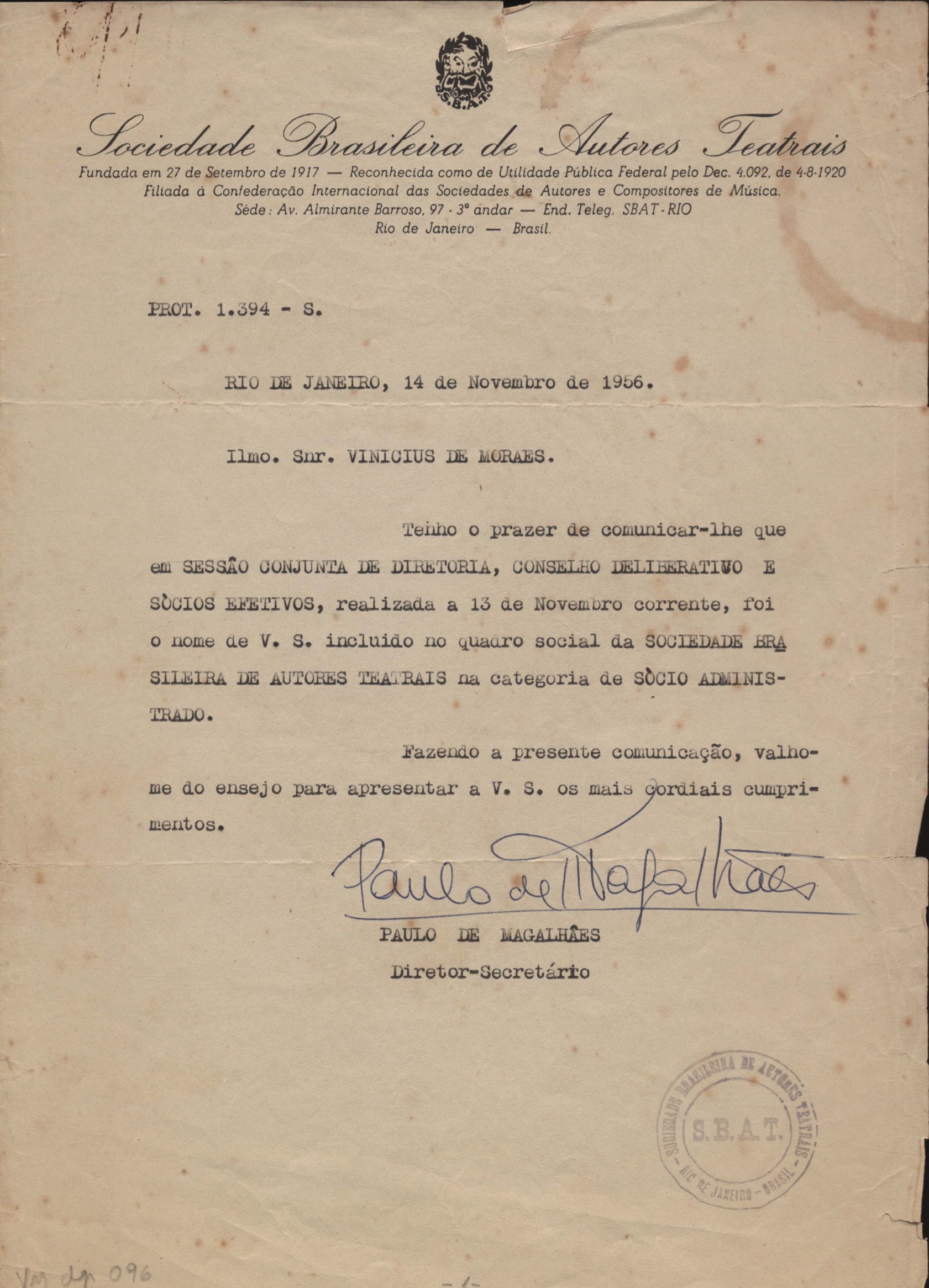 Título de sócio administrado da Sociedade Brasileira de Autores Teatrais