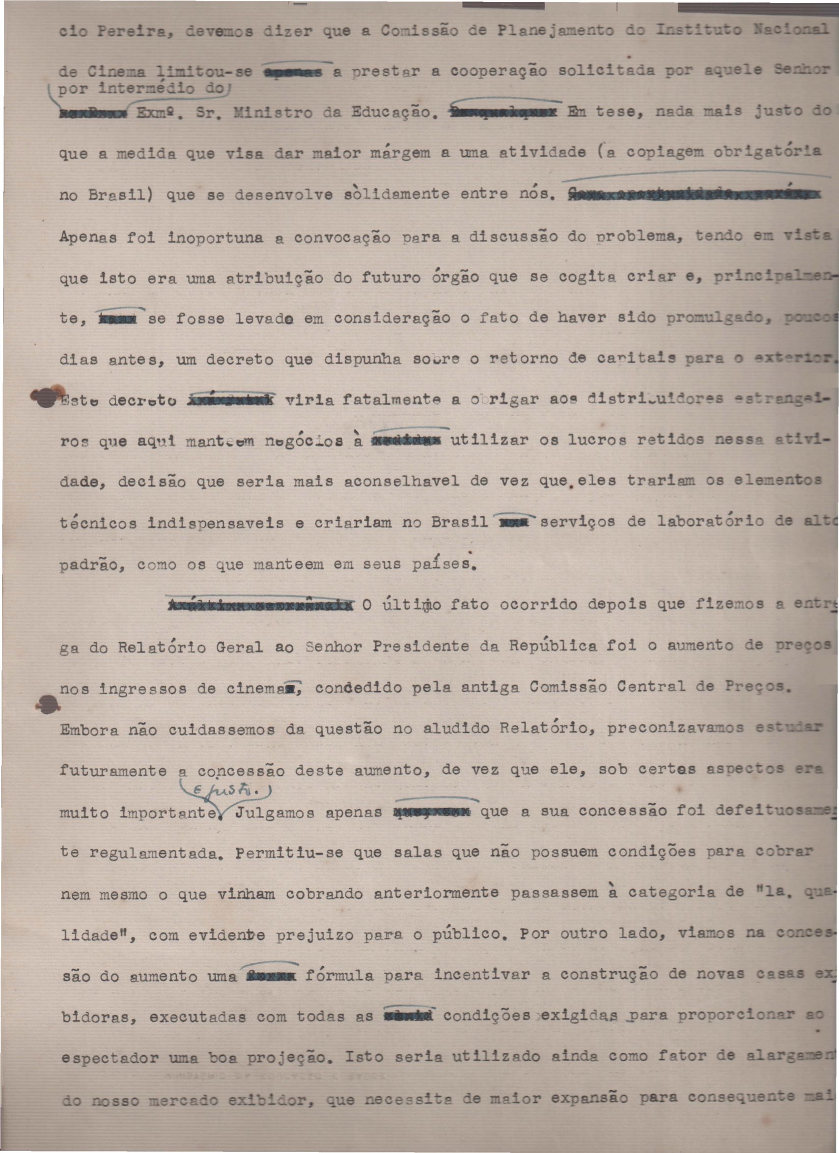 Adendo ao Relatório Geral sobre estrutura do cinema brasileiro