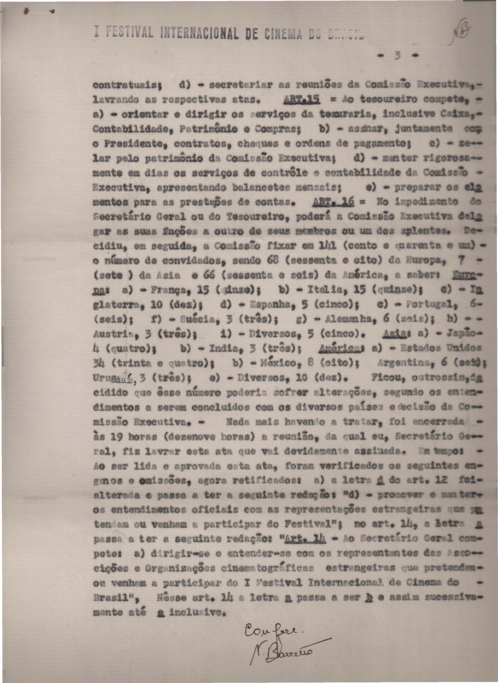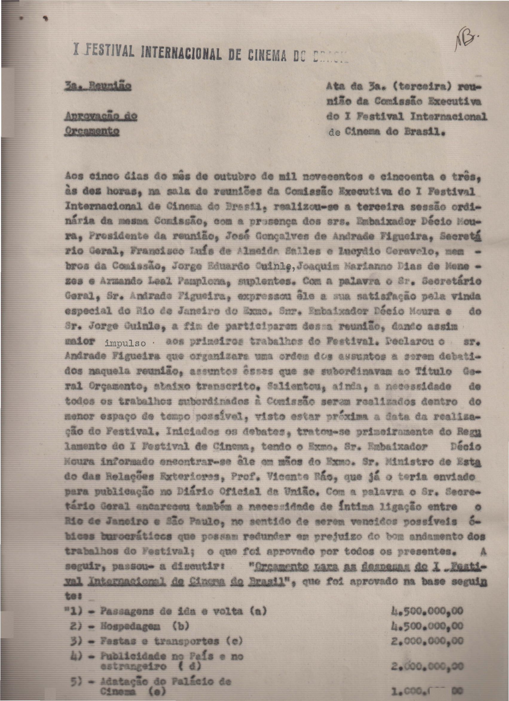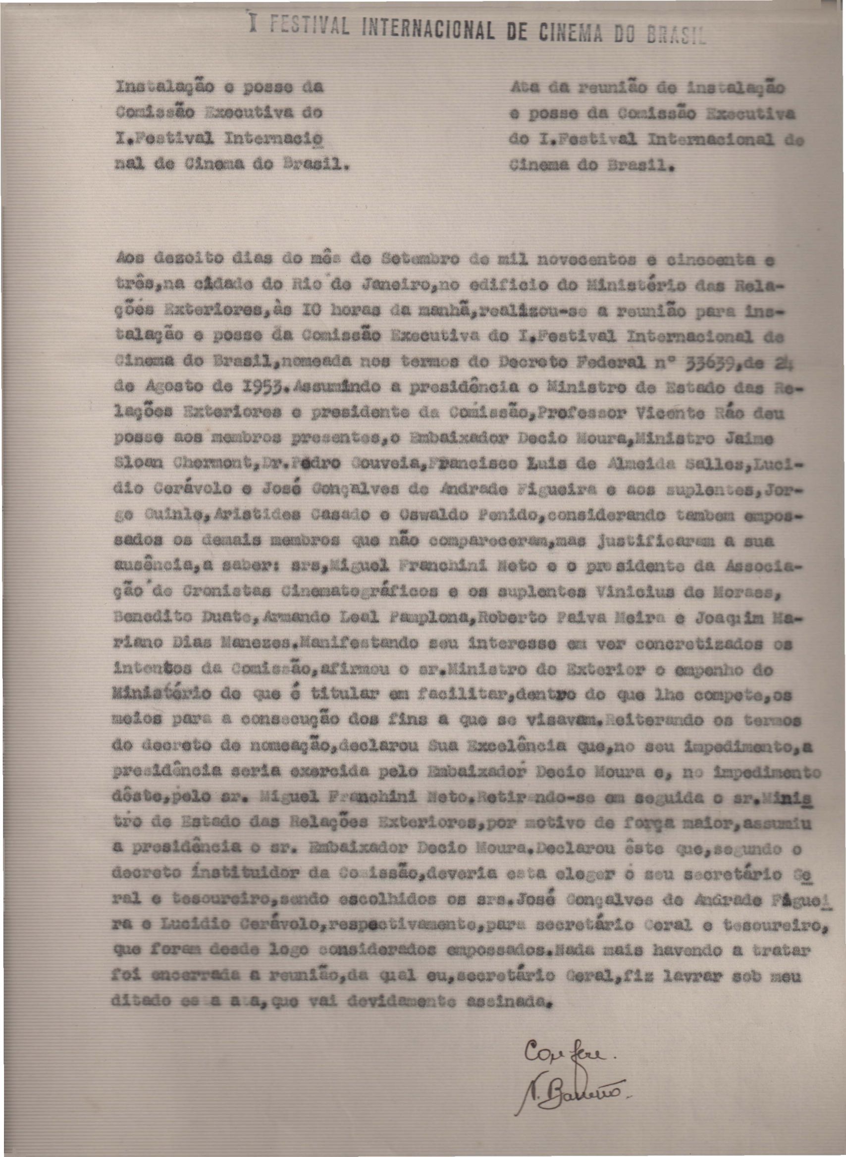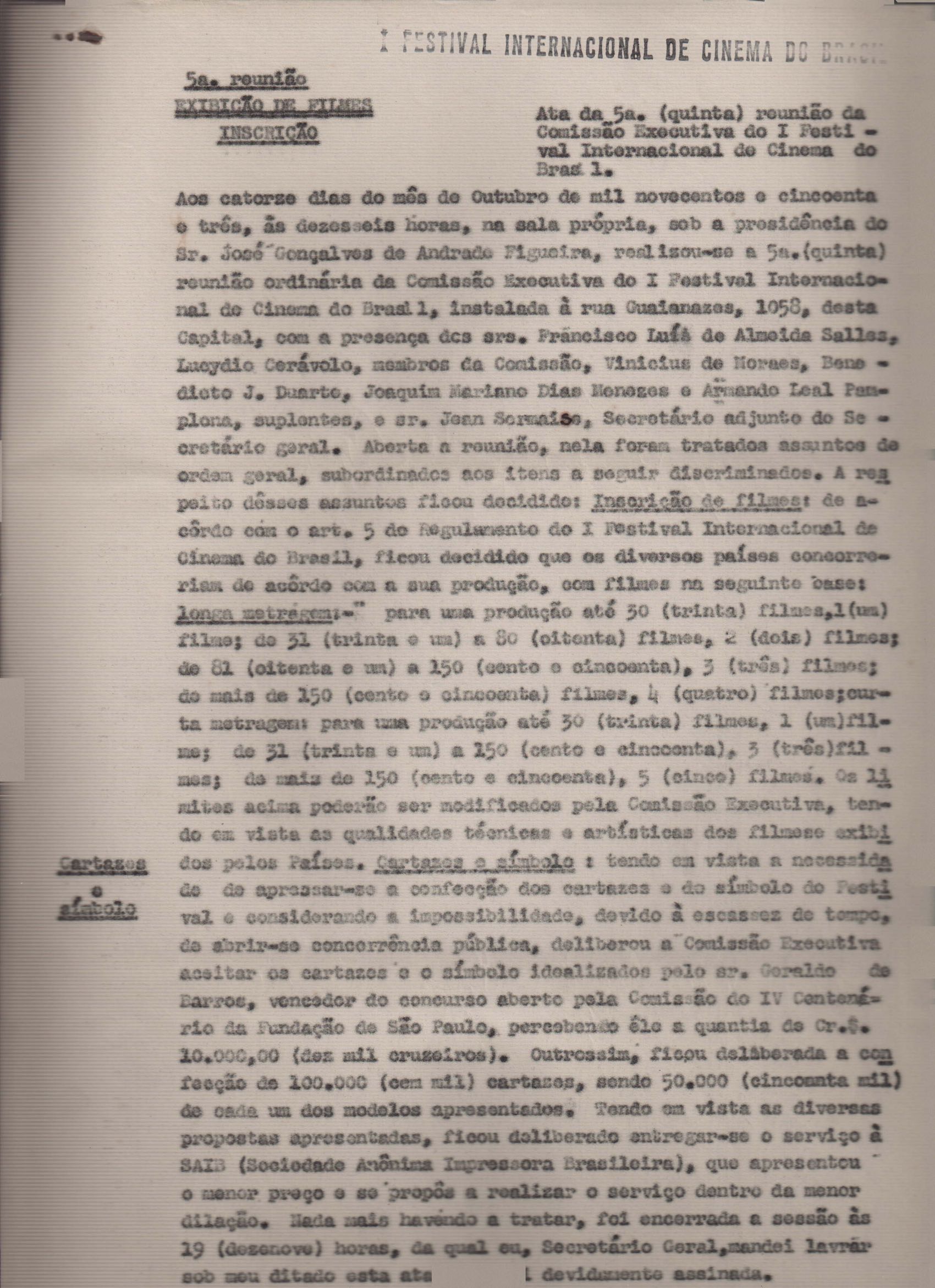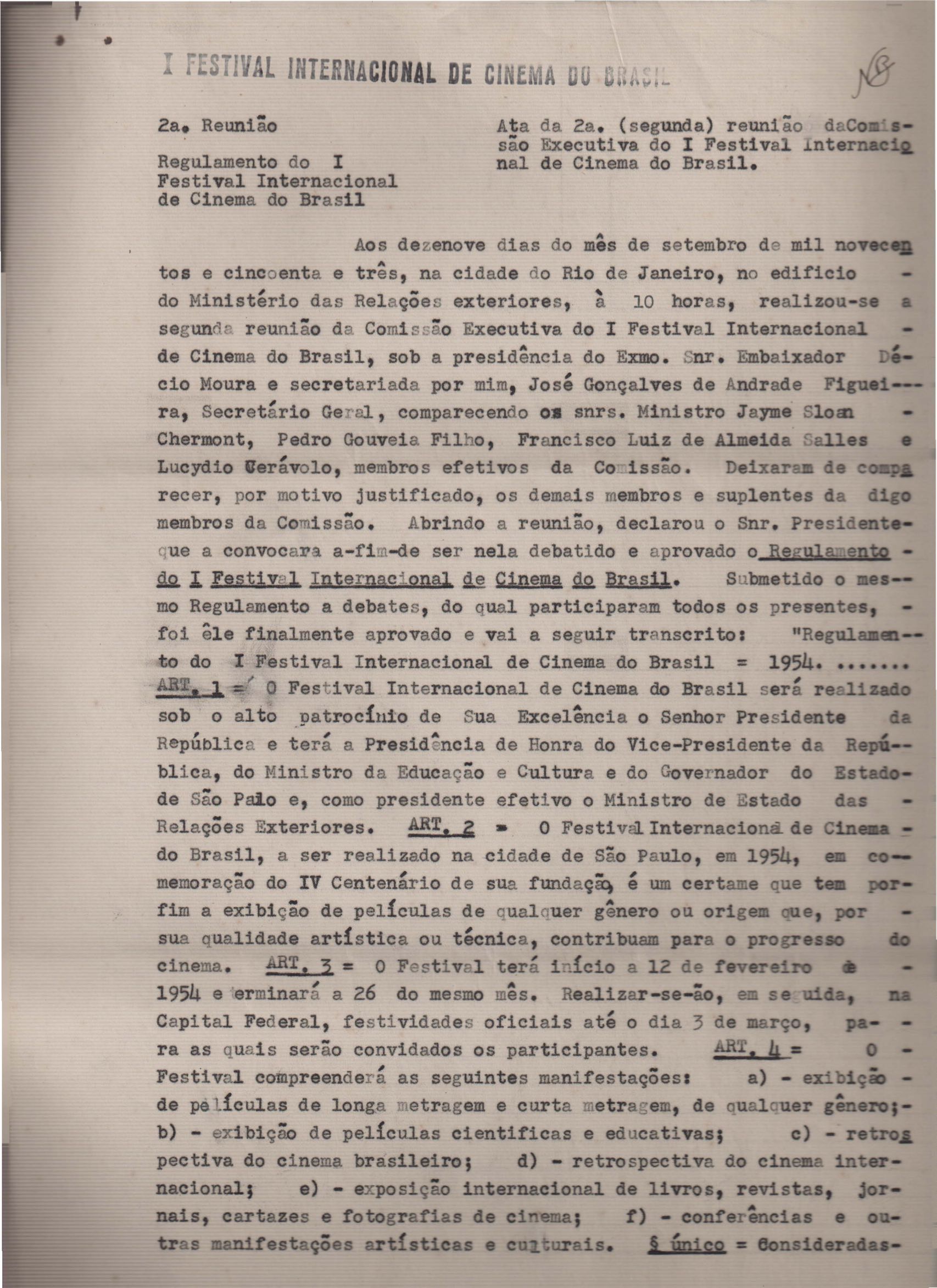 Atas (6) das reuniões do 1º Festival Internacional de Cinema do Brasil