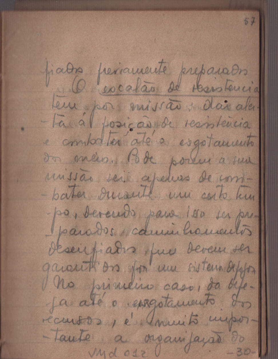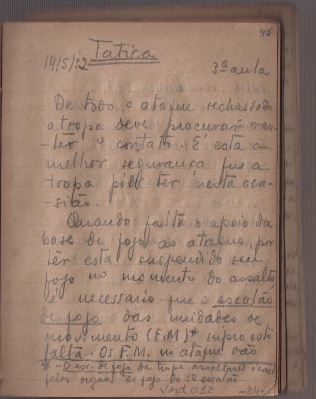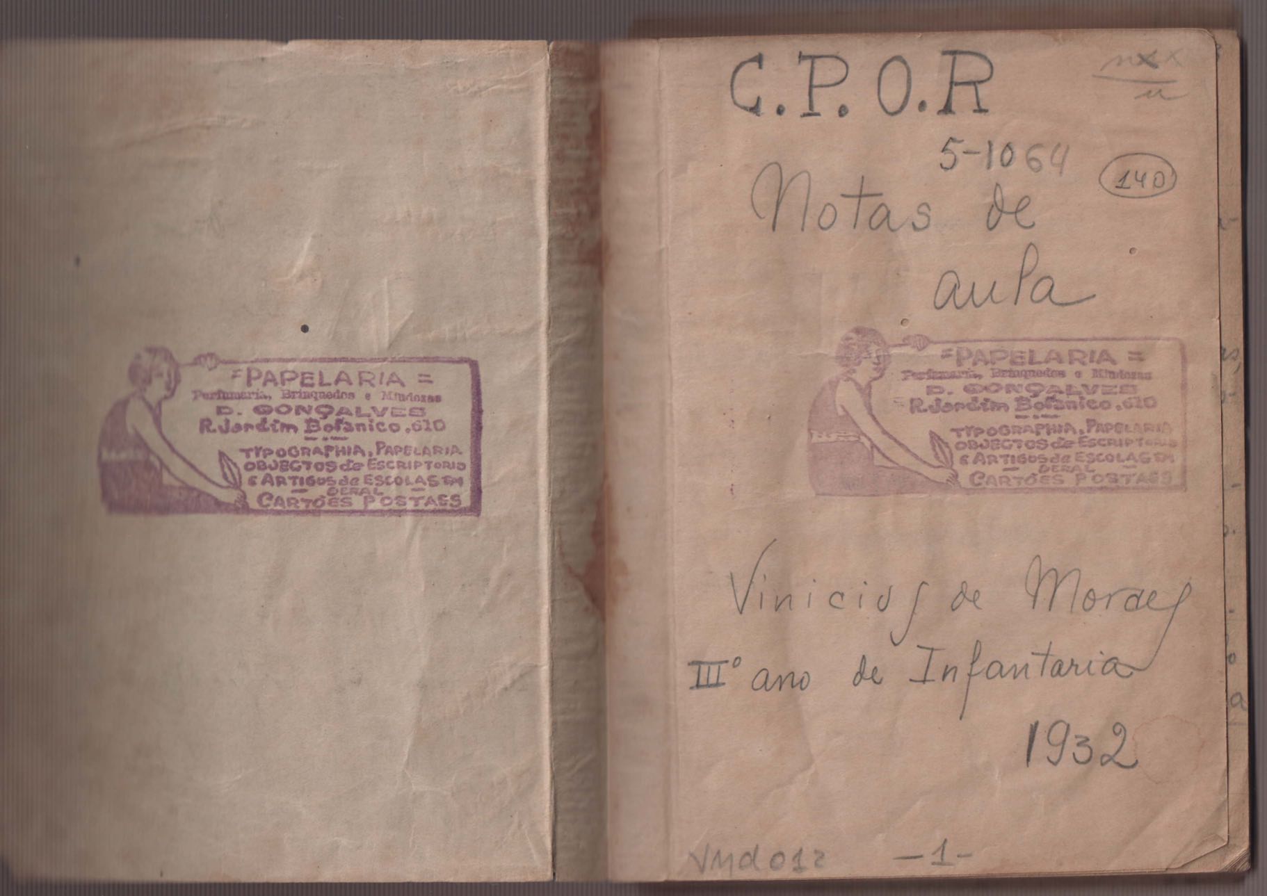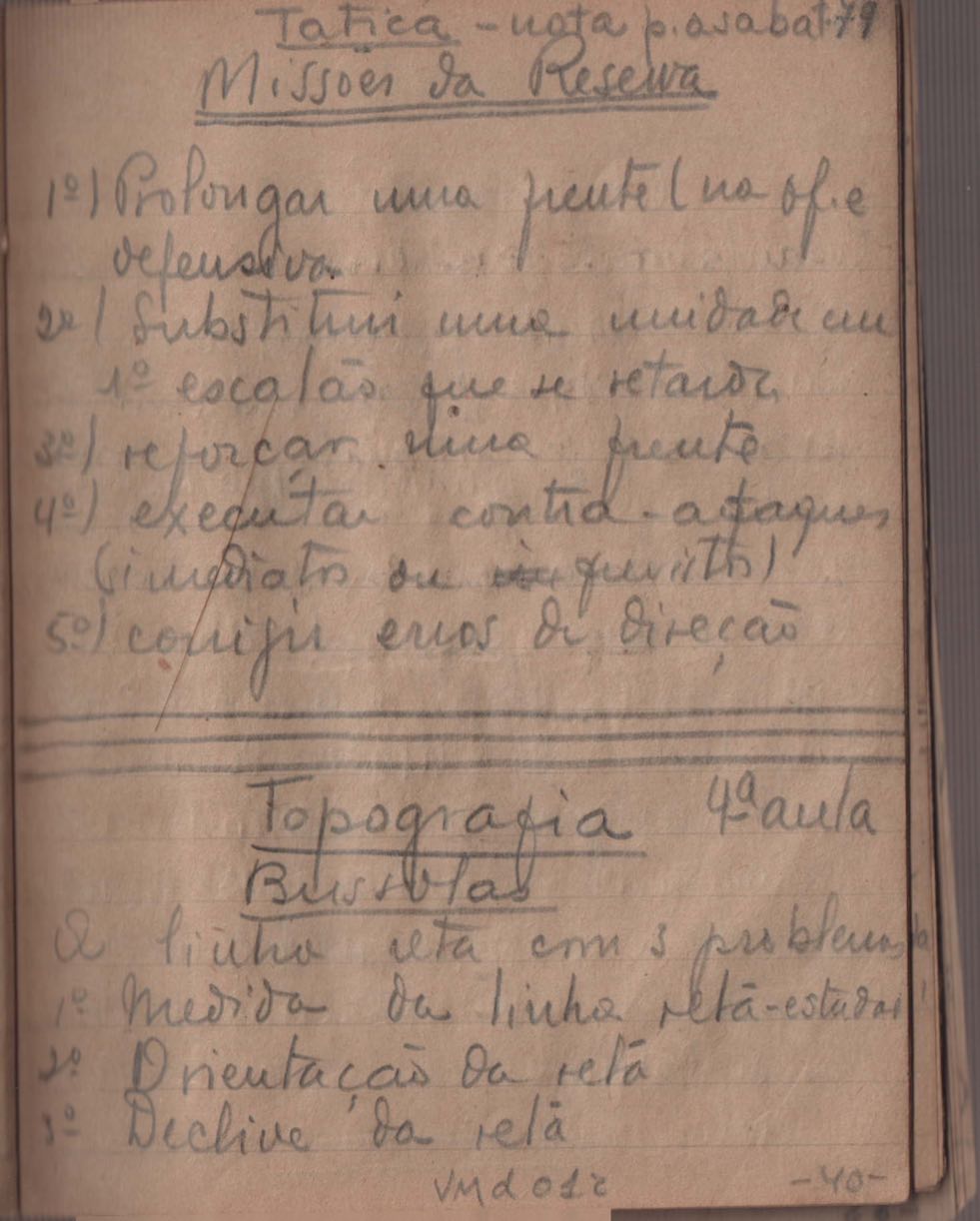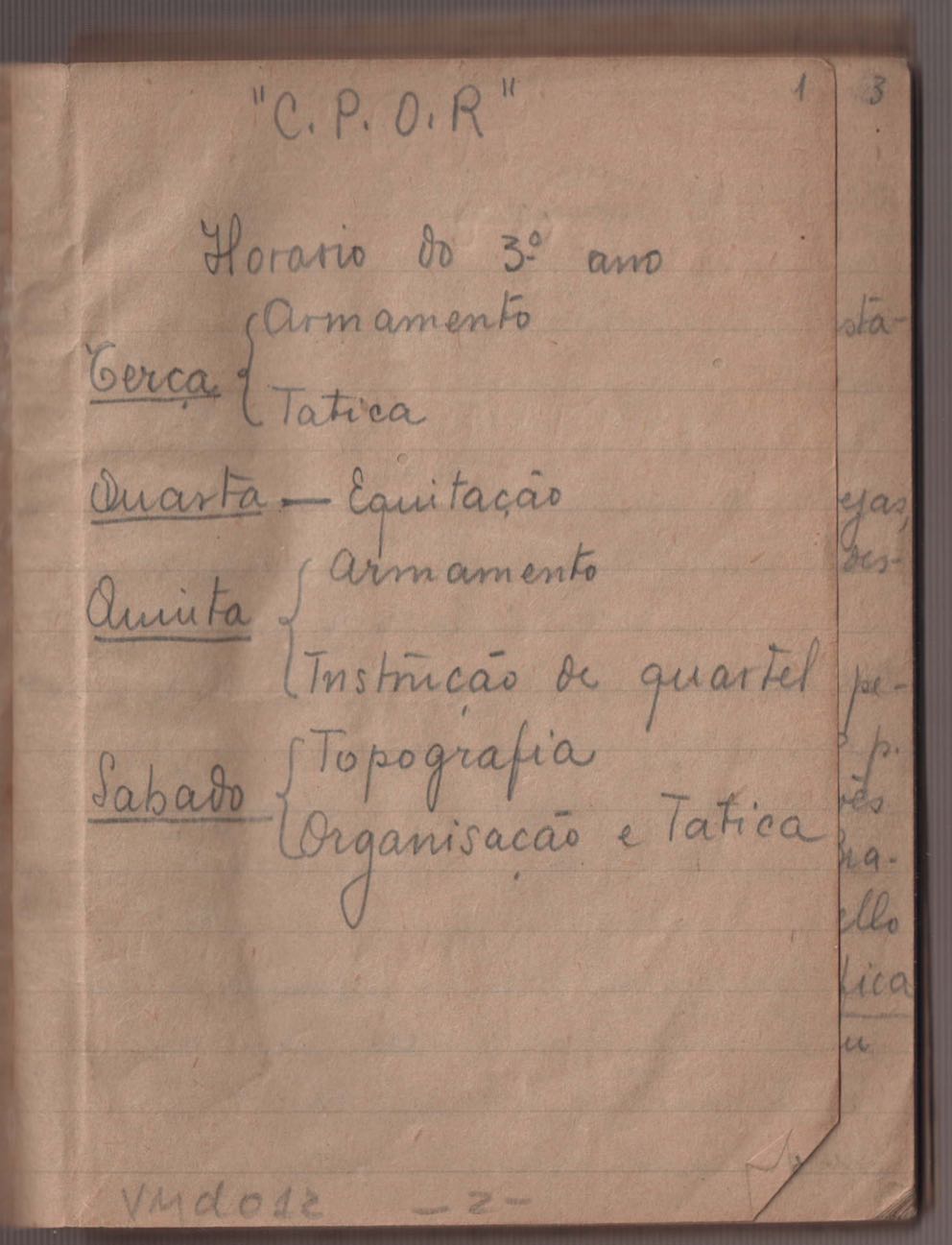Cadernos de estudo do Centro de Preparação de Oficiais da Reserva (CPOR).