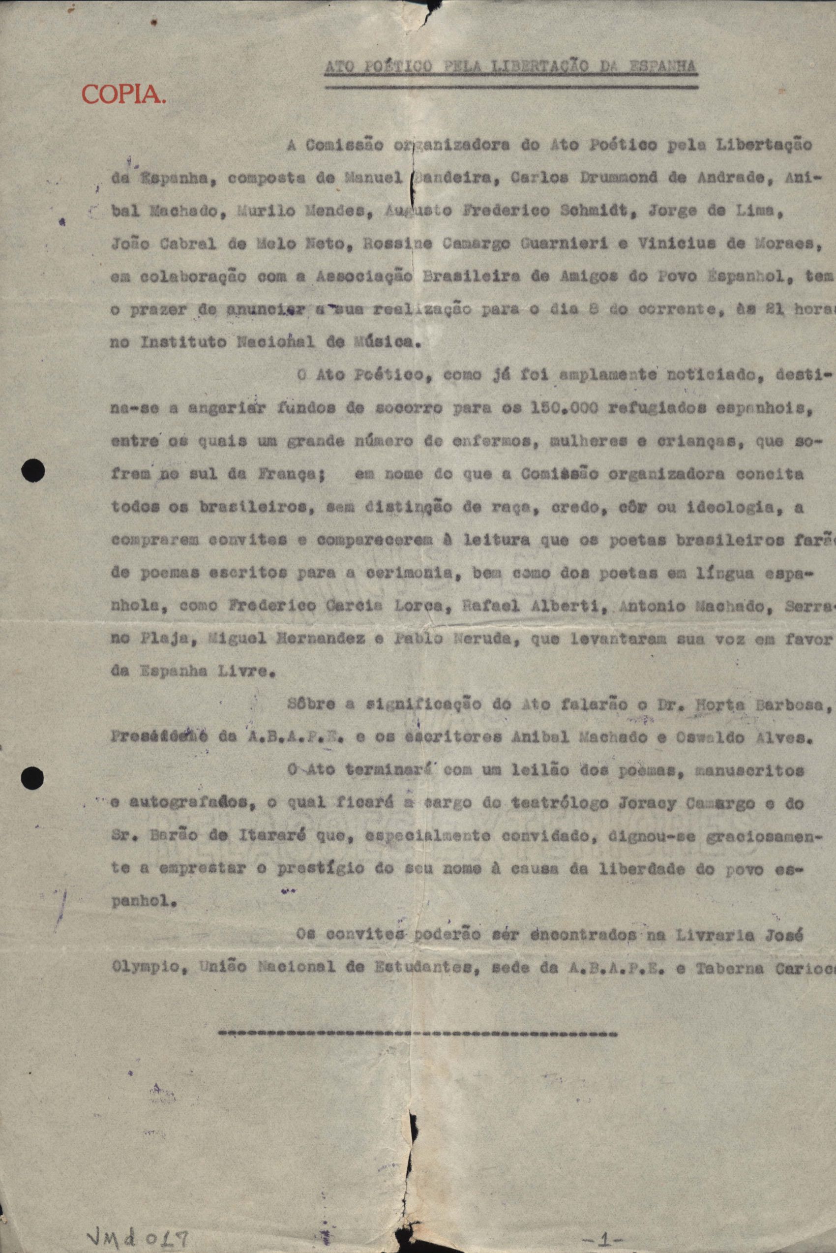 Carta circular denominada "Ato poético pela Libertação da Espanha"