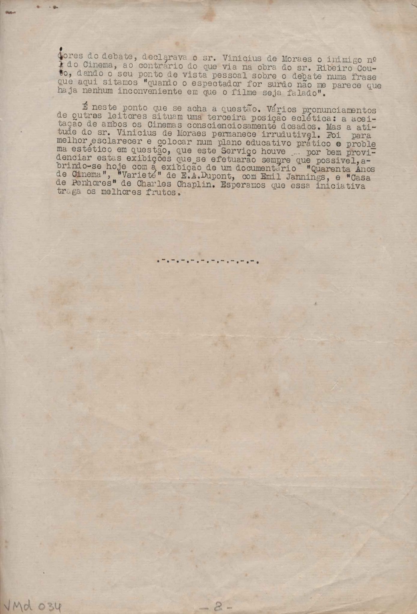 TÍTULO: Debate sobre o cinema silencioso e o cinema sonoro