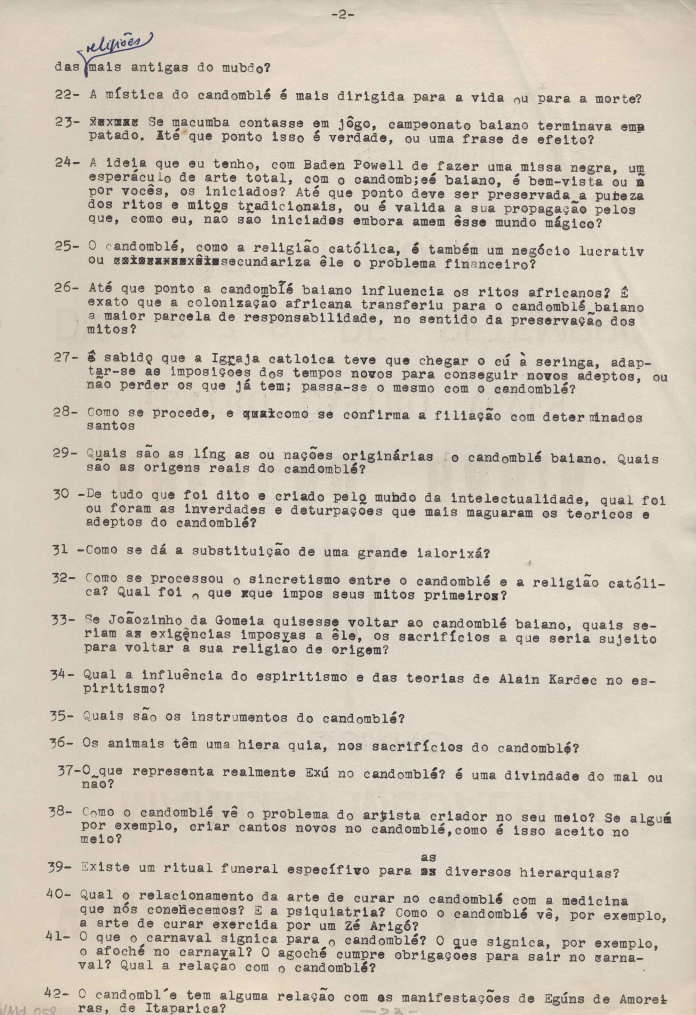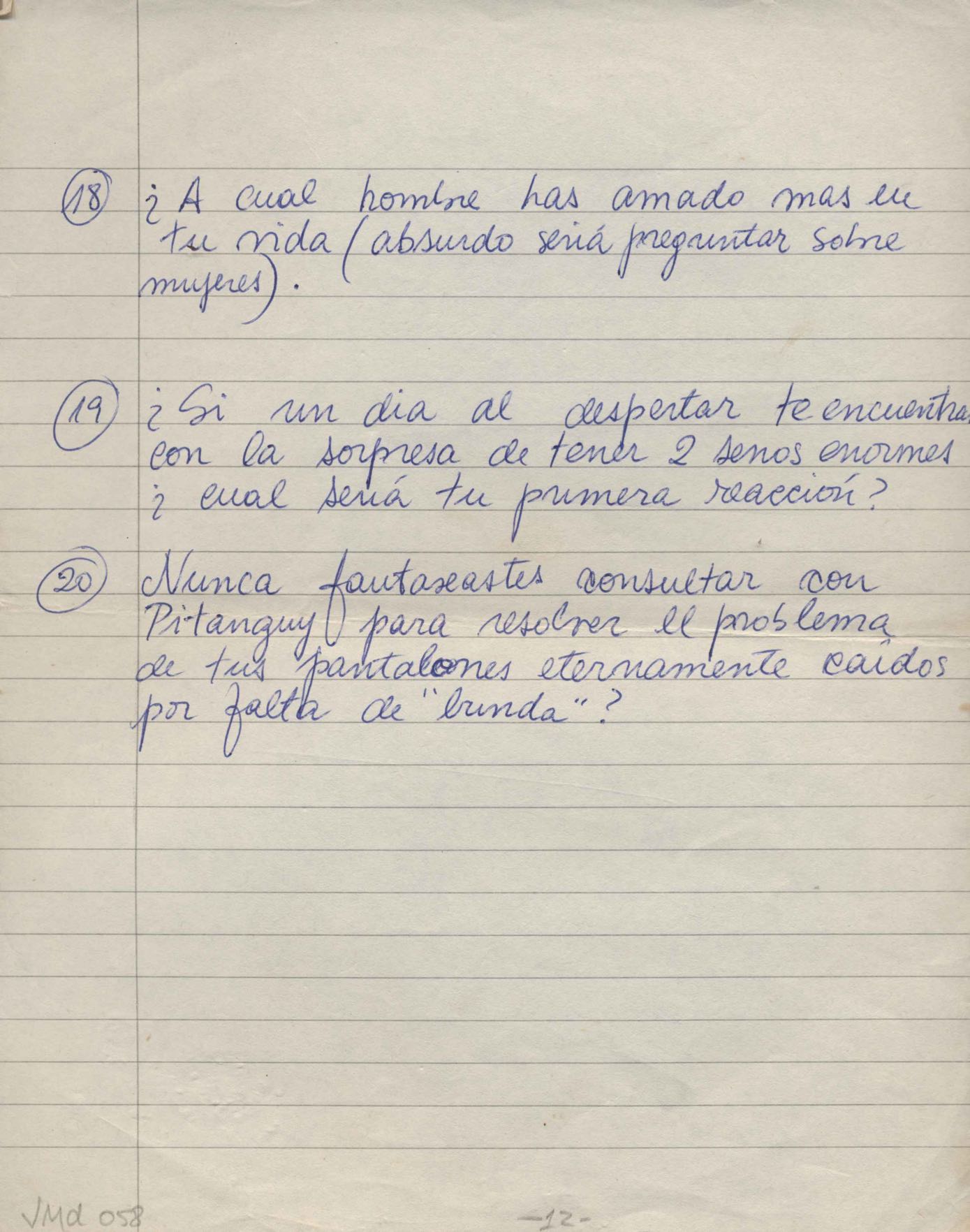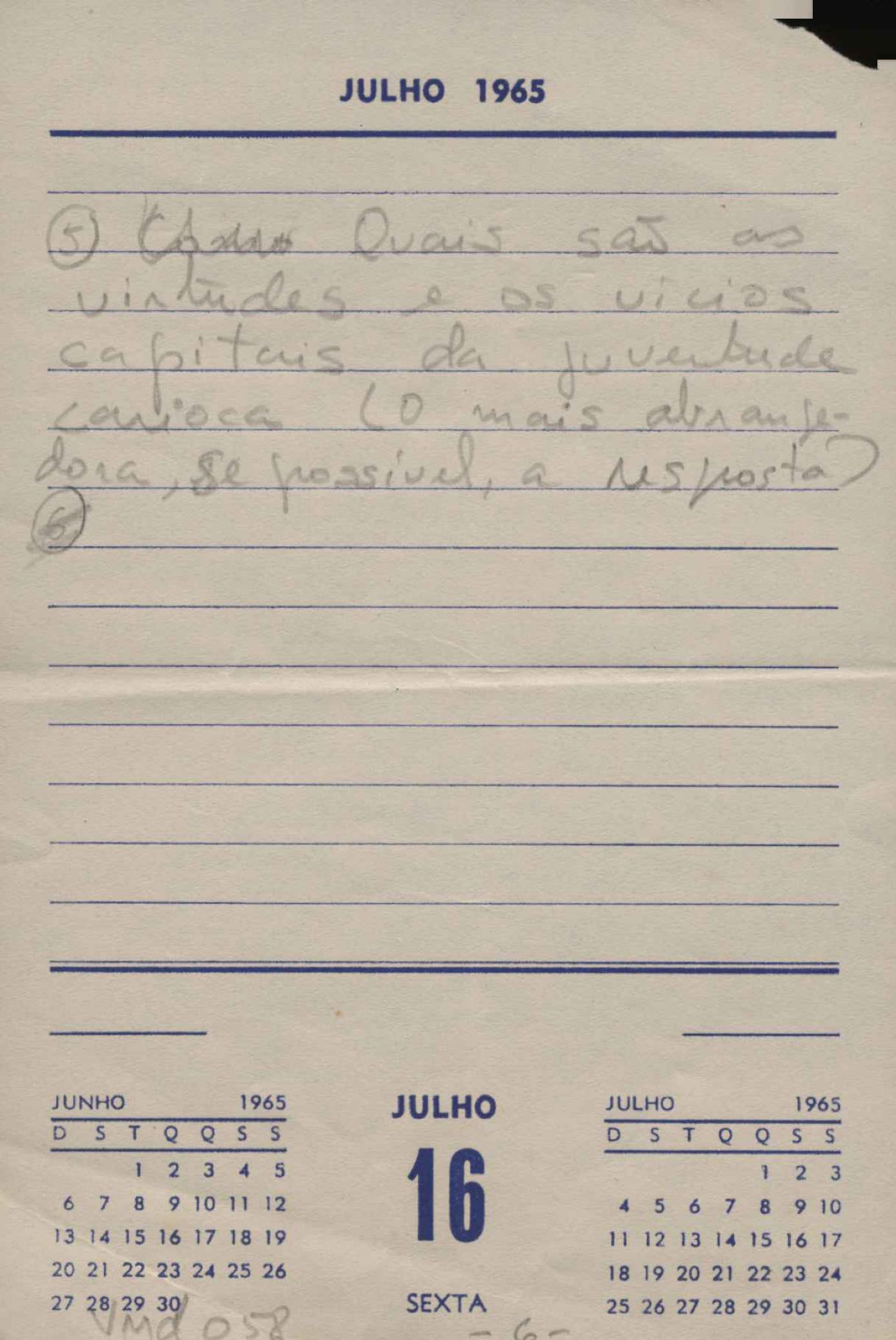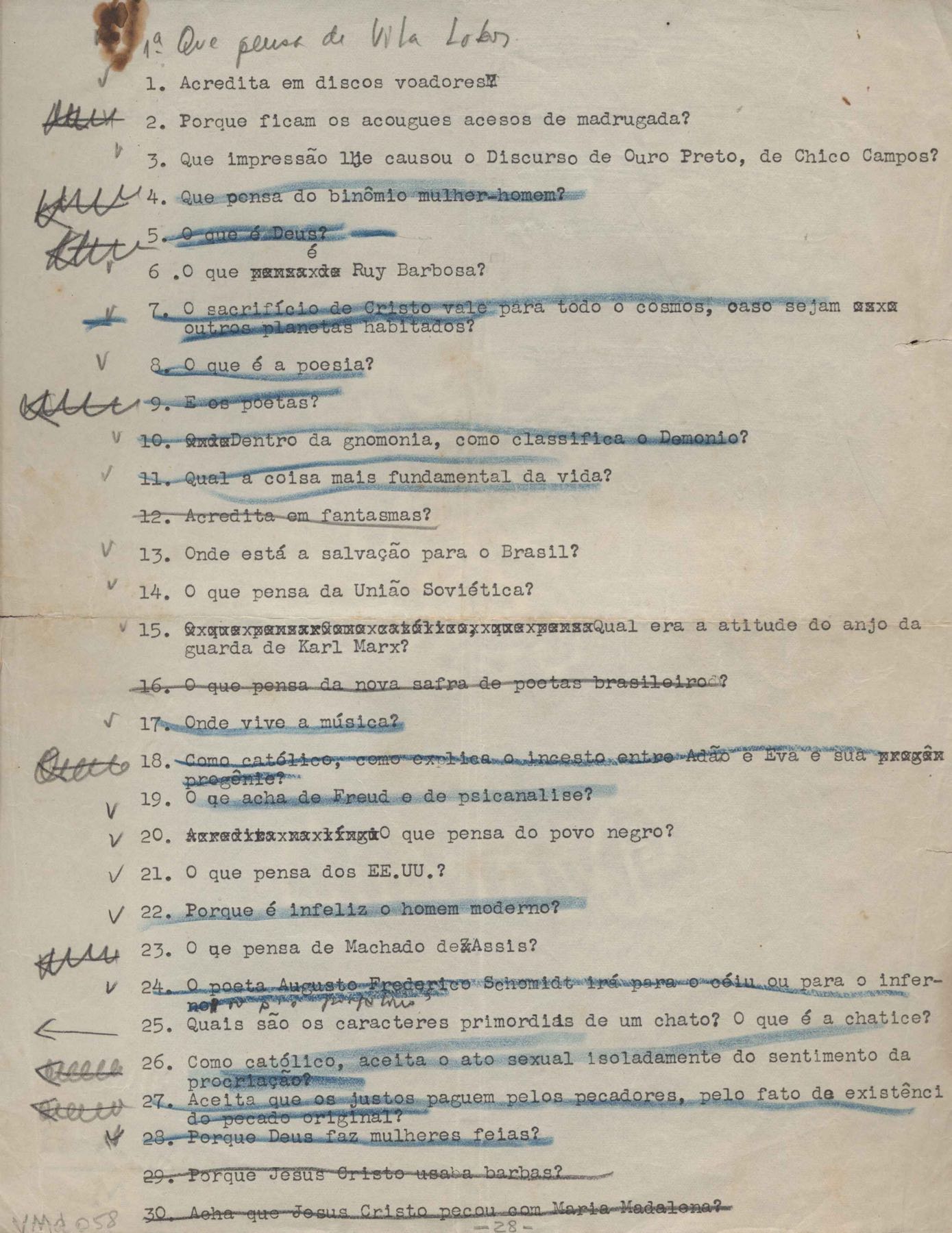 TÍTULO: Perguntas para entrevista com VM