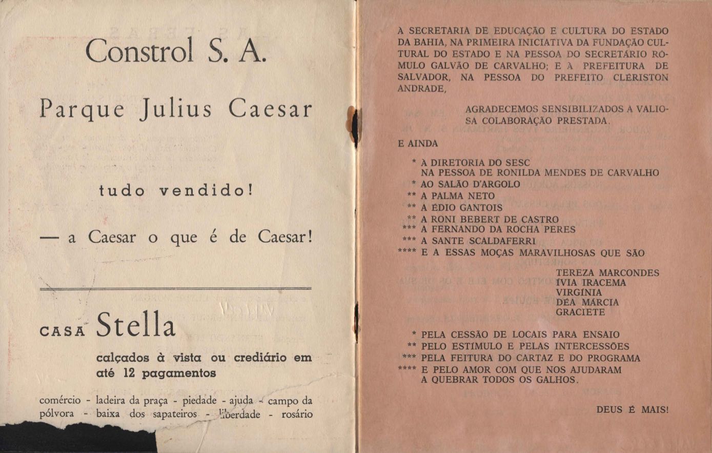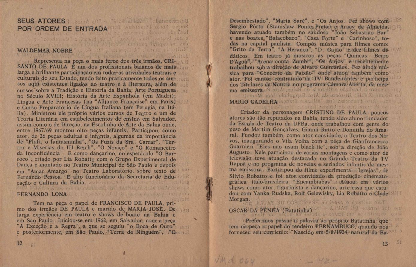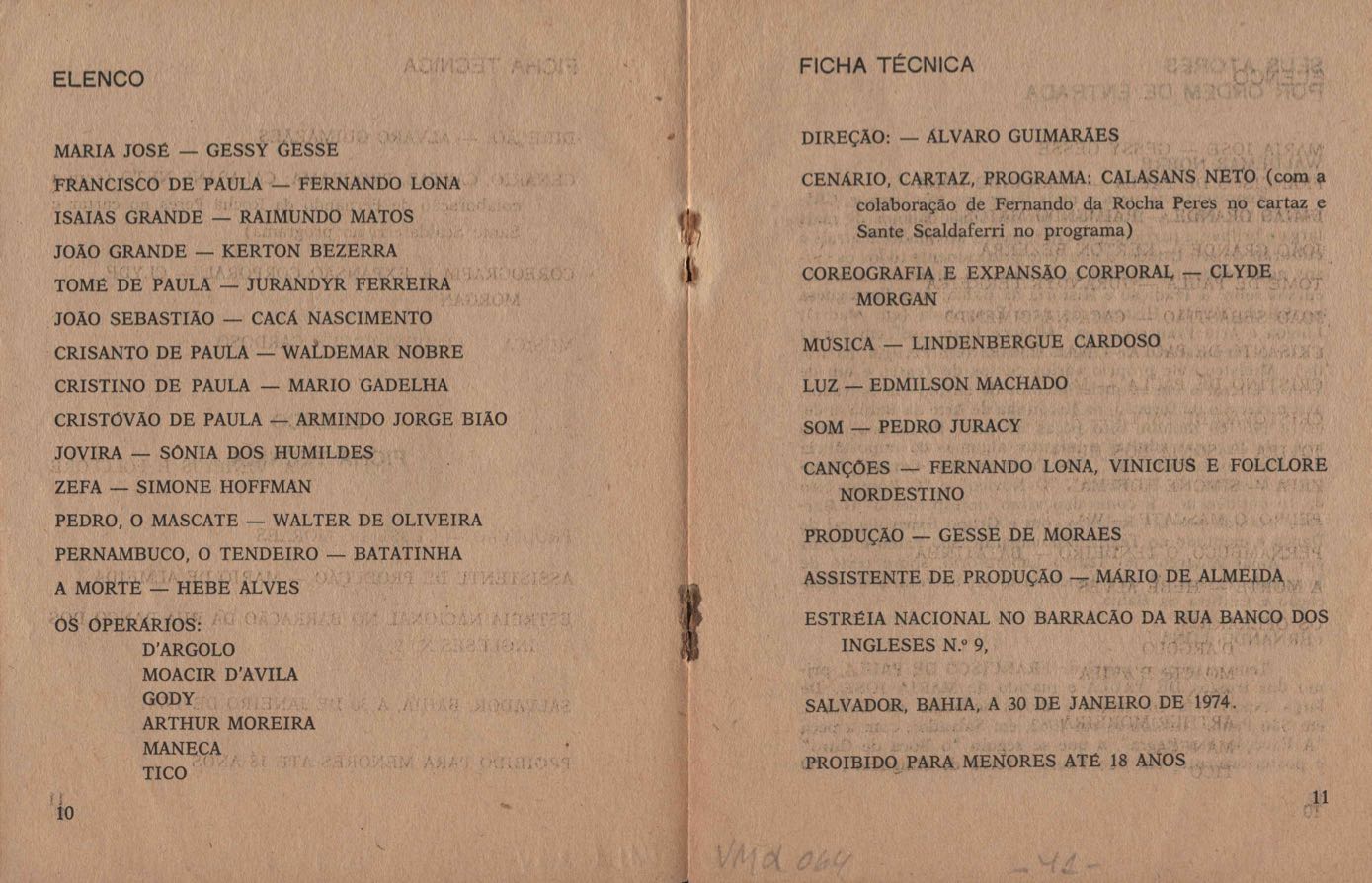 TÍTULO: Programa/convite de peça teatral, show ou conferência
