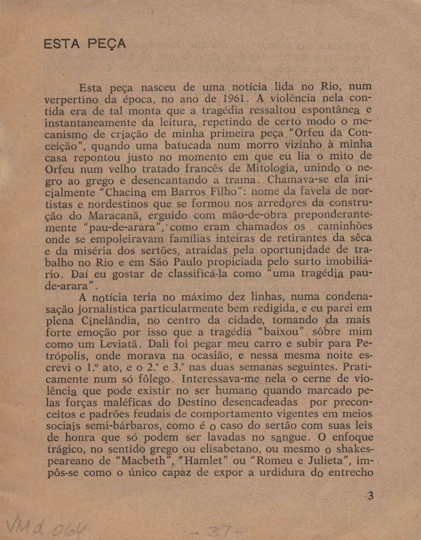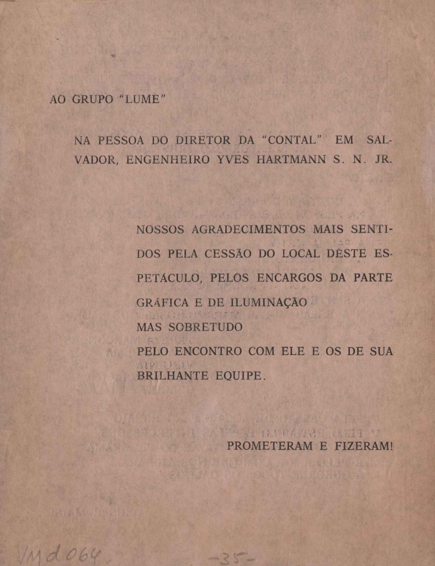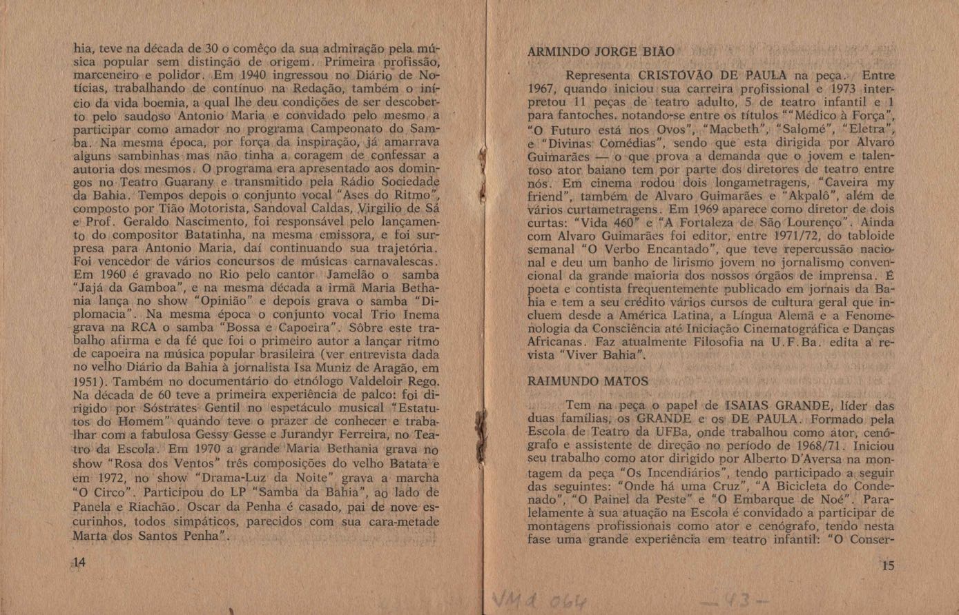 TÍTULO: Programa/convite de peça teatral, show ou conferência