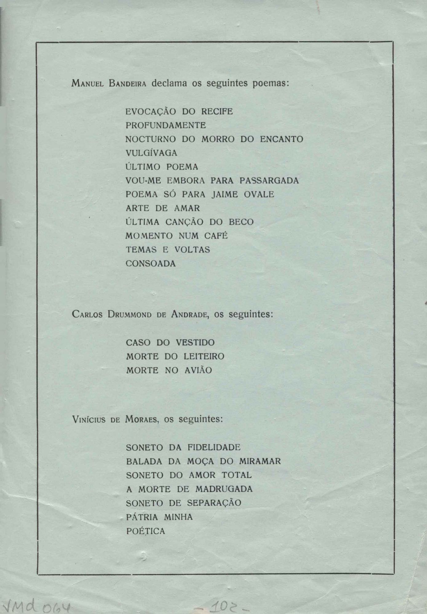 TÍTULO: Programa/convite de peça teatral, show ou conferência