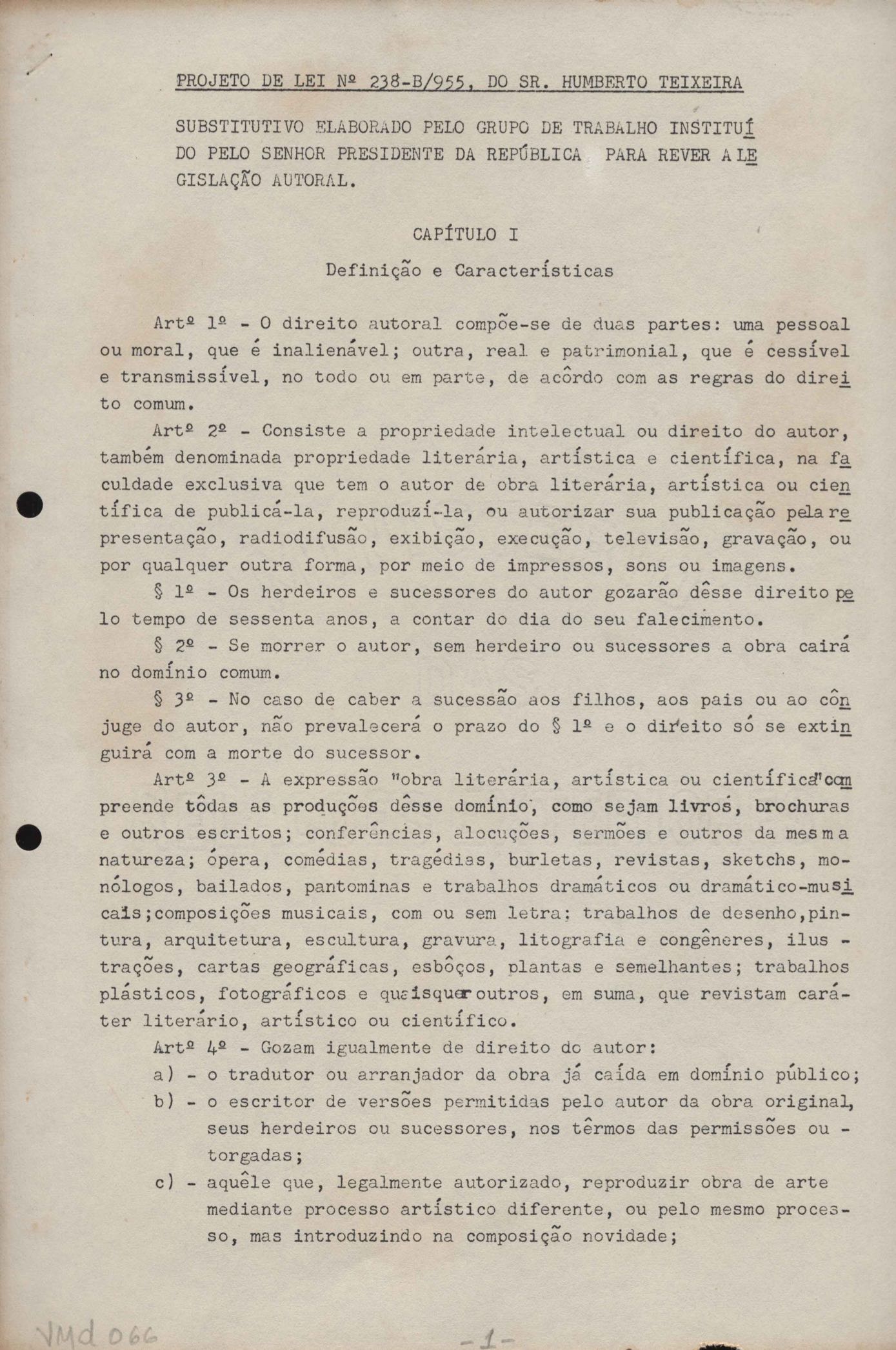 Projeto de lei nº 238-B/955, de Humberto Teixeira
