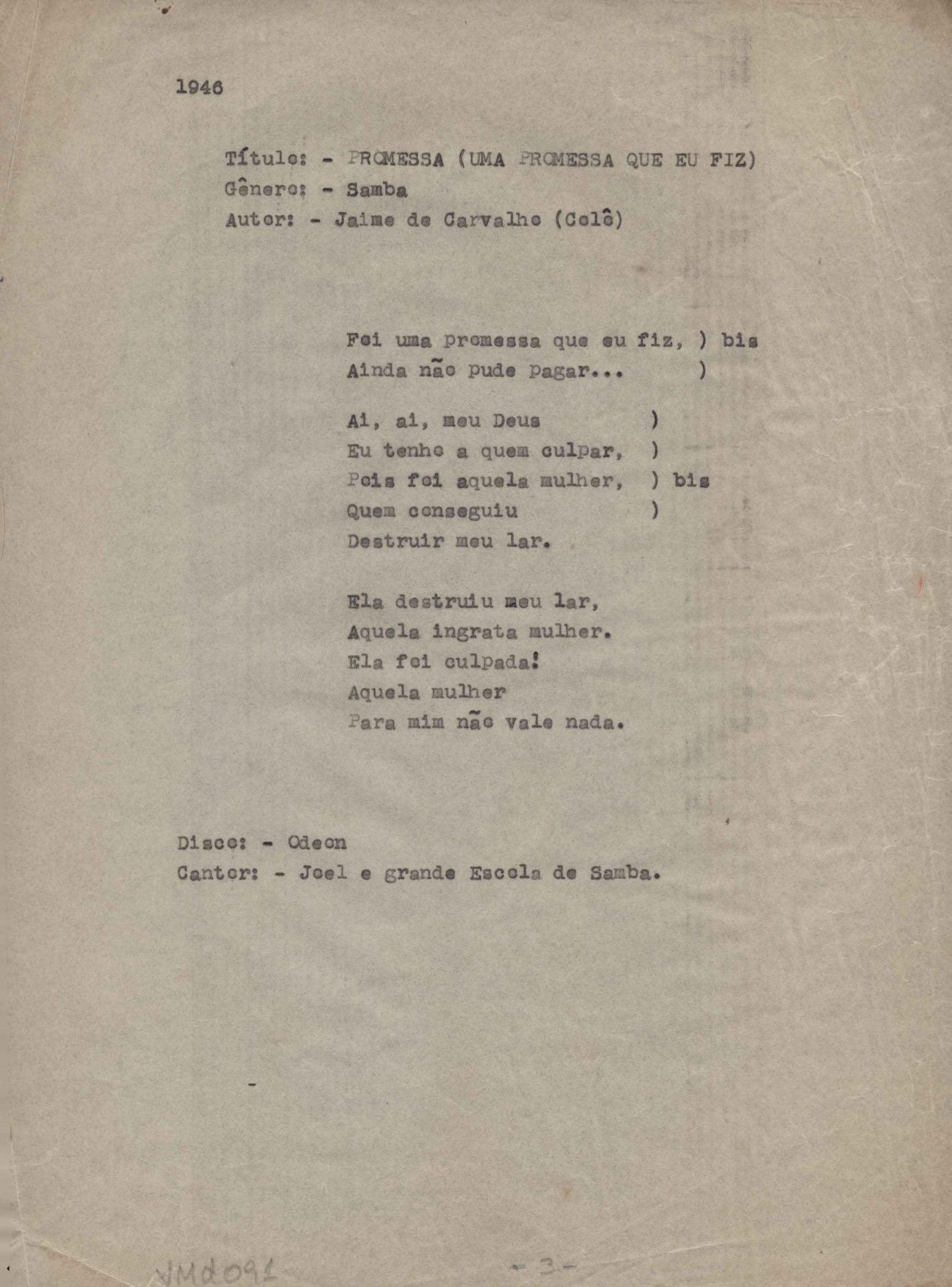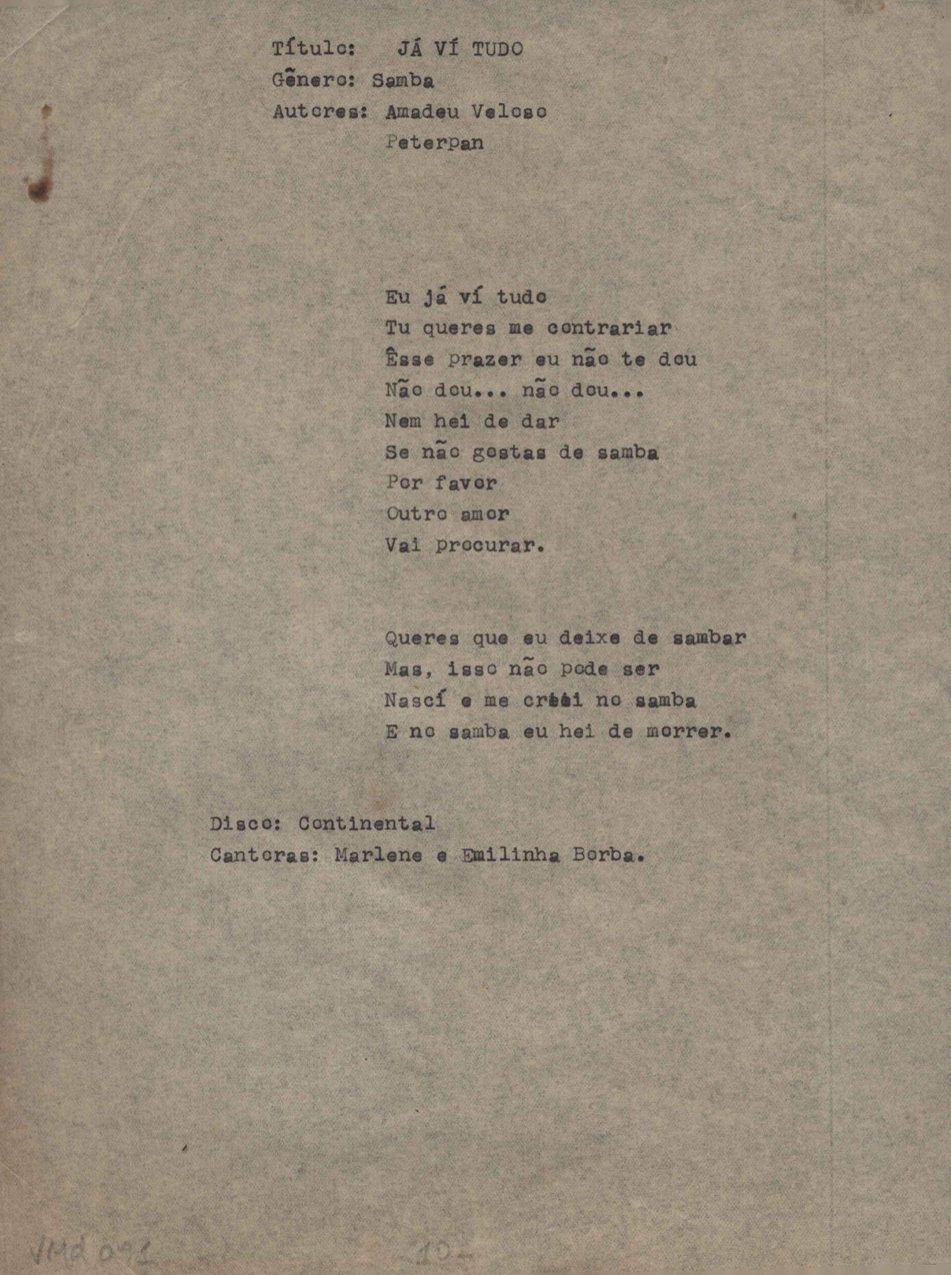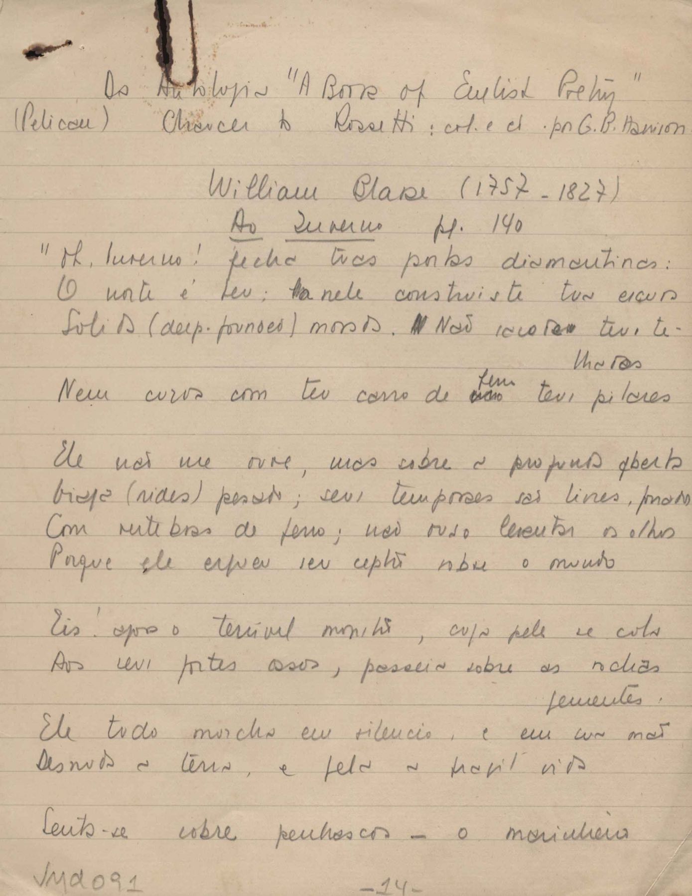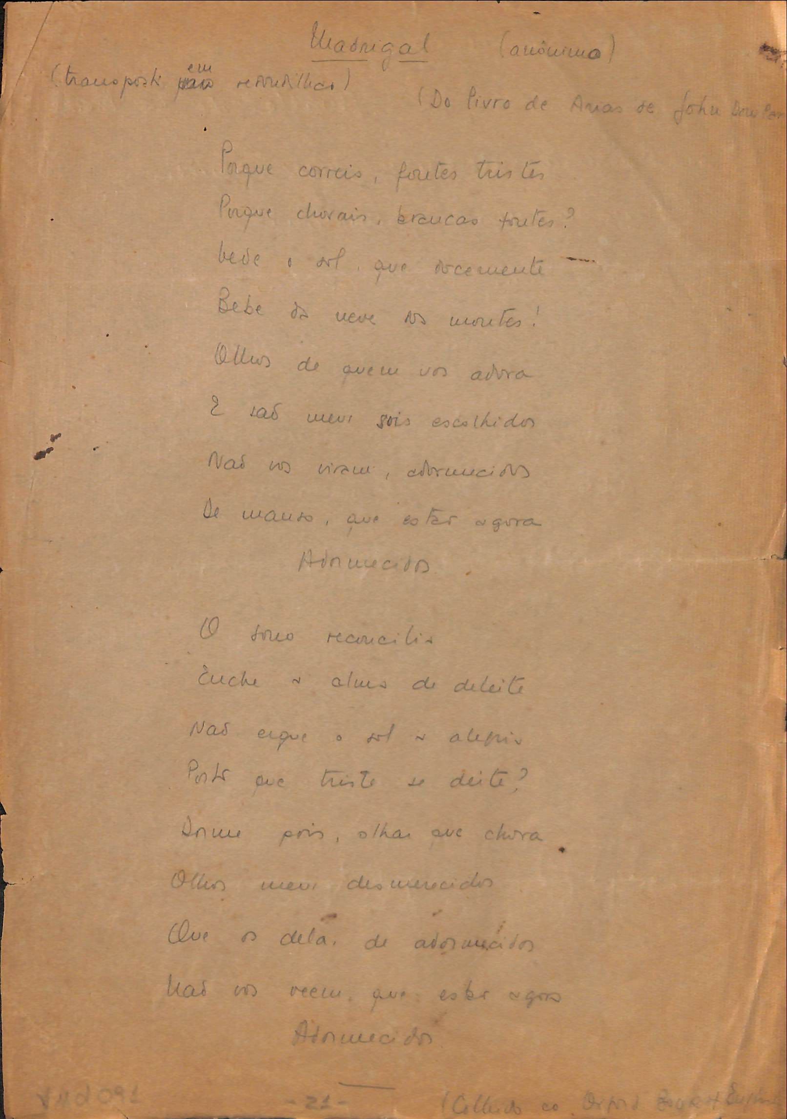 TÍTULO: Transcrições (21) de poemas e músicas de terceiros
