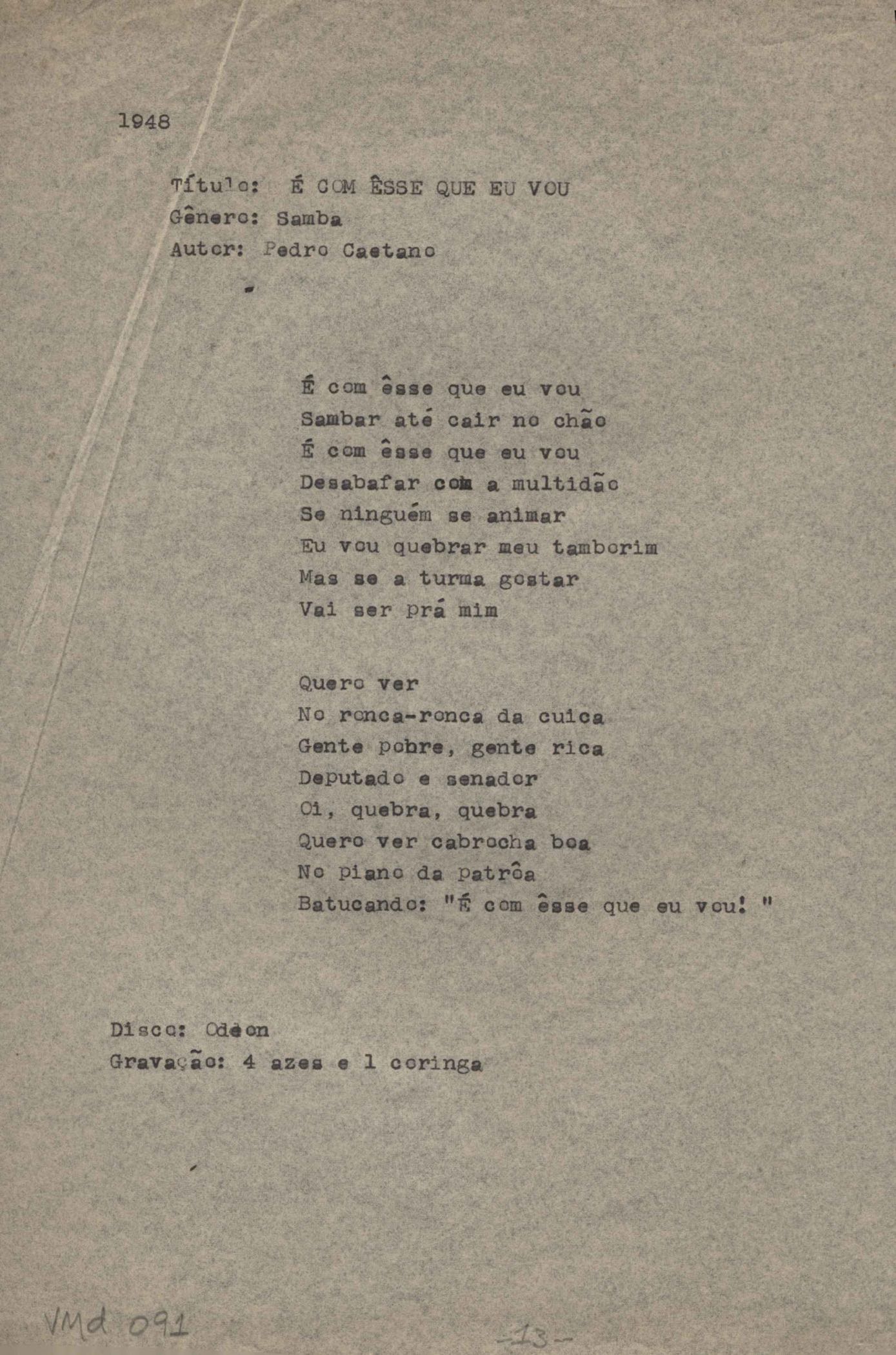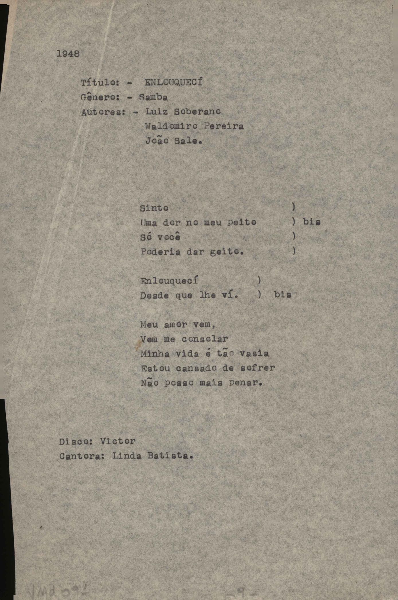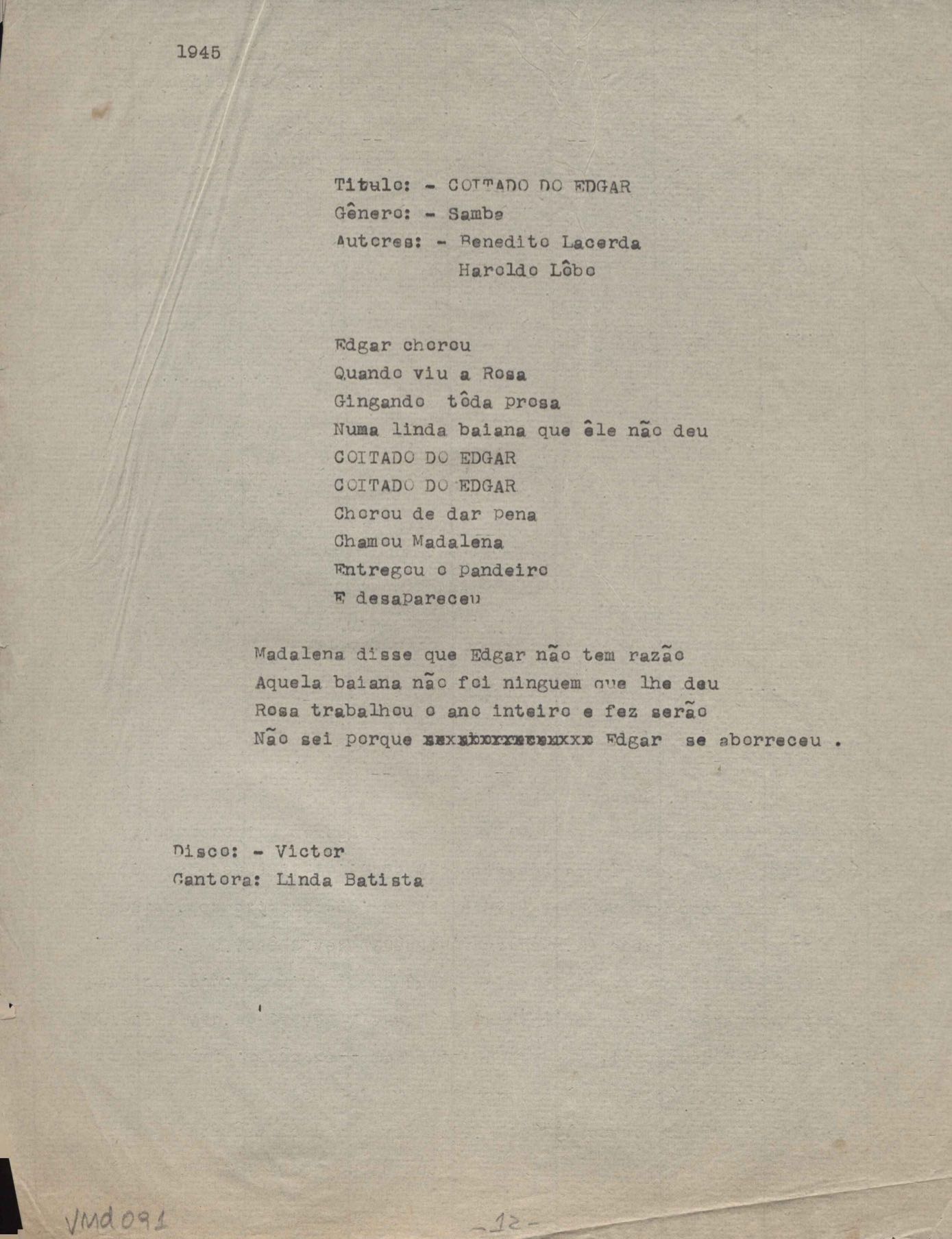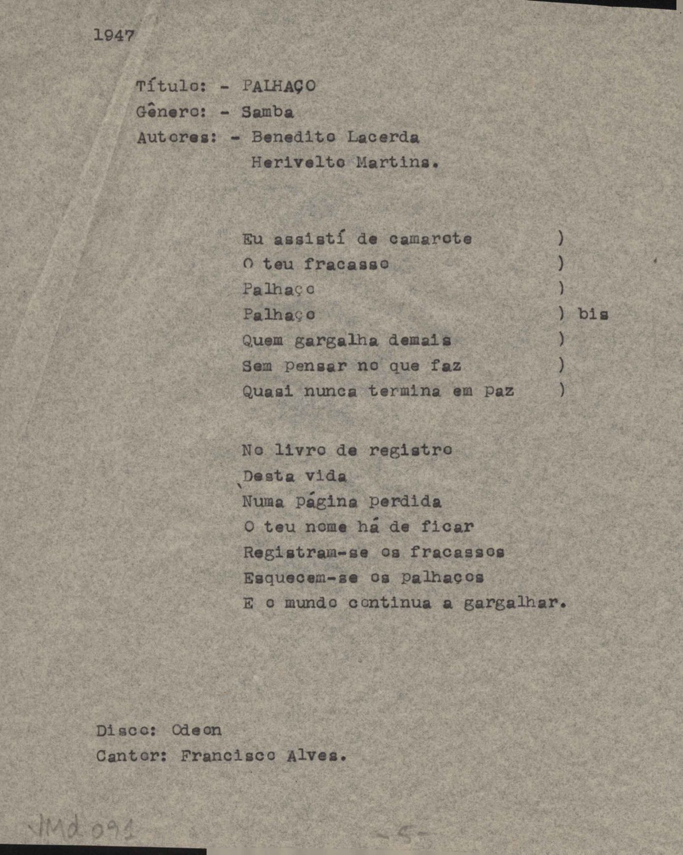 TÍTULO: Transcrições (21) de poemas e músicas de terceiros
