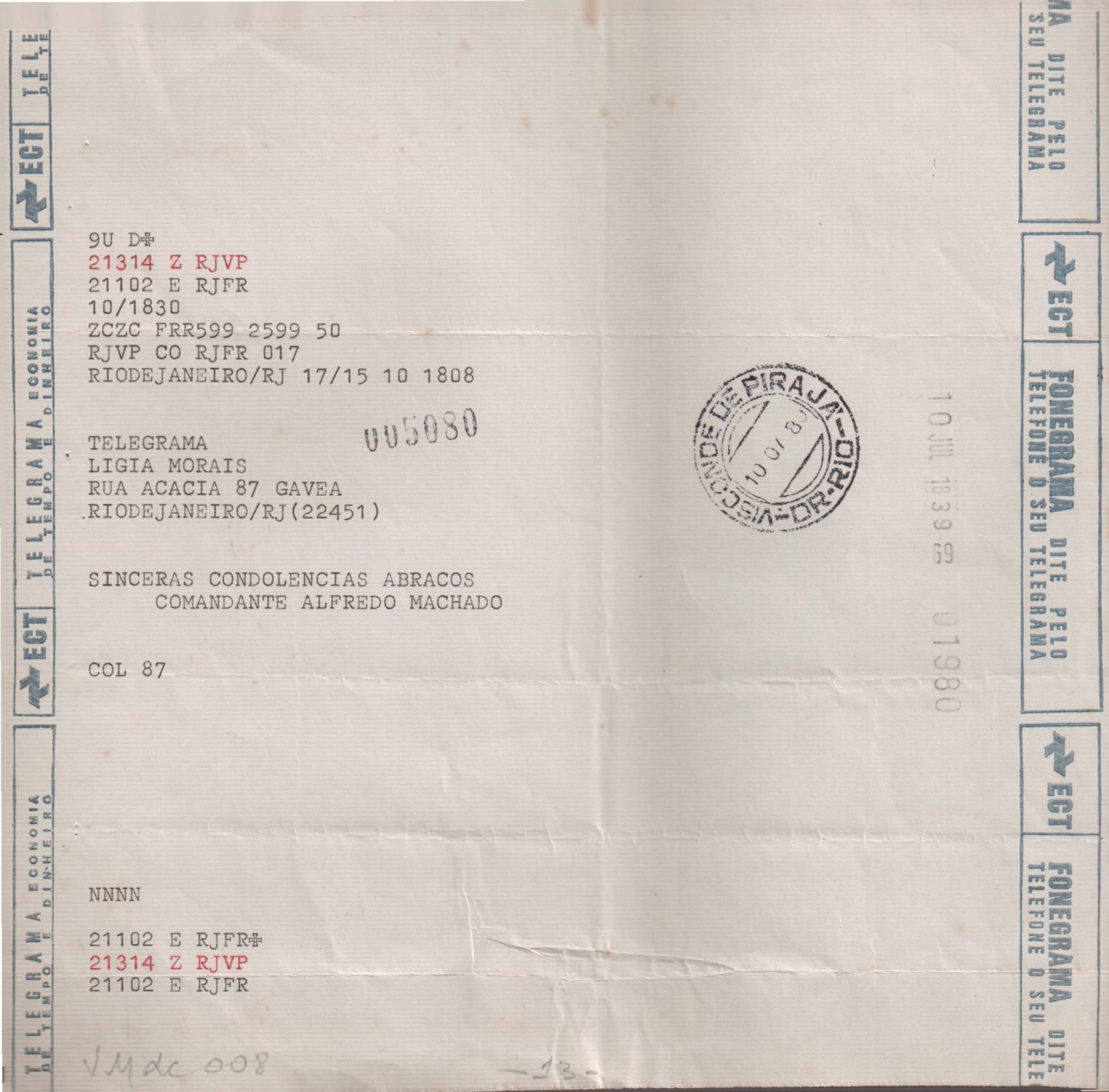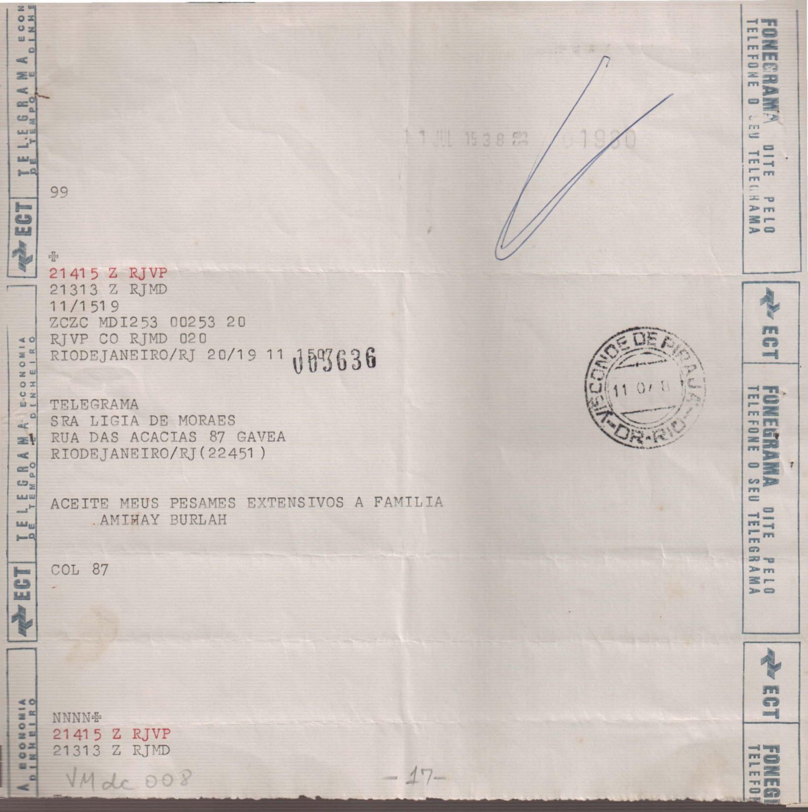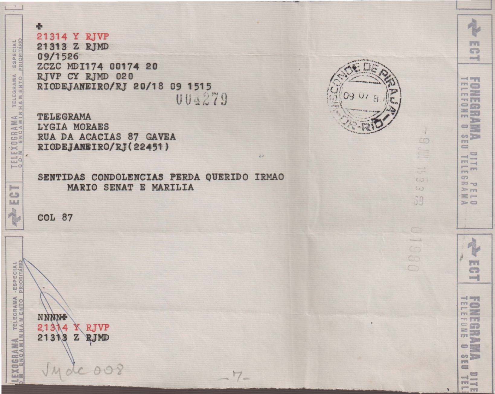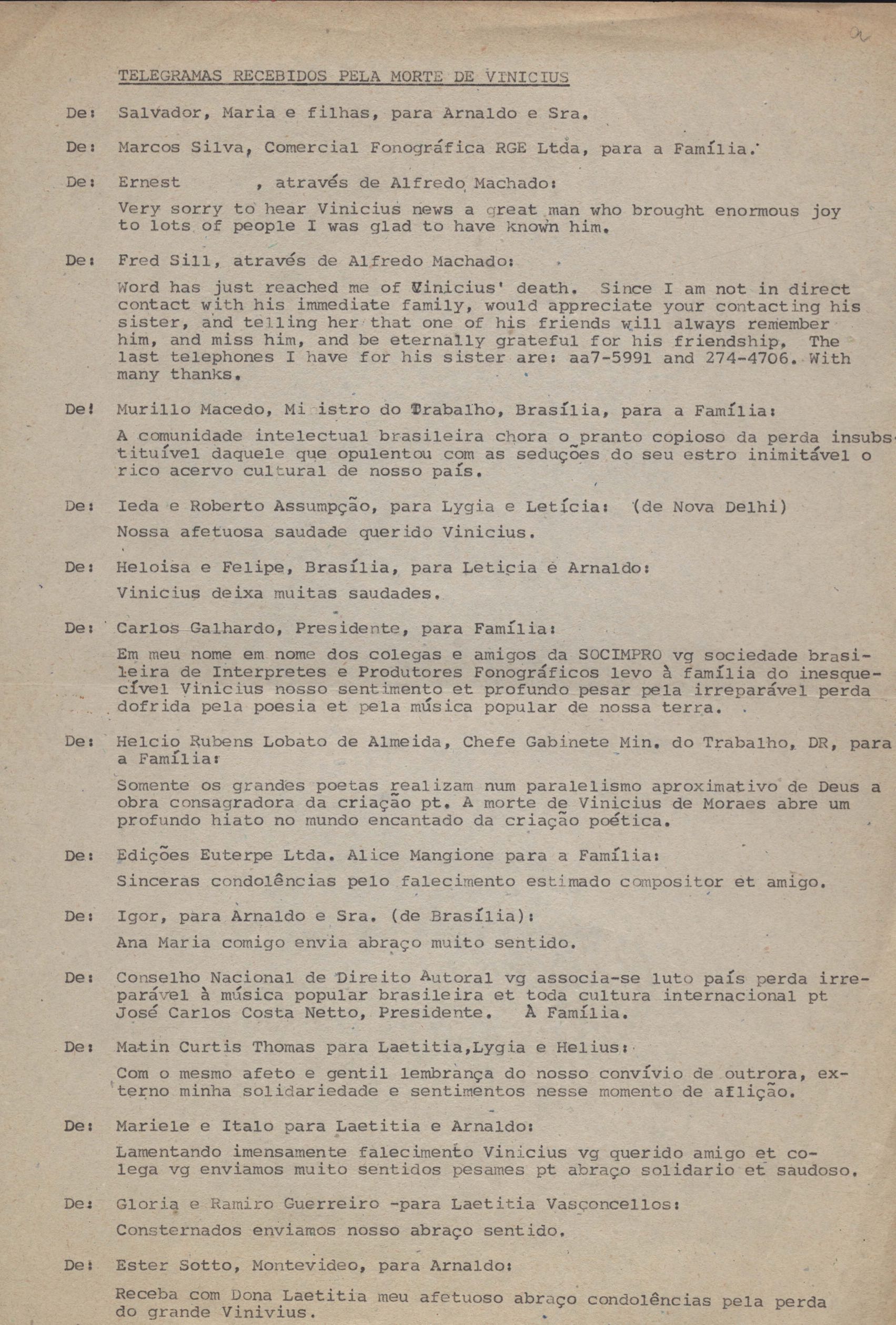 Anexo: Transcrição de vários telegramas recebidos.