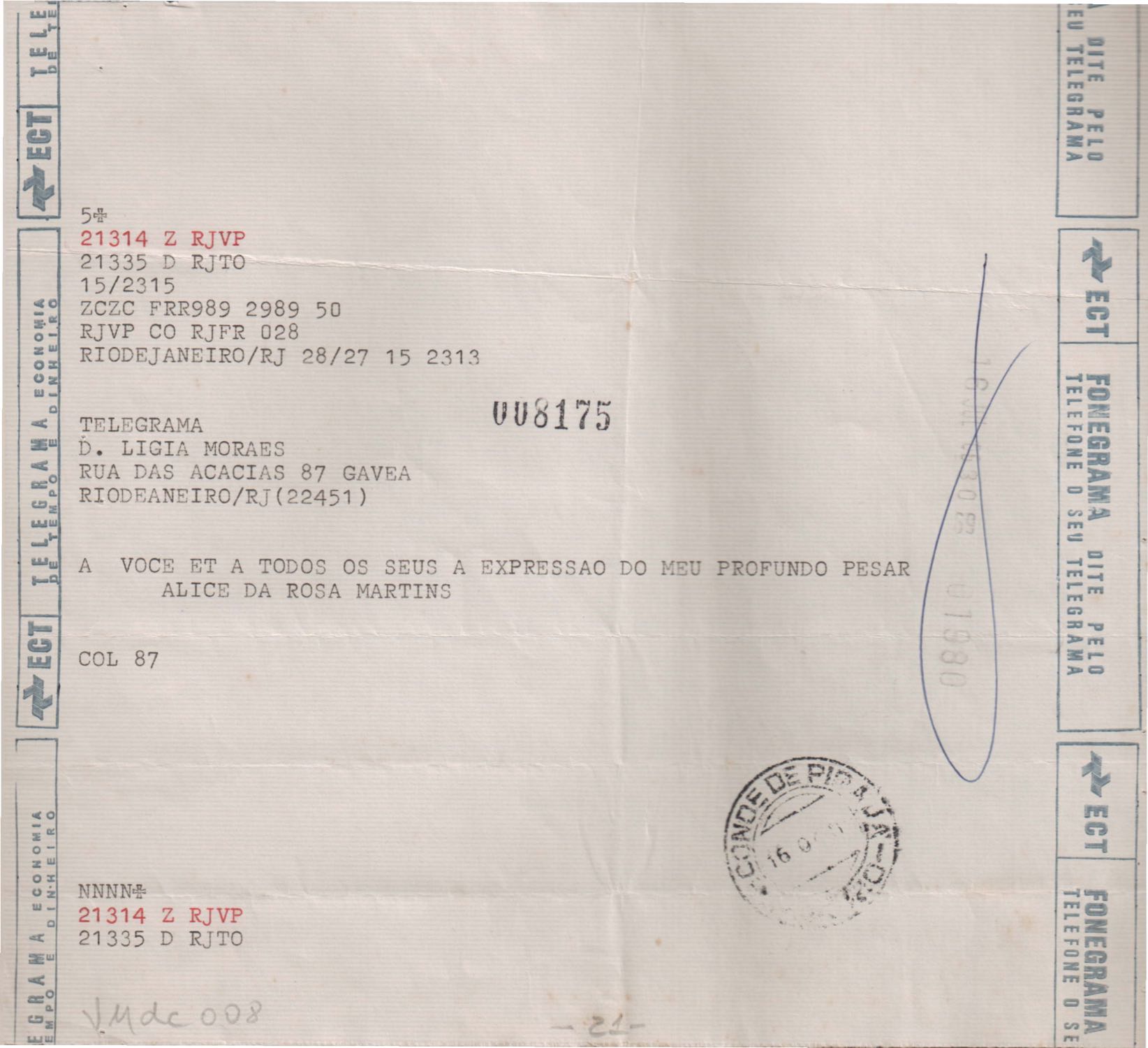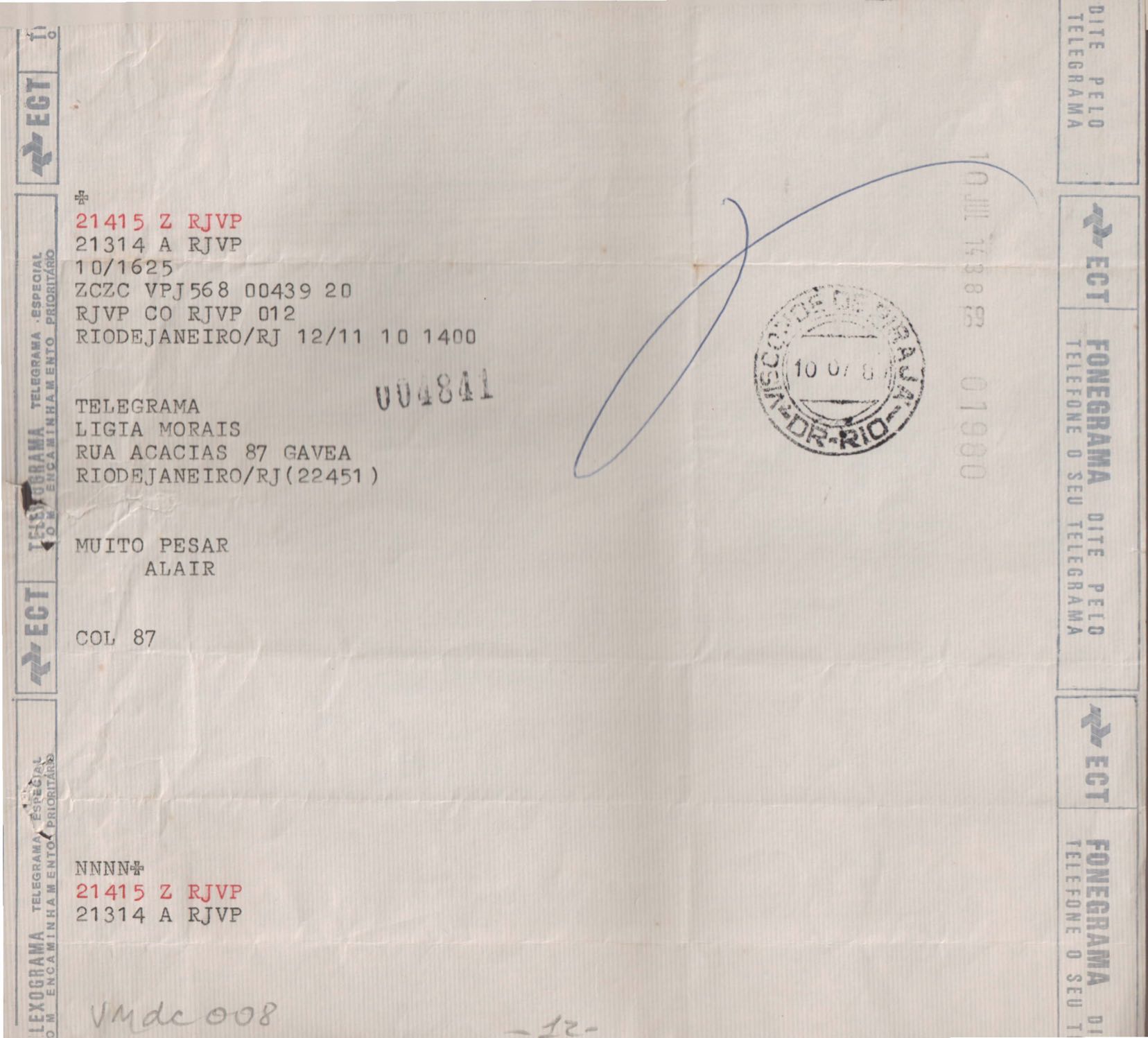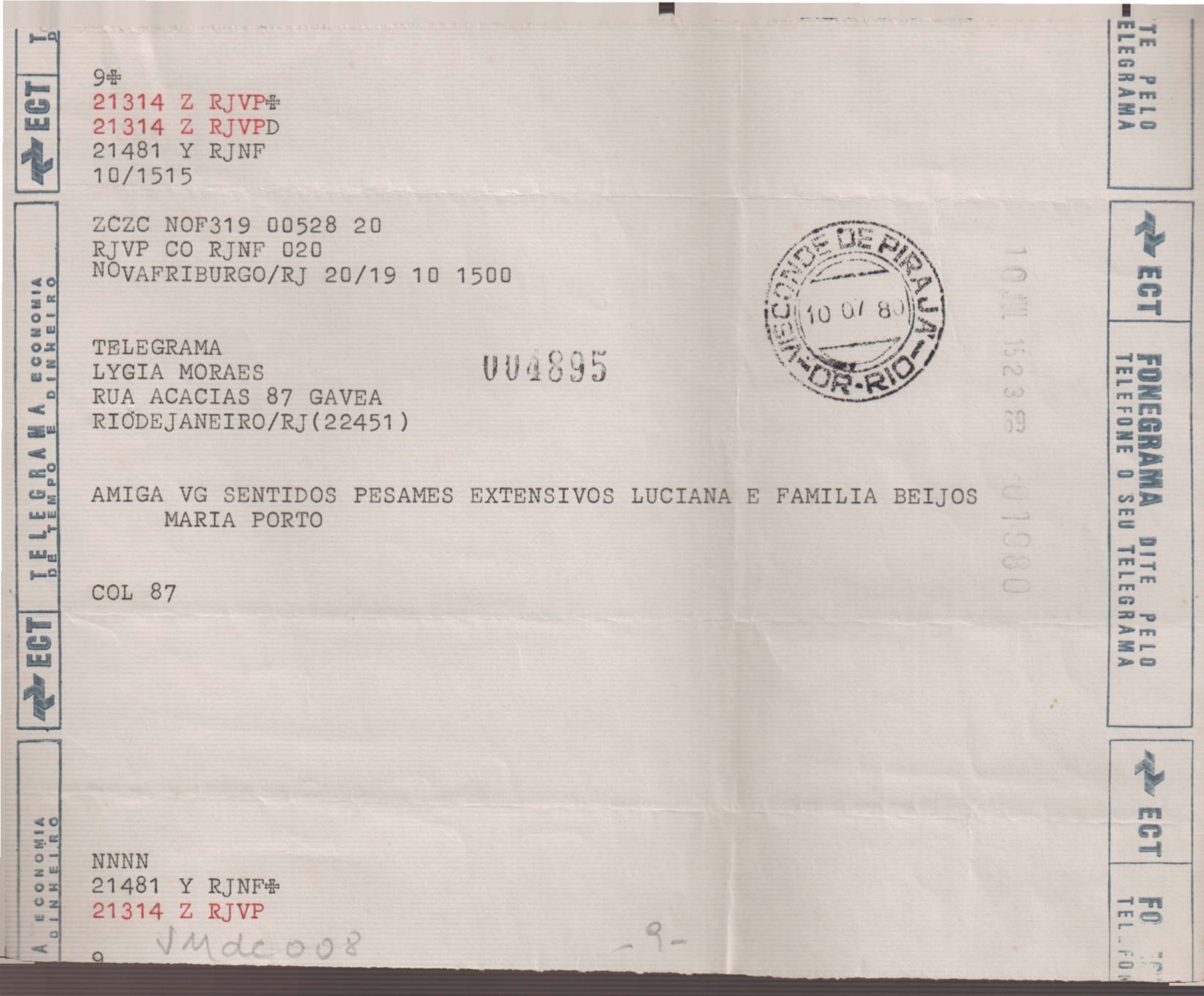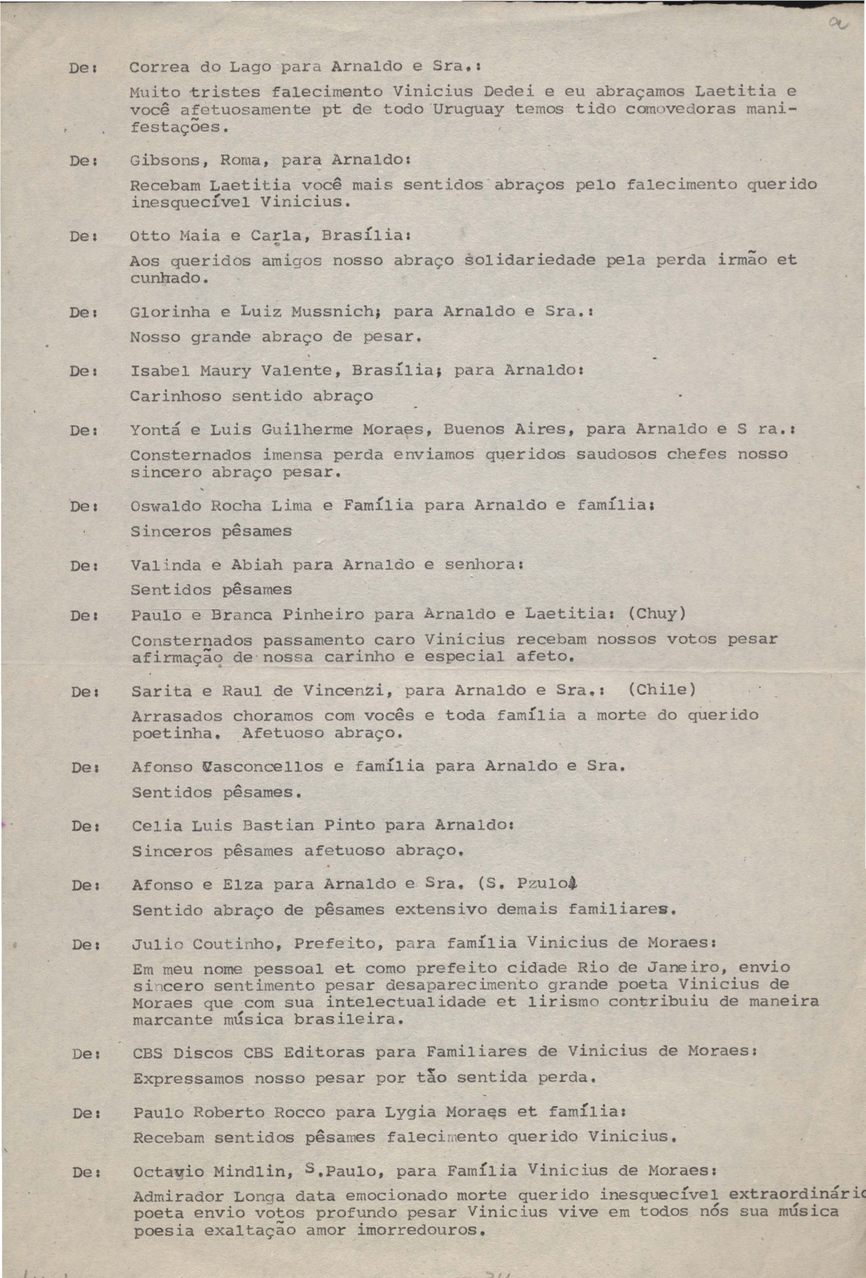 Anexo: Transcrição de vários telegramas recebidos.
