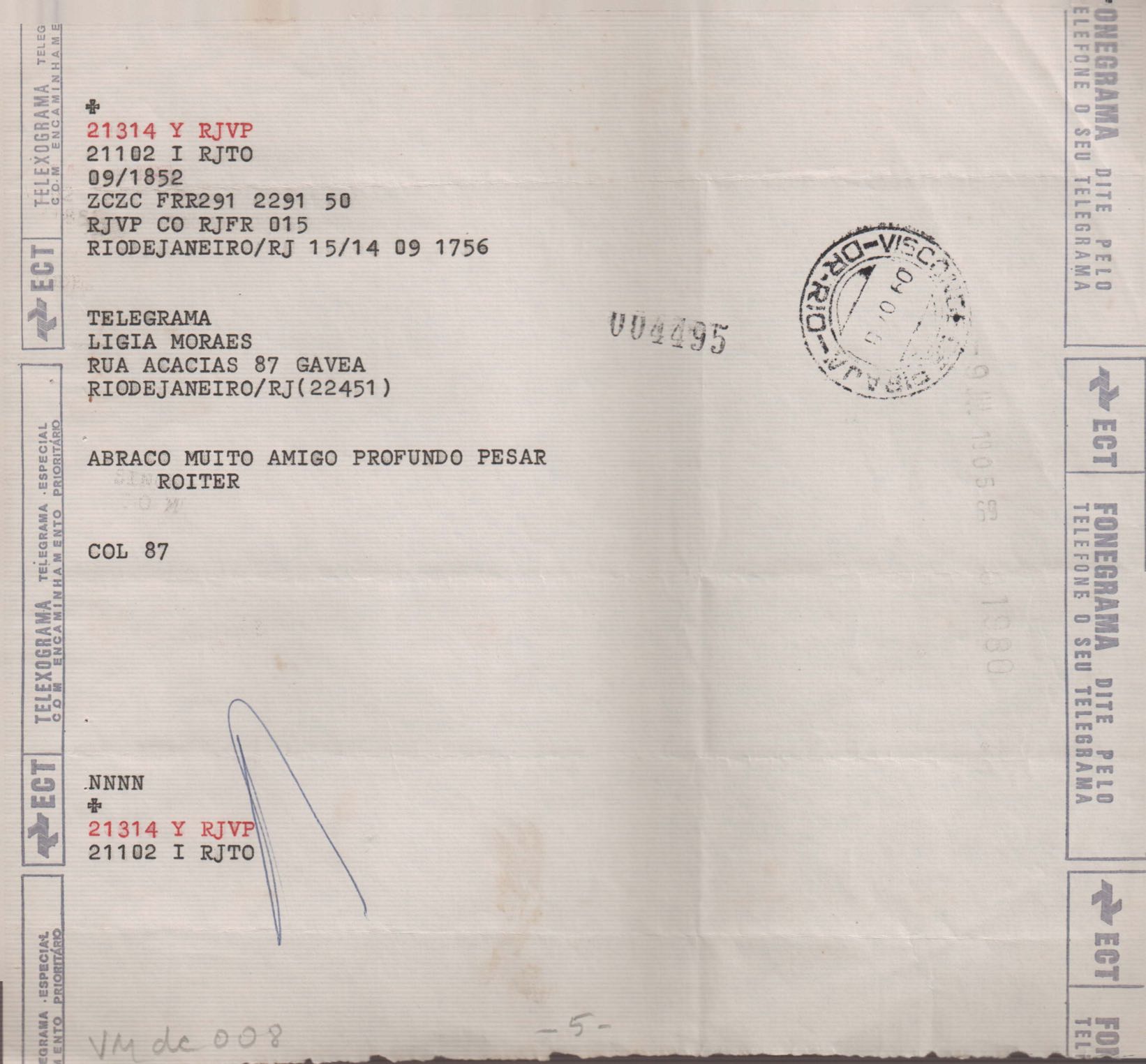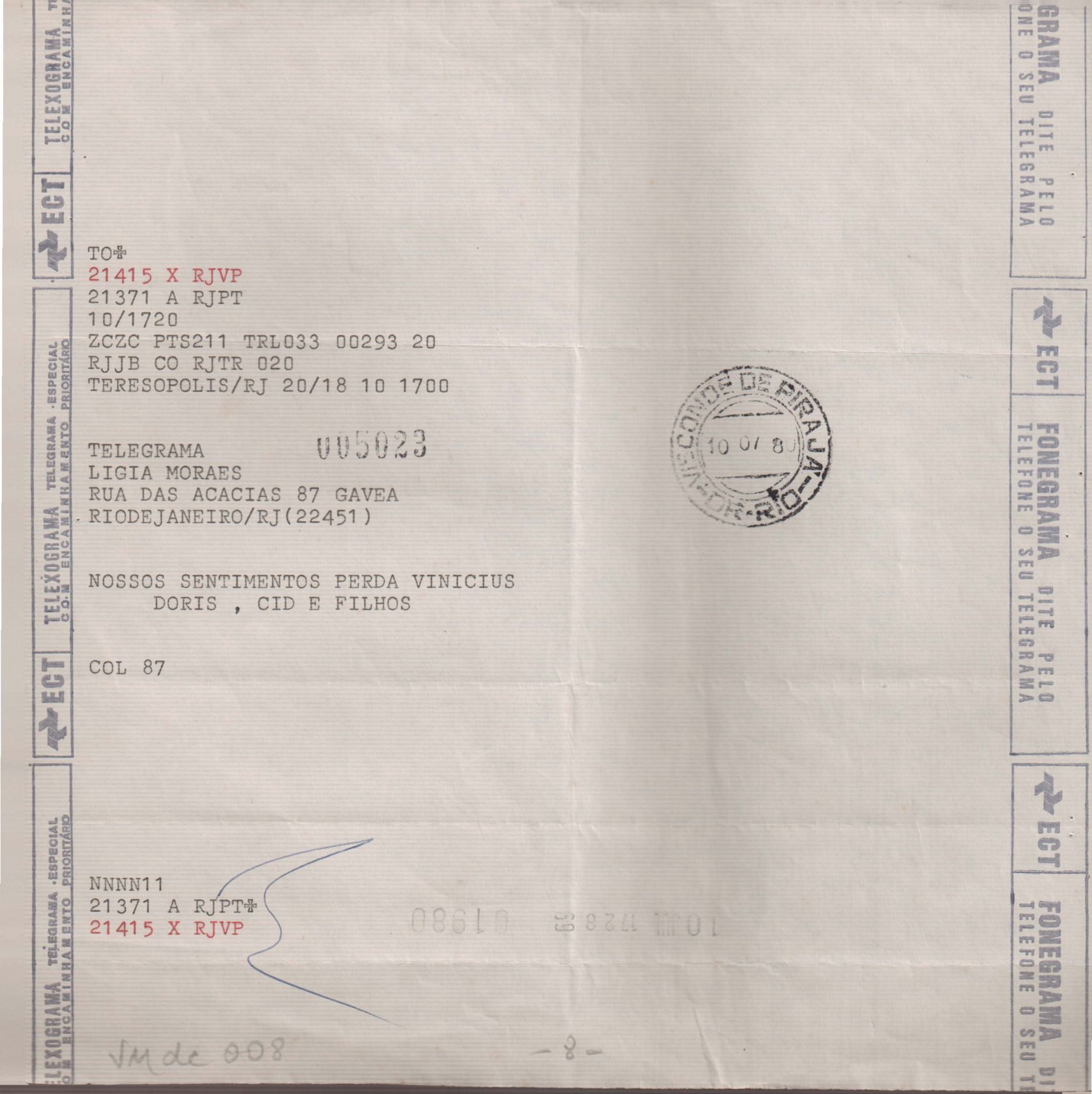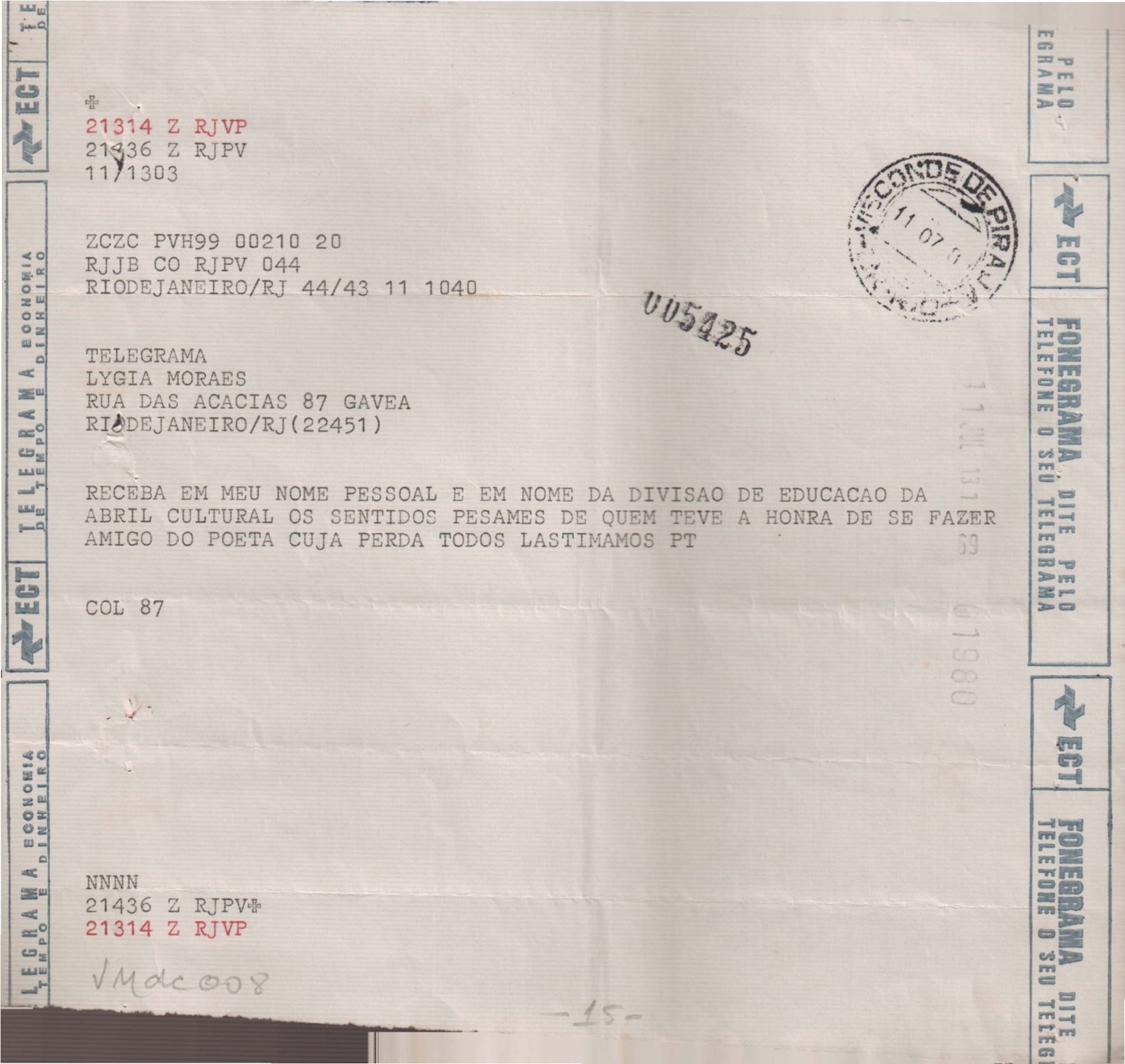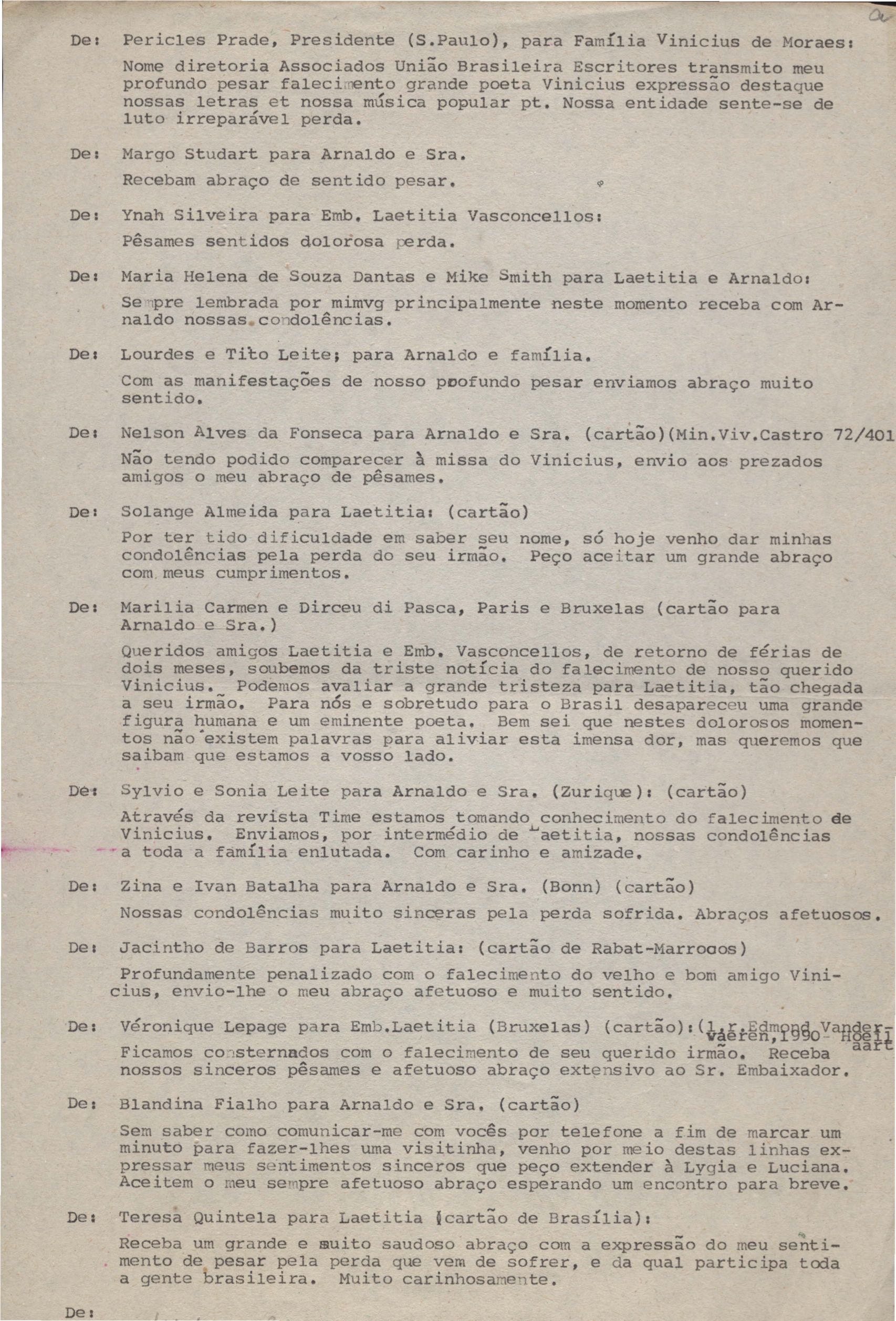 Anexo: Transcrição de vários telegramas recebidos.
