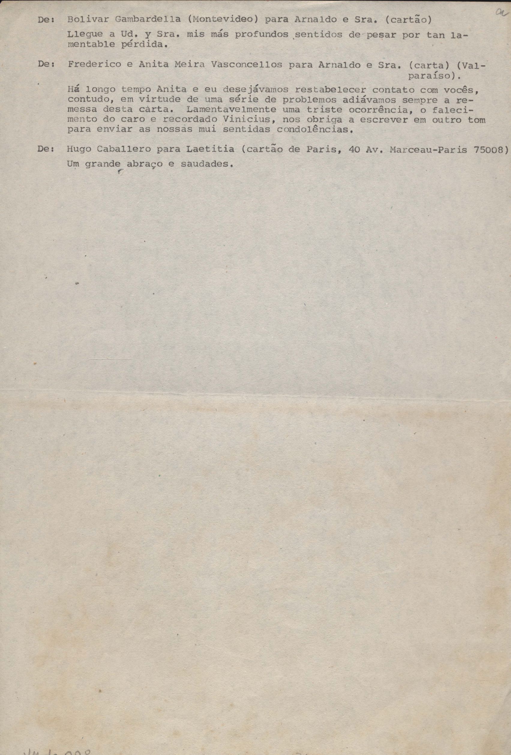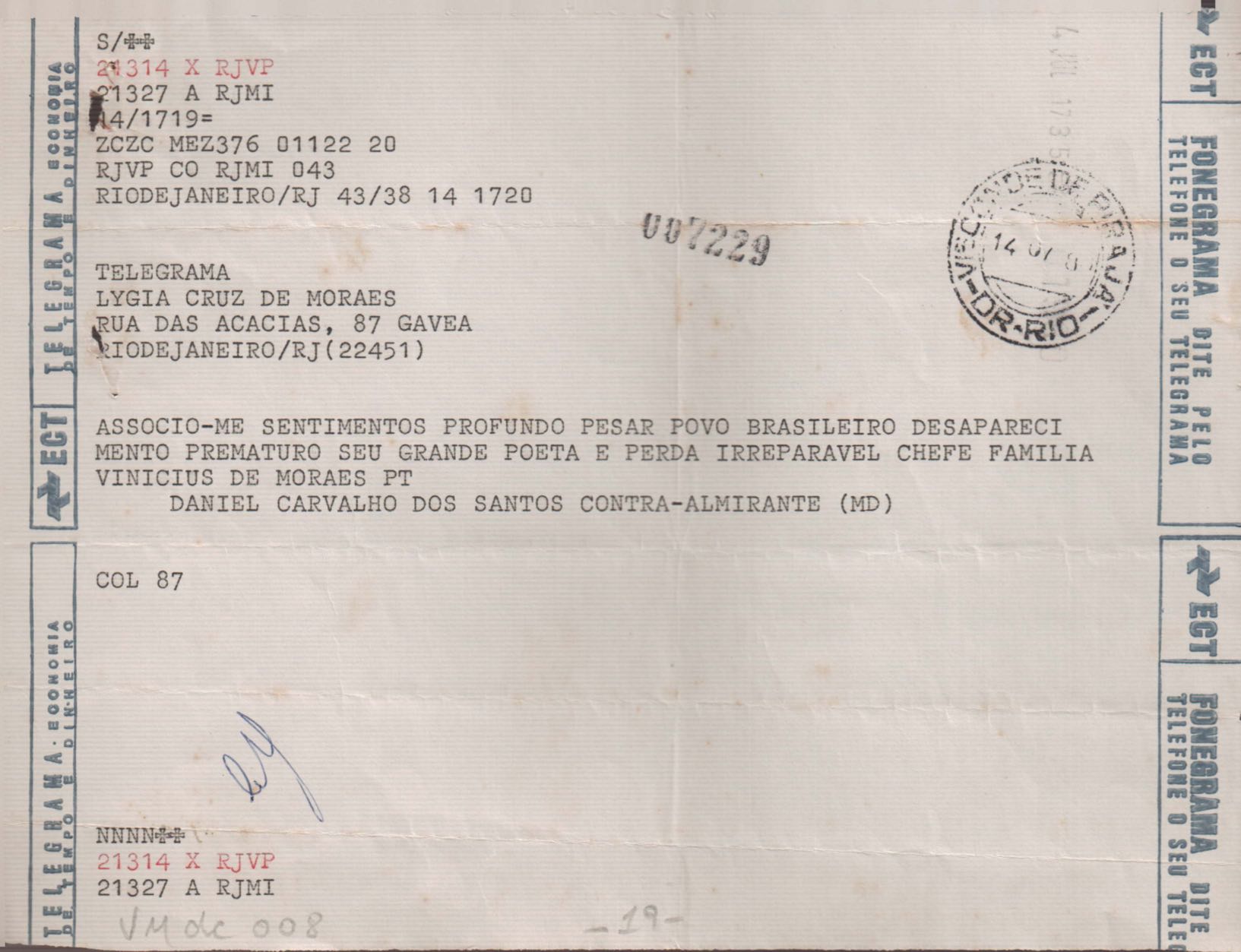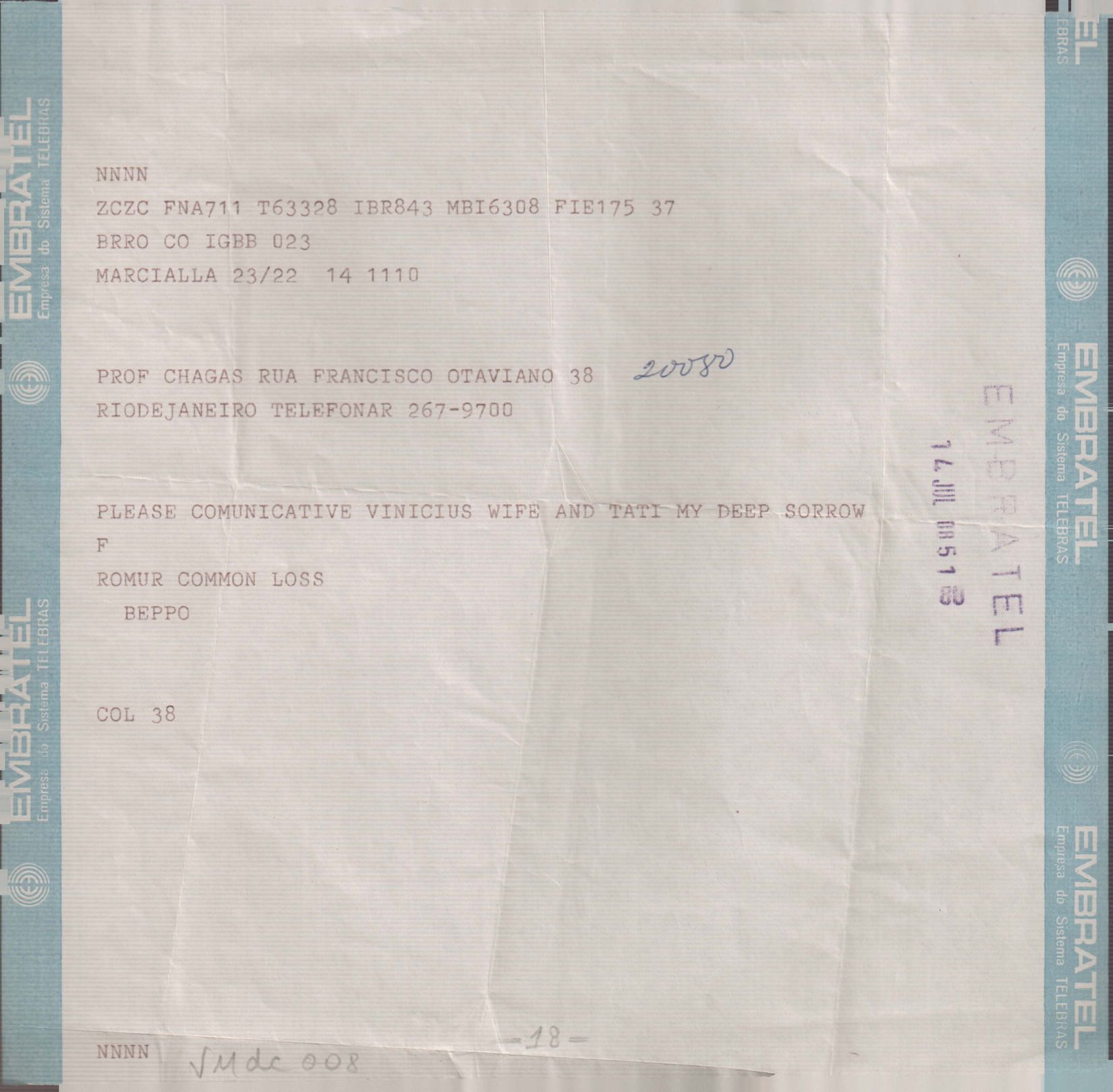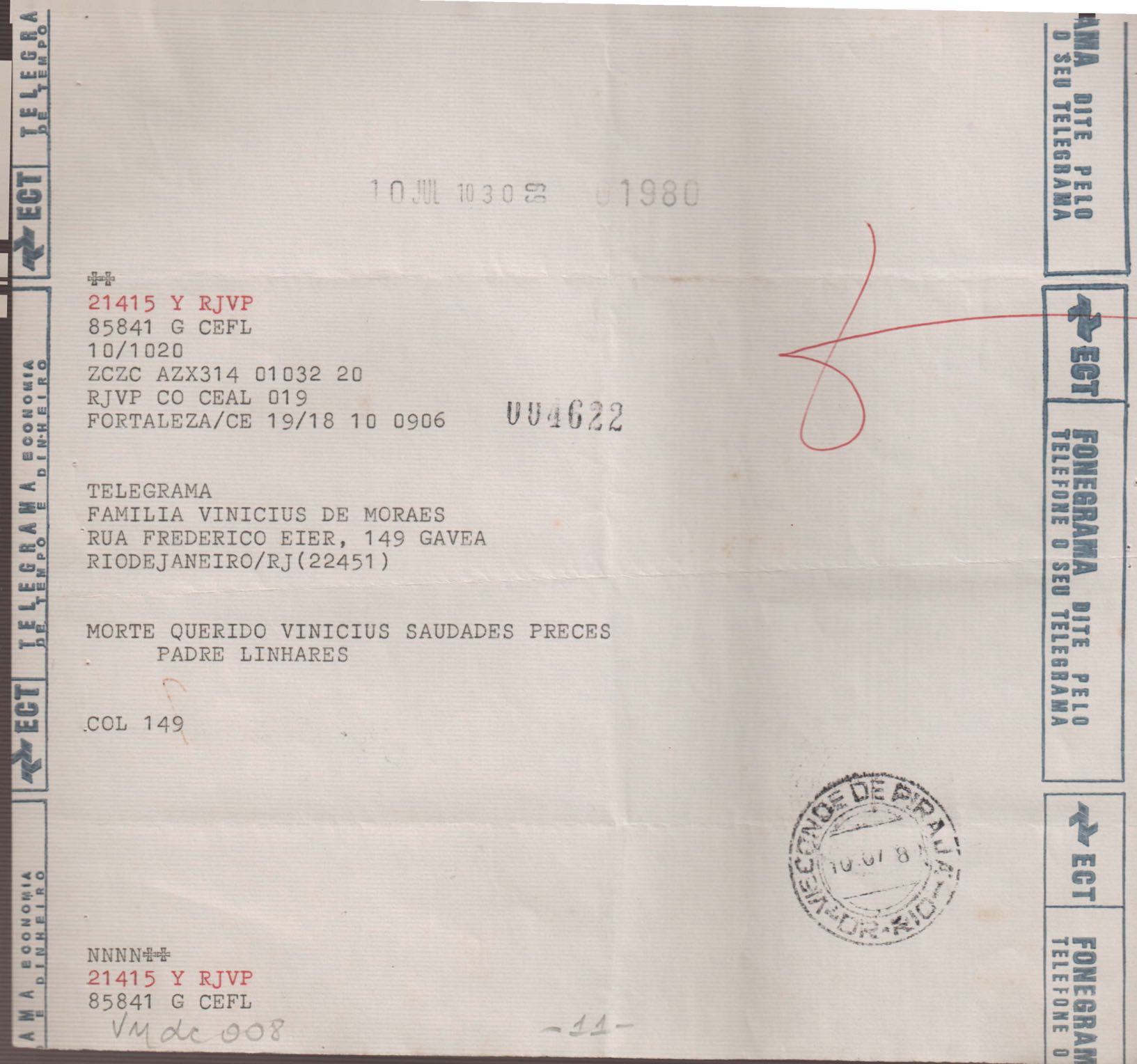 Anexo: Transcrição de vários telegramas recebidos.