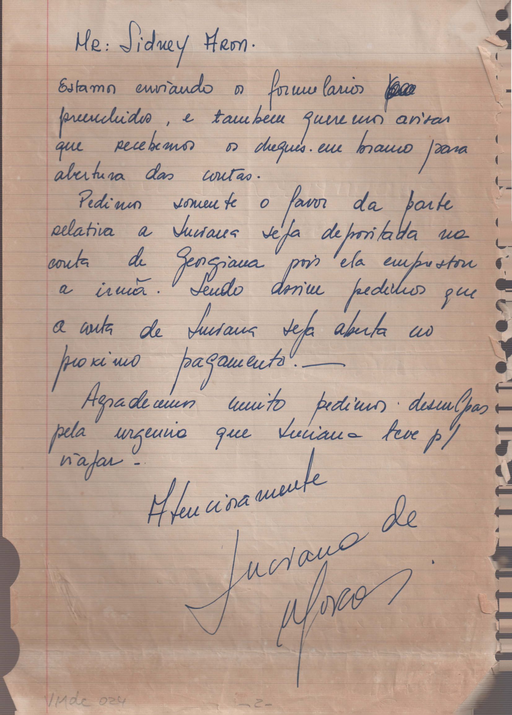 Orientação sobre movimentação de contas no exterior. Anexo: Rascunho das cartas.