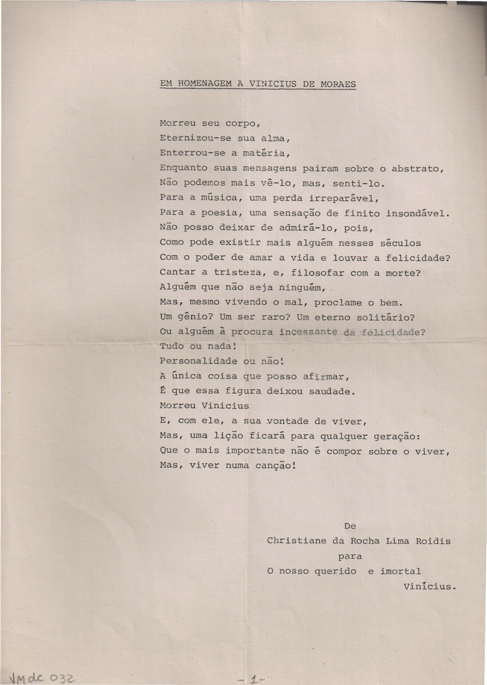 "Em homenagem a Vinicius de Moraes"