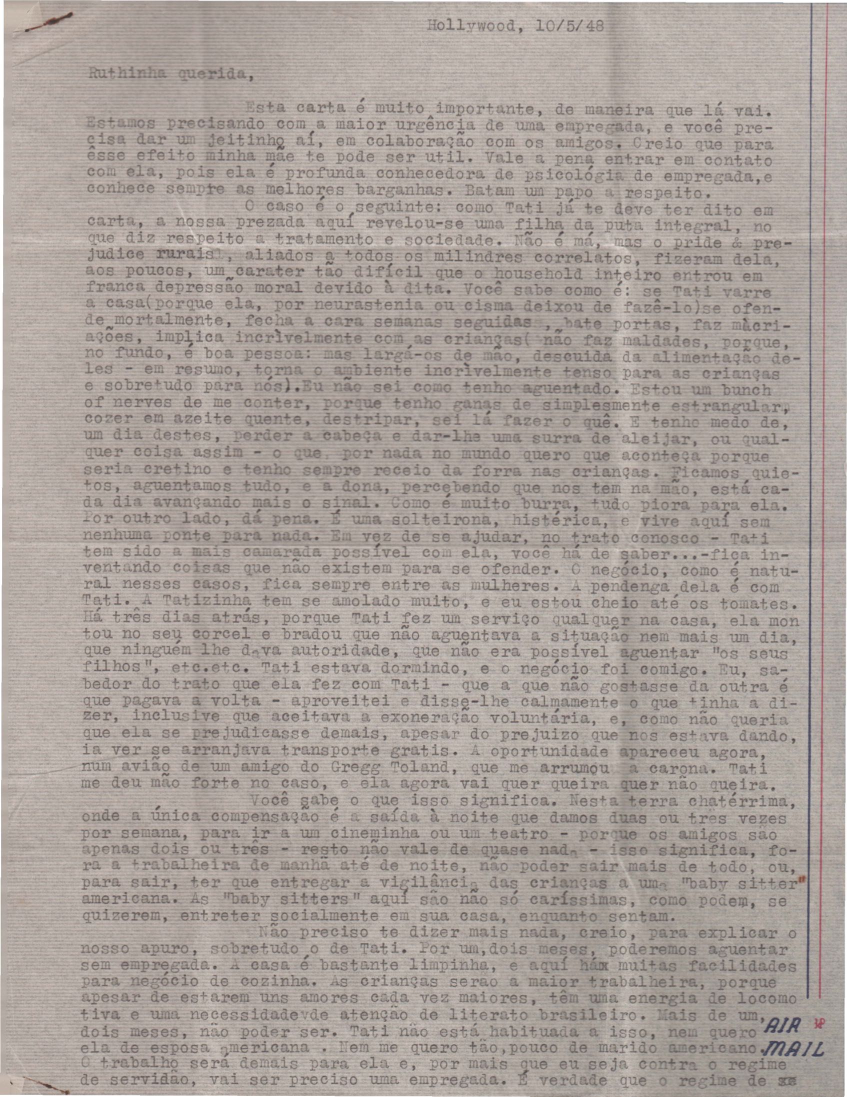 SÉRIE: CORRESPONDÊNCIA PESSOAL