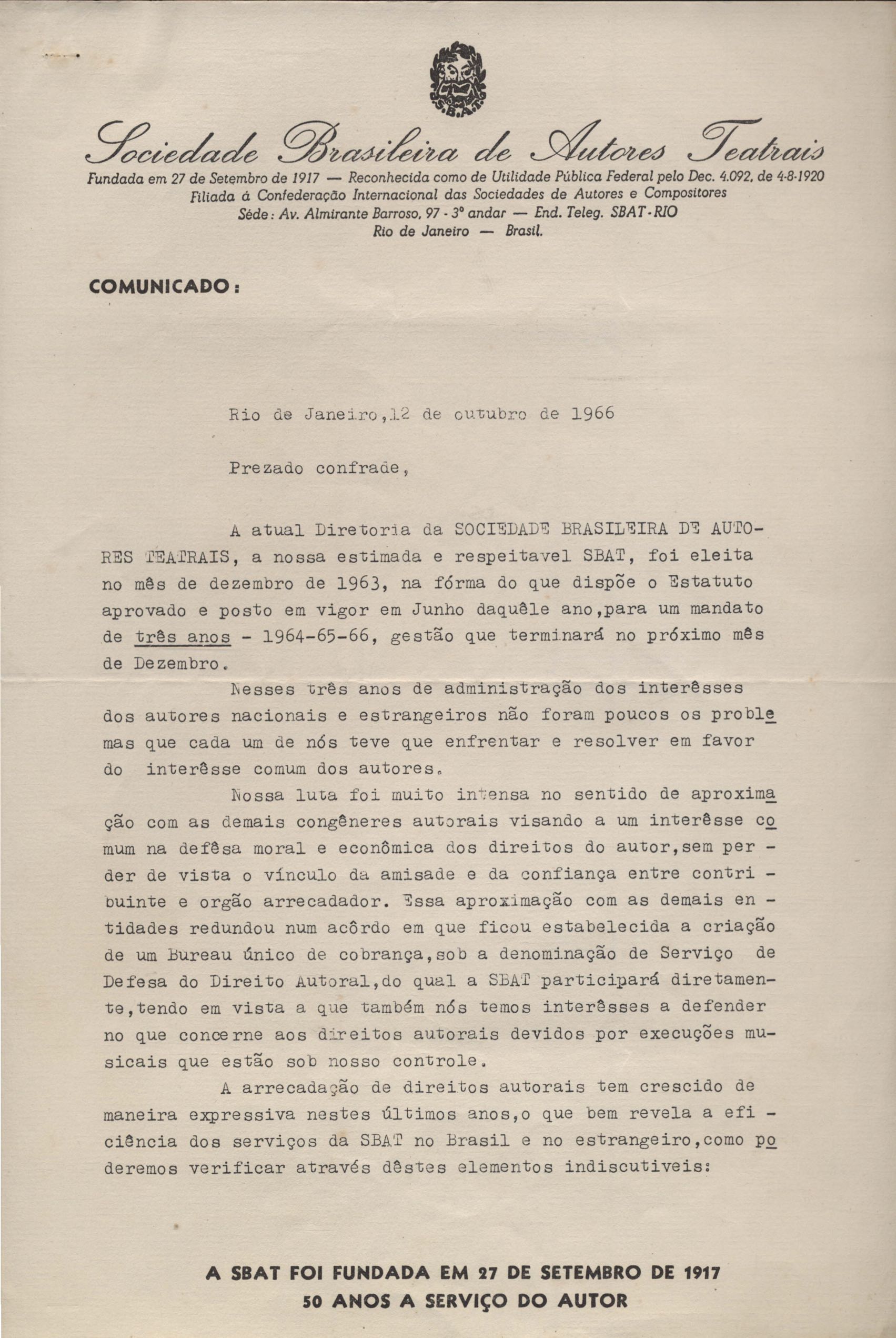 AUTOR: SOCIEDADE BRASILEIRA DE AUTORES TEATRAIS (SBAT)