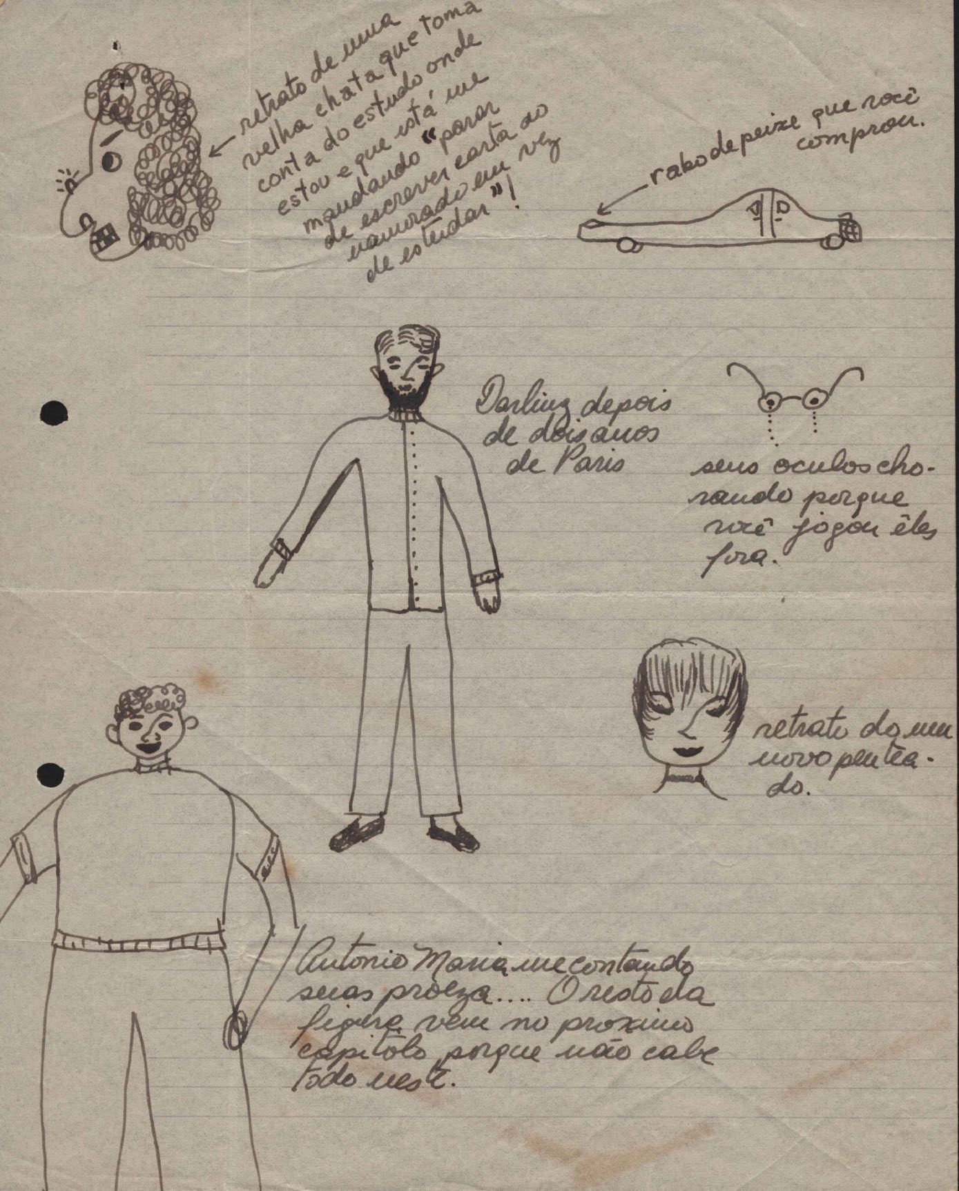 Correspondências entre VM e sua filha, Susana de Moraes Feinberg. Desenhos feitos por Susana. A carta de VM para Susana foi enviada por intermédio de Luís Fernando Amaral.