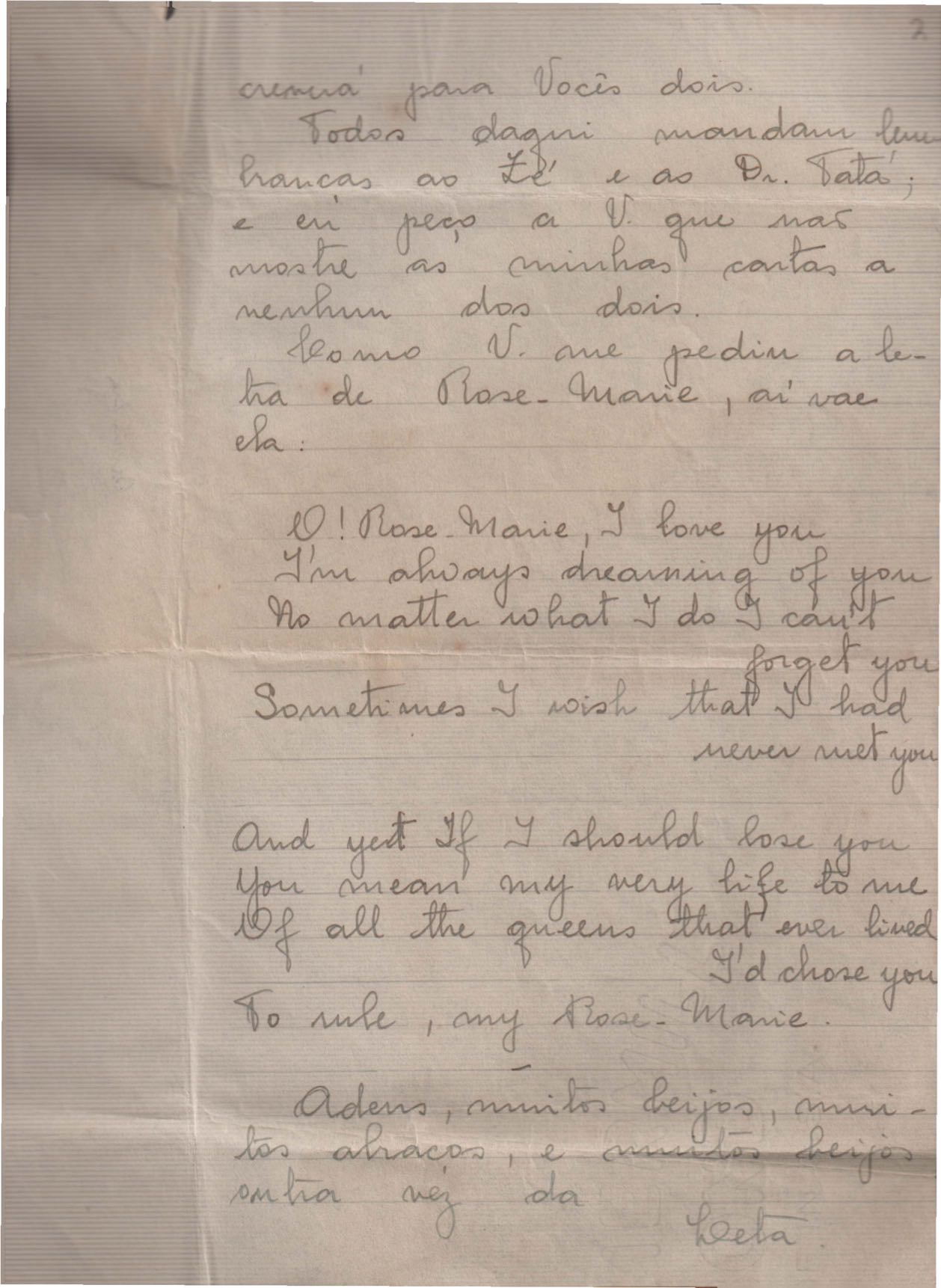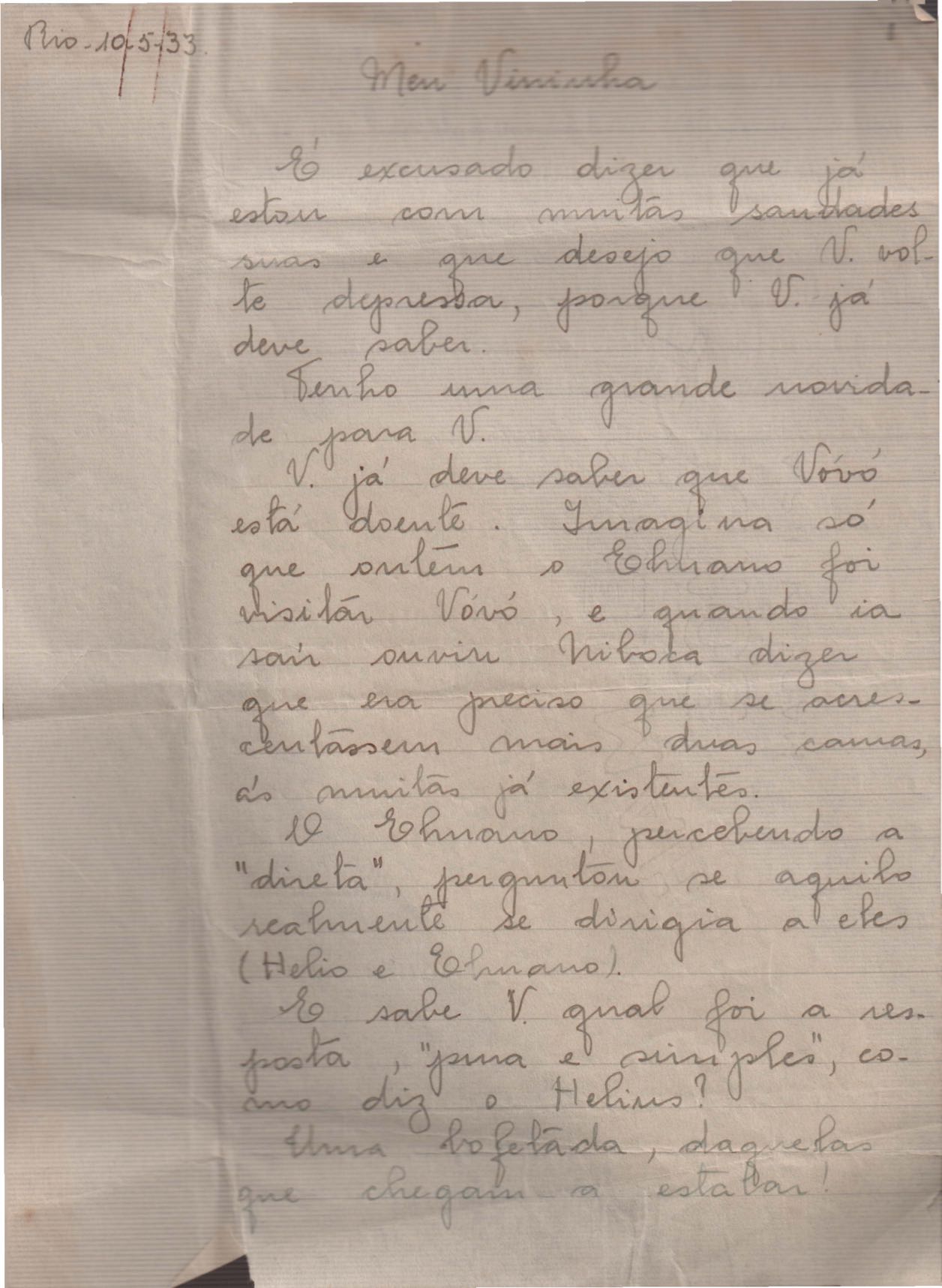 Correspondências entre VM e sua irmã, Laetitia Cruz de Moraes. Há cartas manchadas e sem data.
