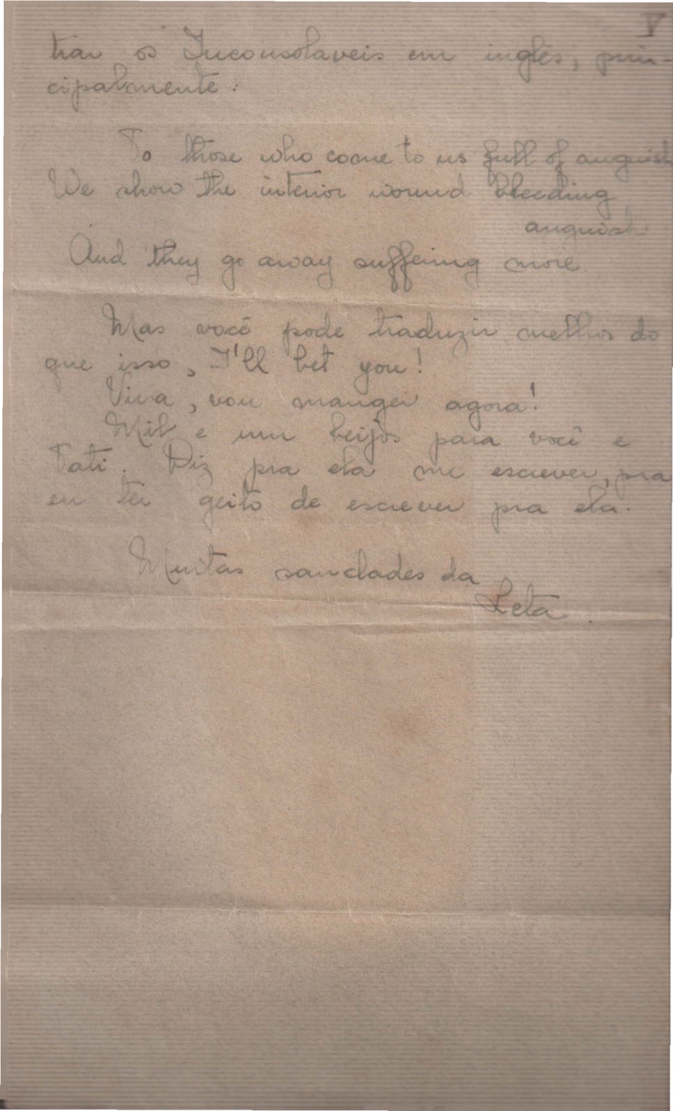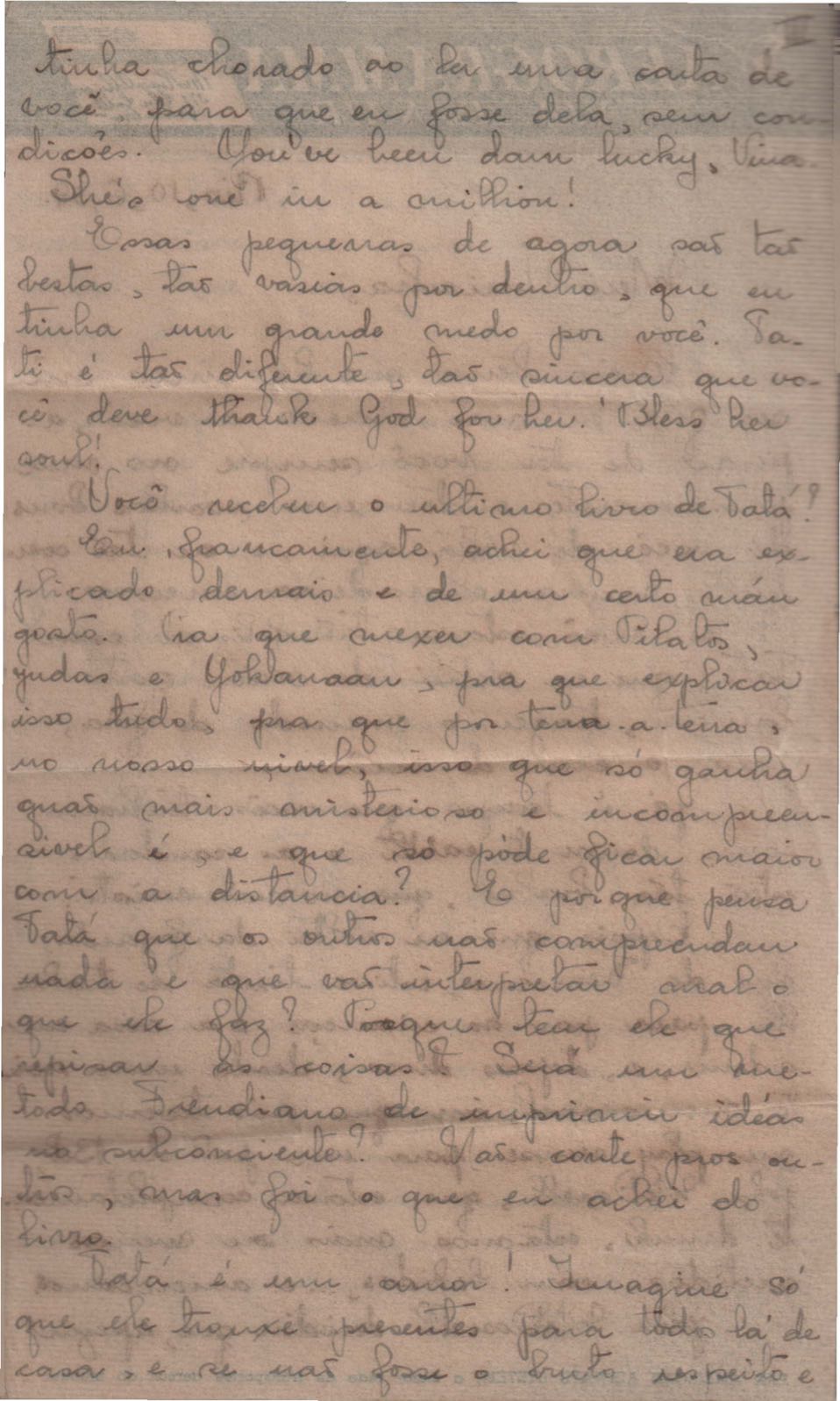 Correspondências entre VM e sua irmã, Laetitia Cruz de Moraes. Há cartas manchadas e sem data.