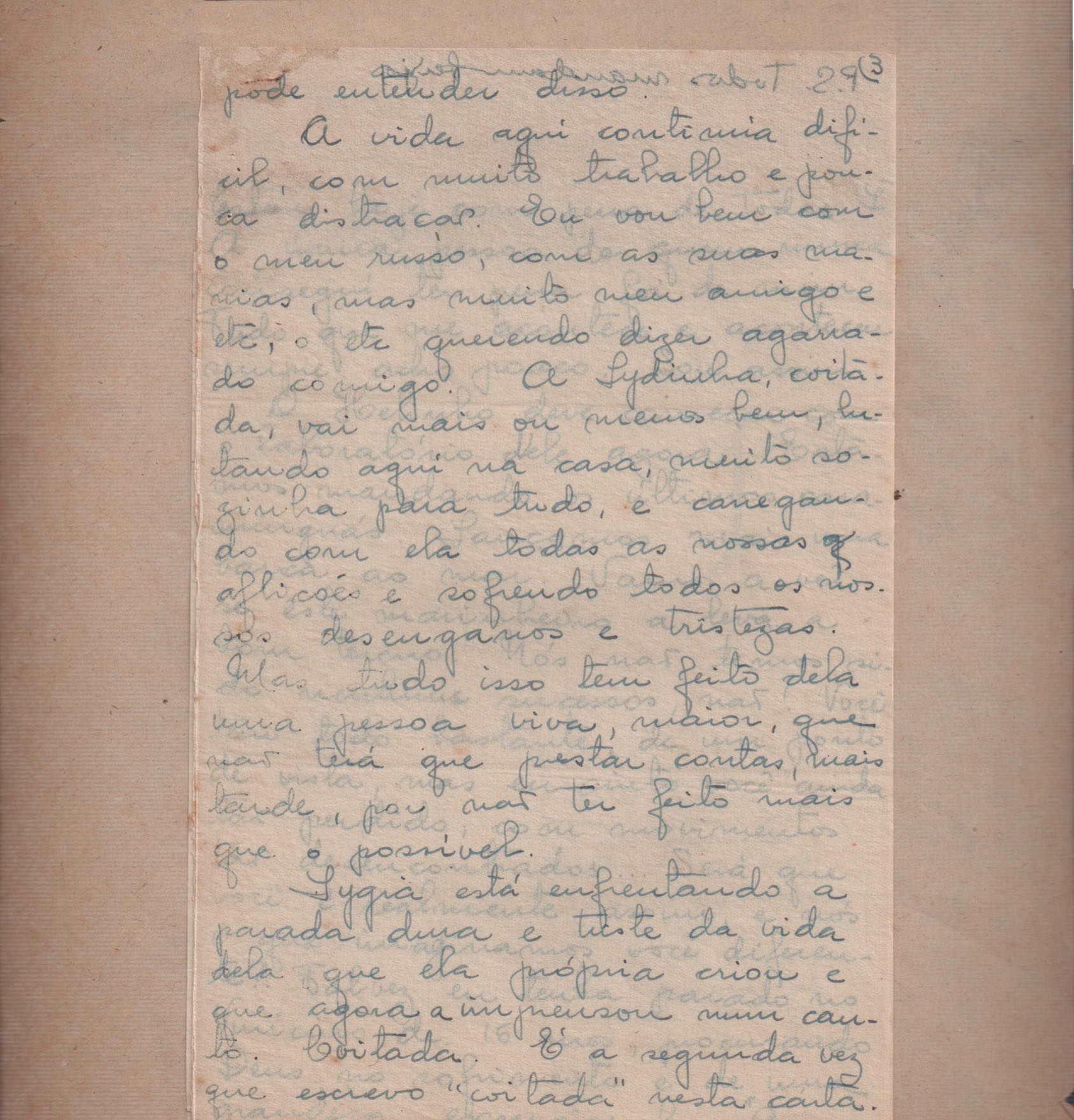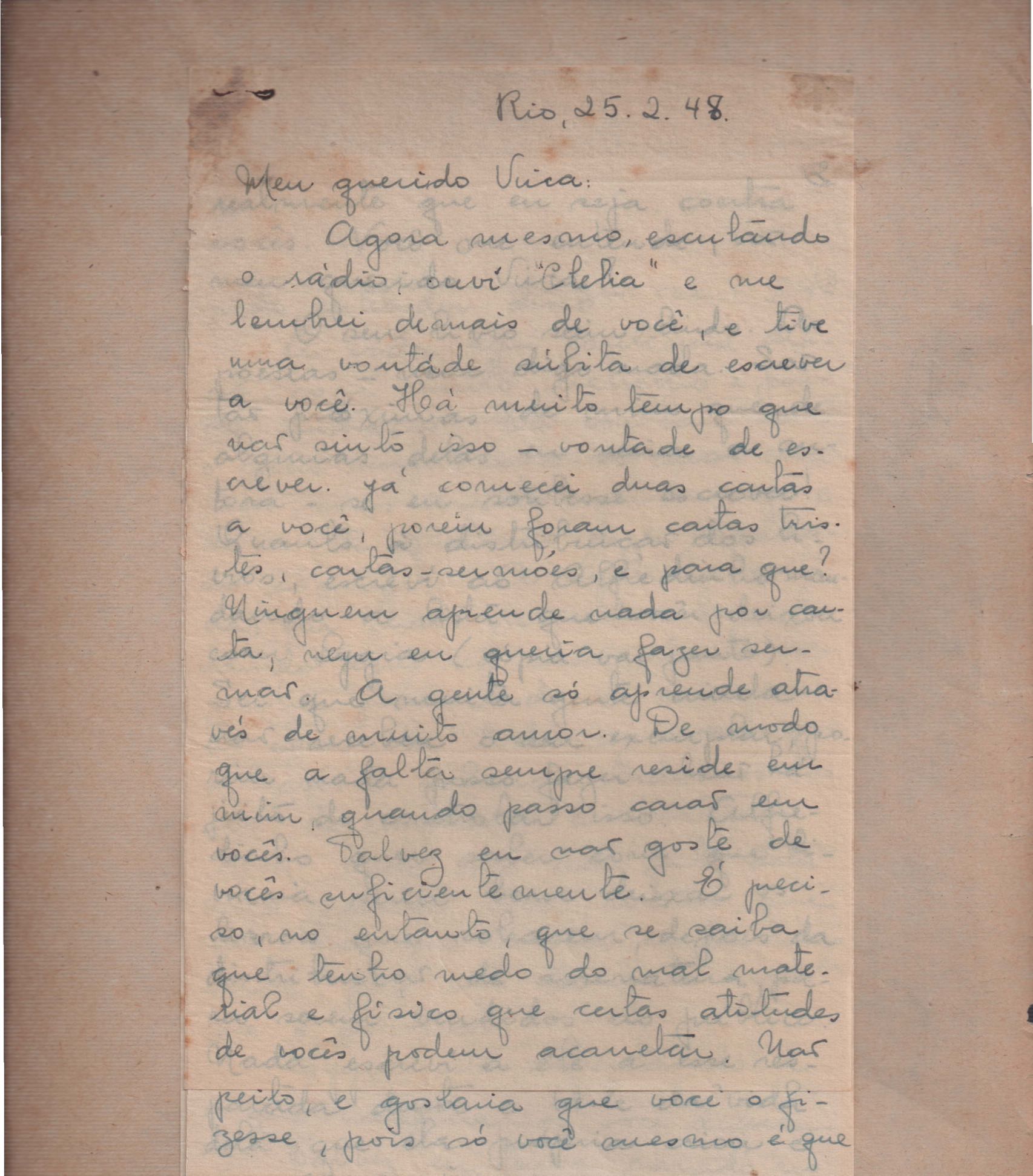 Correspondências entre VM e sua irmã, Laetitia Cruz de Moraes. Há cartas manchadas e sem data.