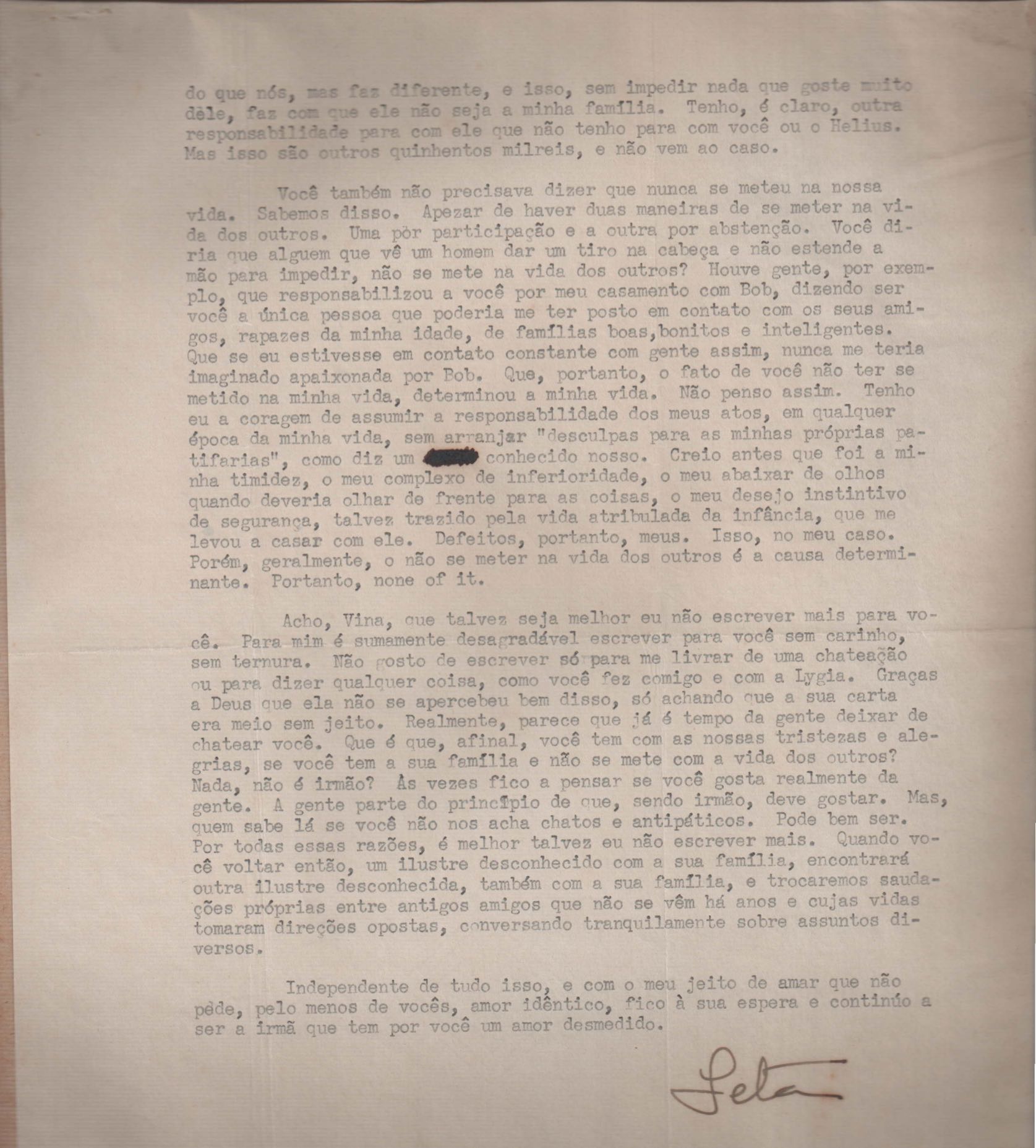 Correspondências entre VM e sua irmã, Laetitia Cruz de Moraes. Há cartas manchadas e sem data.