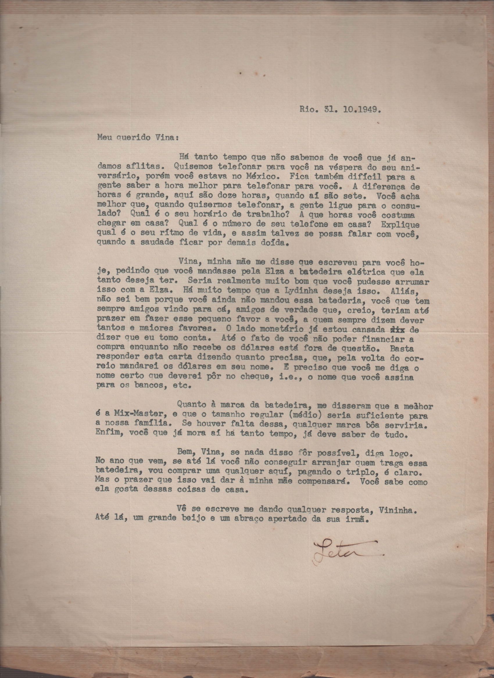 Correspondências entre VM e sua irmã, Laetitia Cruz de Moraes. Há cartas manchadas e sem data.