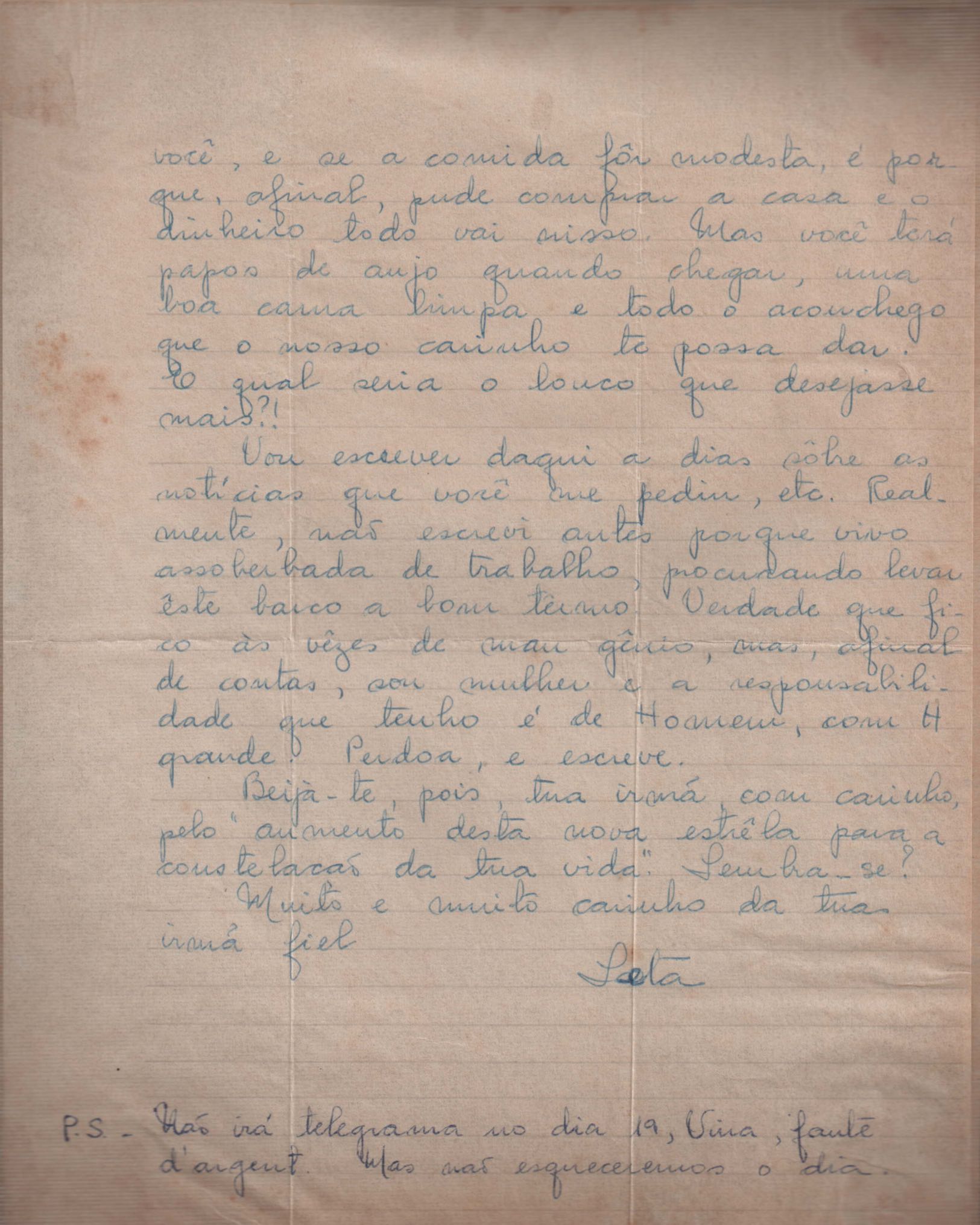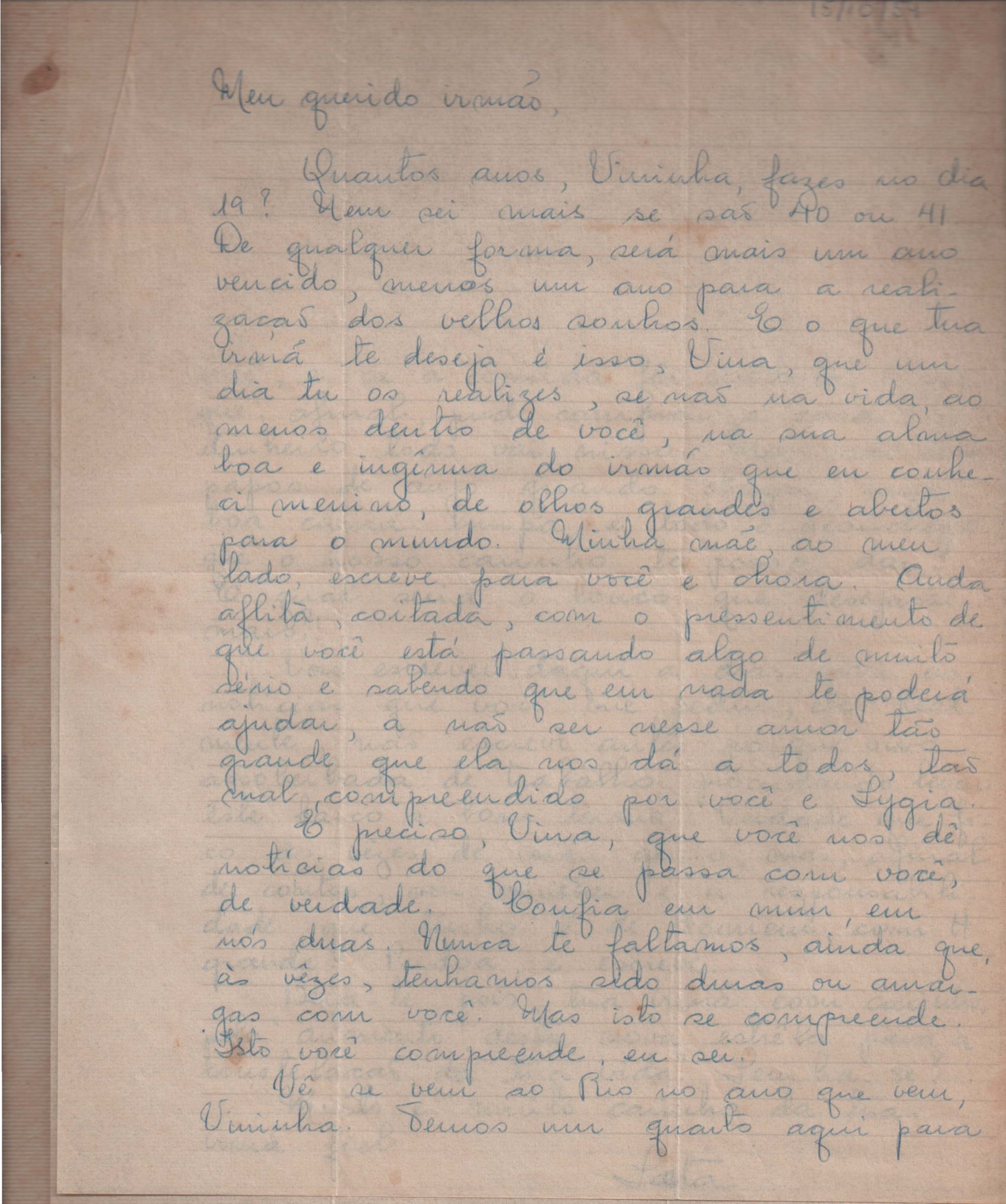 Correspondências entre VM e sua irmã, Laetitia Cruz de Moraes. Há cartas manchadas e sem data.