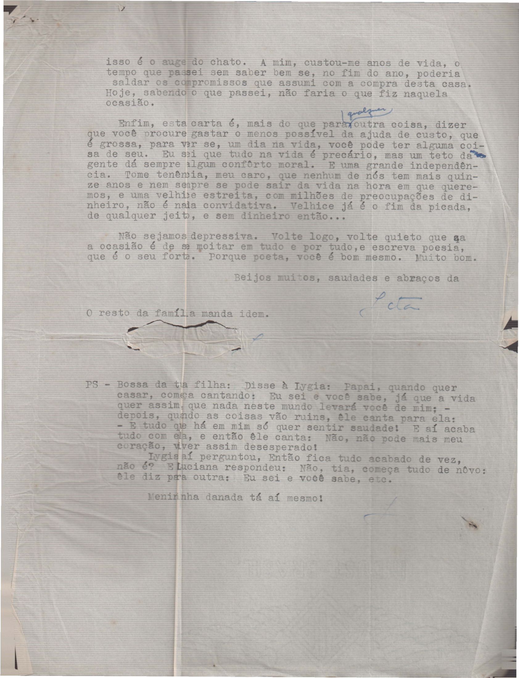 Correspondências entre VM e sua irmã, Laetitia Cruz de Moraes. Há cartas manchadas e sem data.