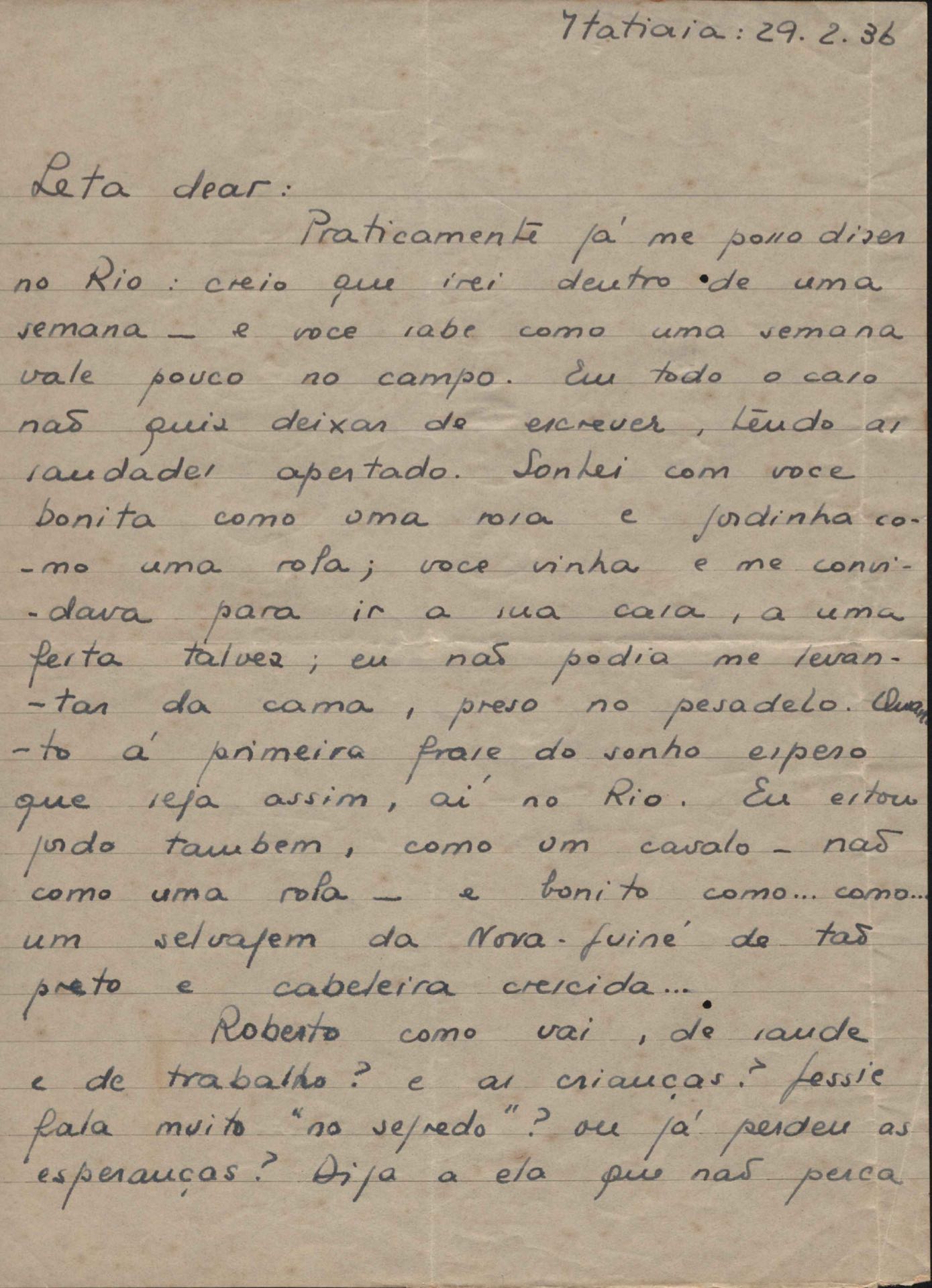 Correspondências entre VM e sua irmã, Laetitia Cruz de Moraes. Há cartas manchadas e sem data.