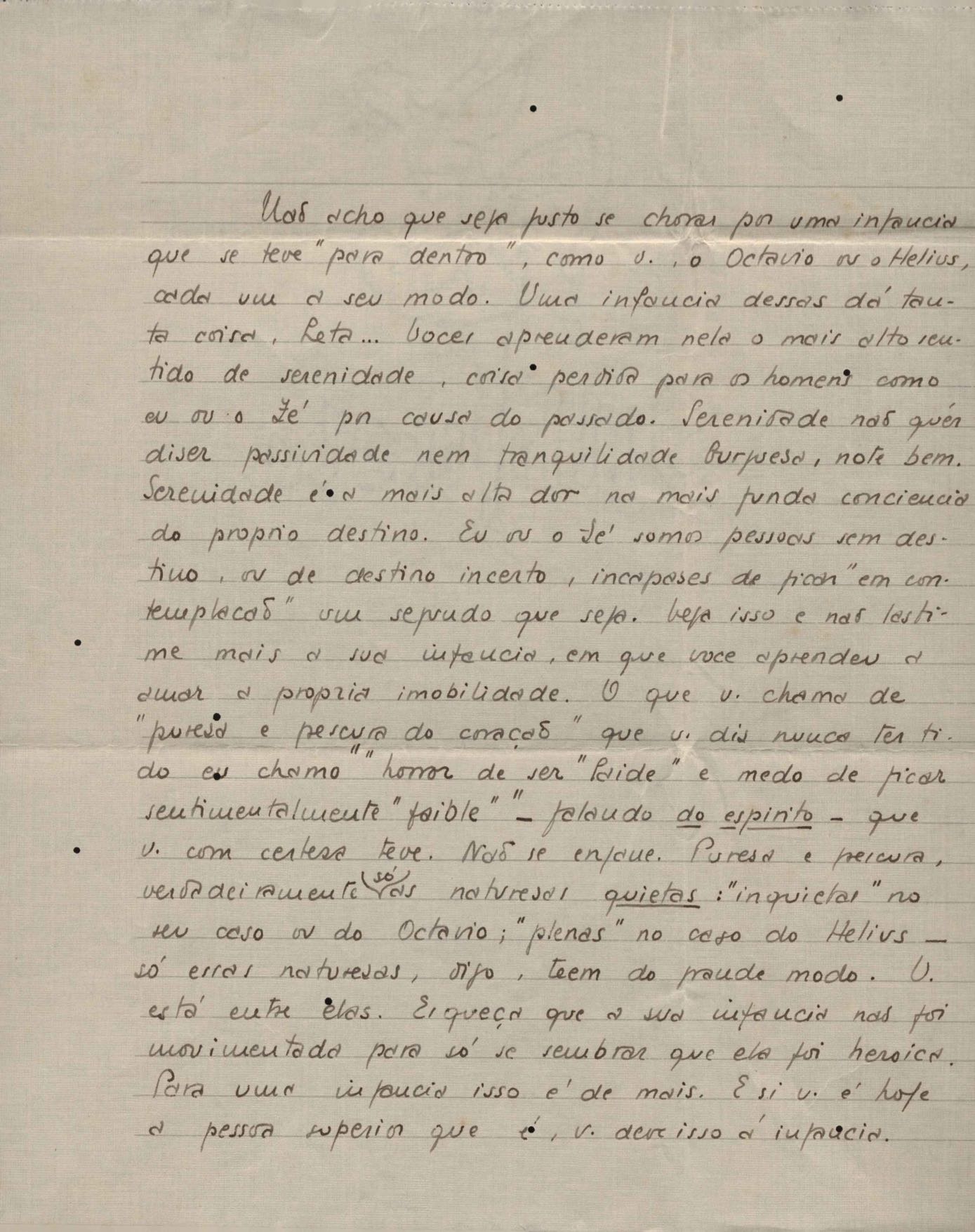 Correspondências entre VM e sua irmã, Laetitia Cruz de Moraes. Há cartas manchadas e sem data.