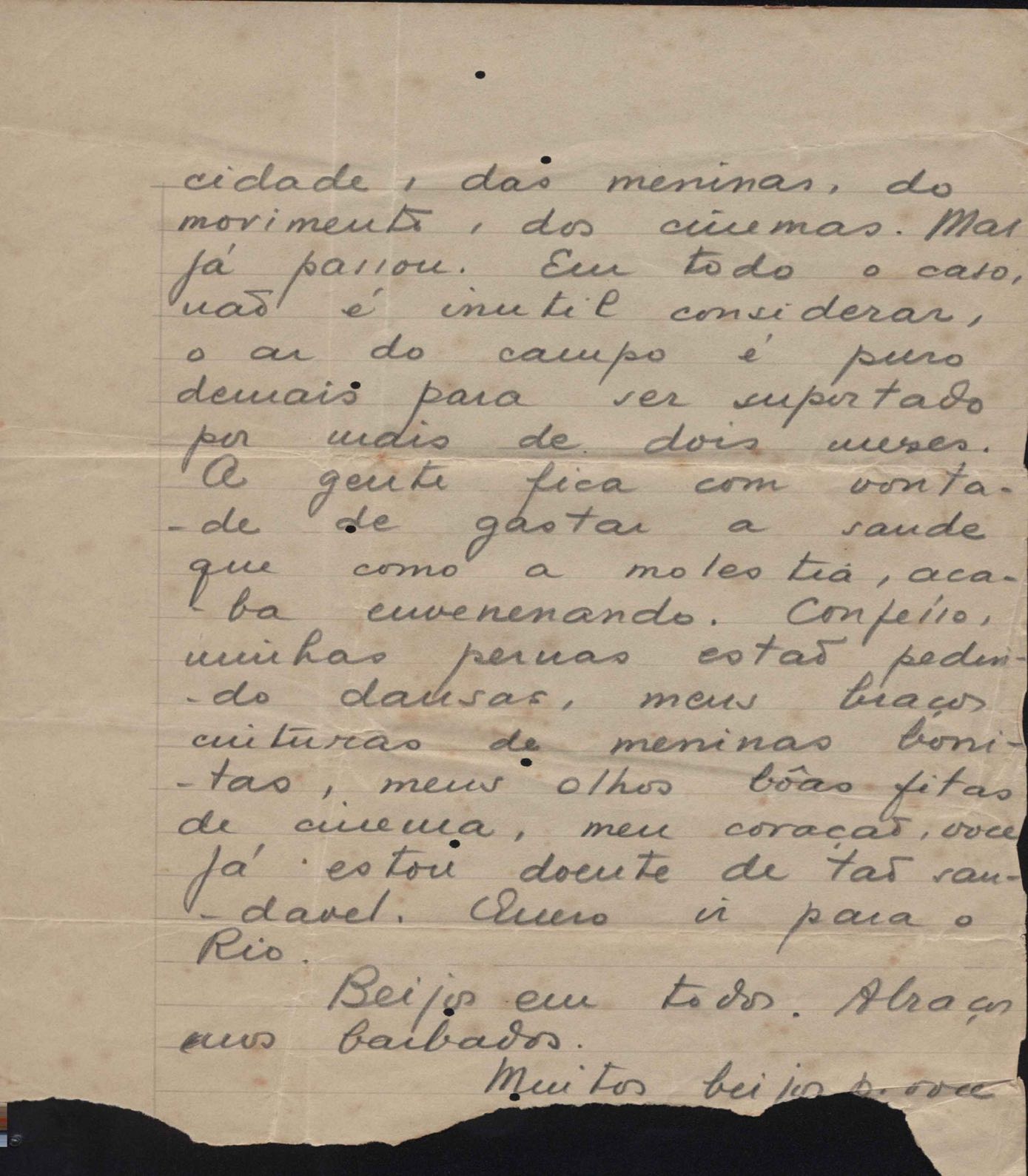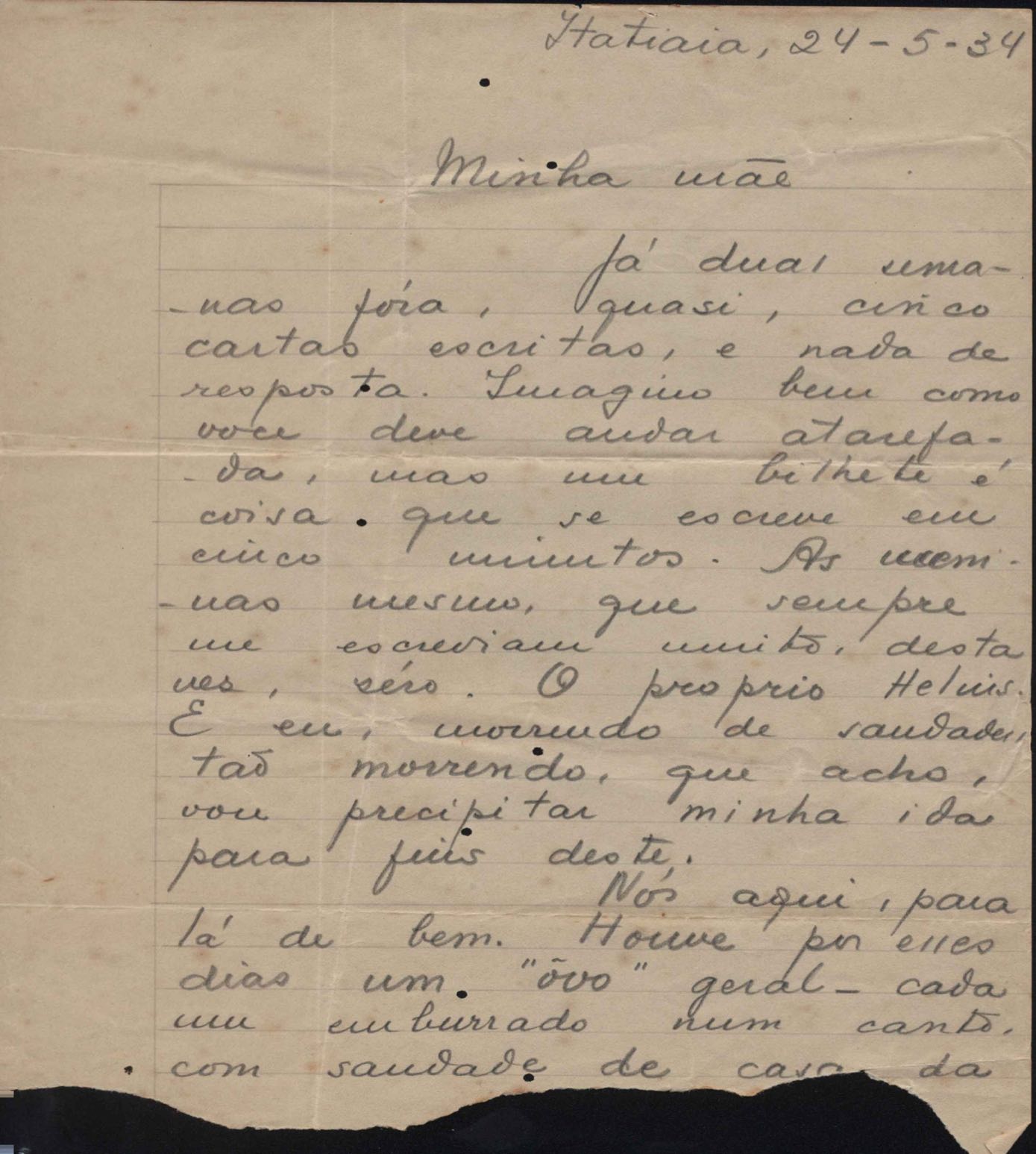 Correspondências entre VM e sua mãe, Lydia Cruz de Moraes. Há cartas sem data e algumas com notas para familiares. Em alguns casos há somente o envelope.