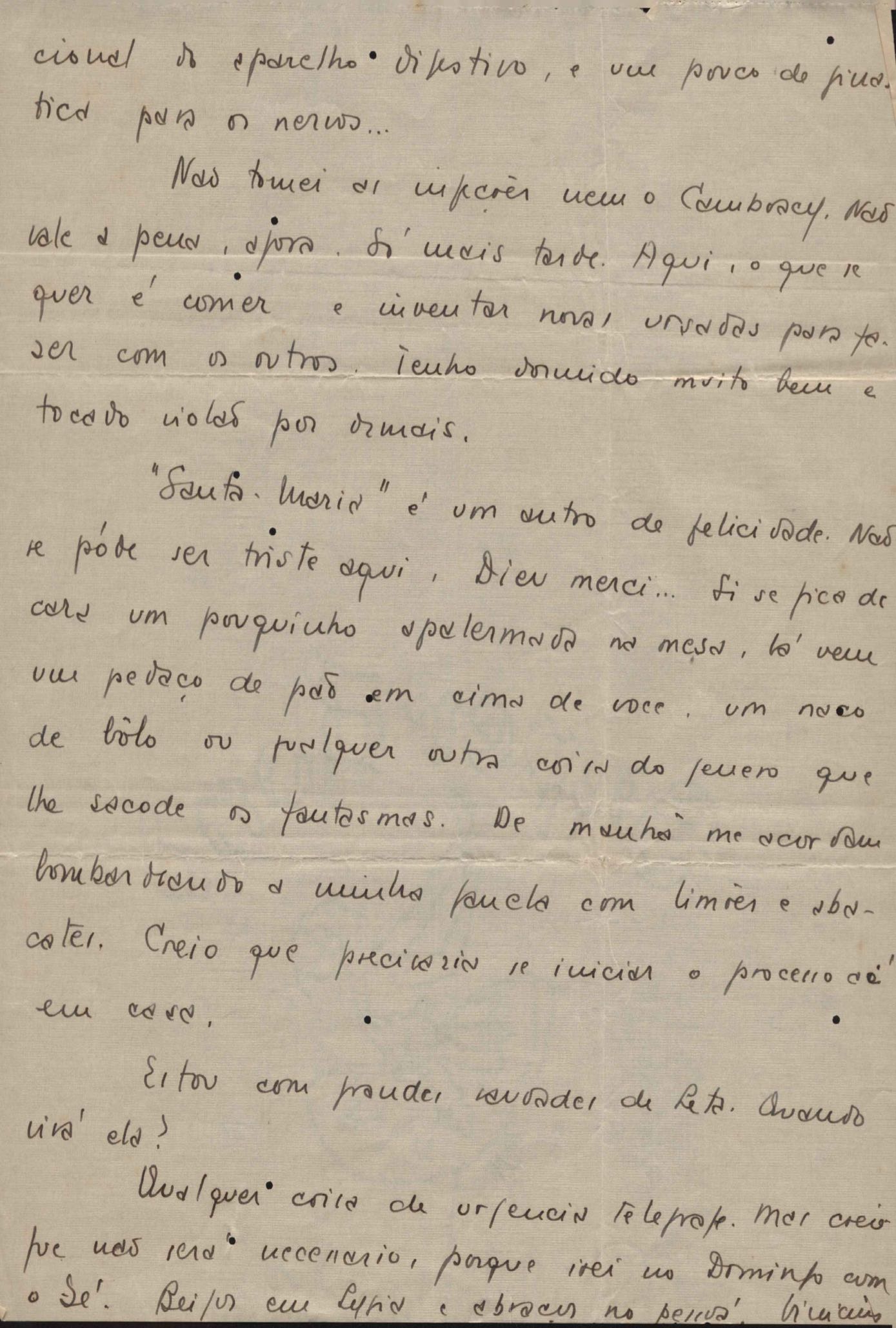 Correspondências entre VM e sua mãe, Lydia Cruz de Moraes. Há cartas sem data e algumas com notas para familiares. Em alguns casos há somente o envelope.