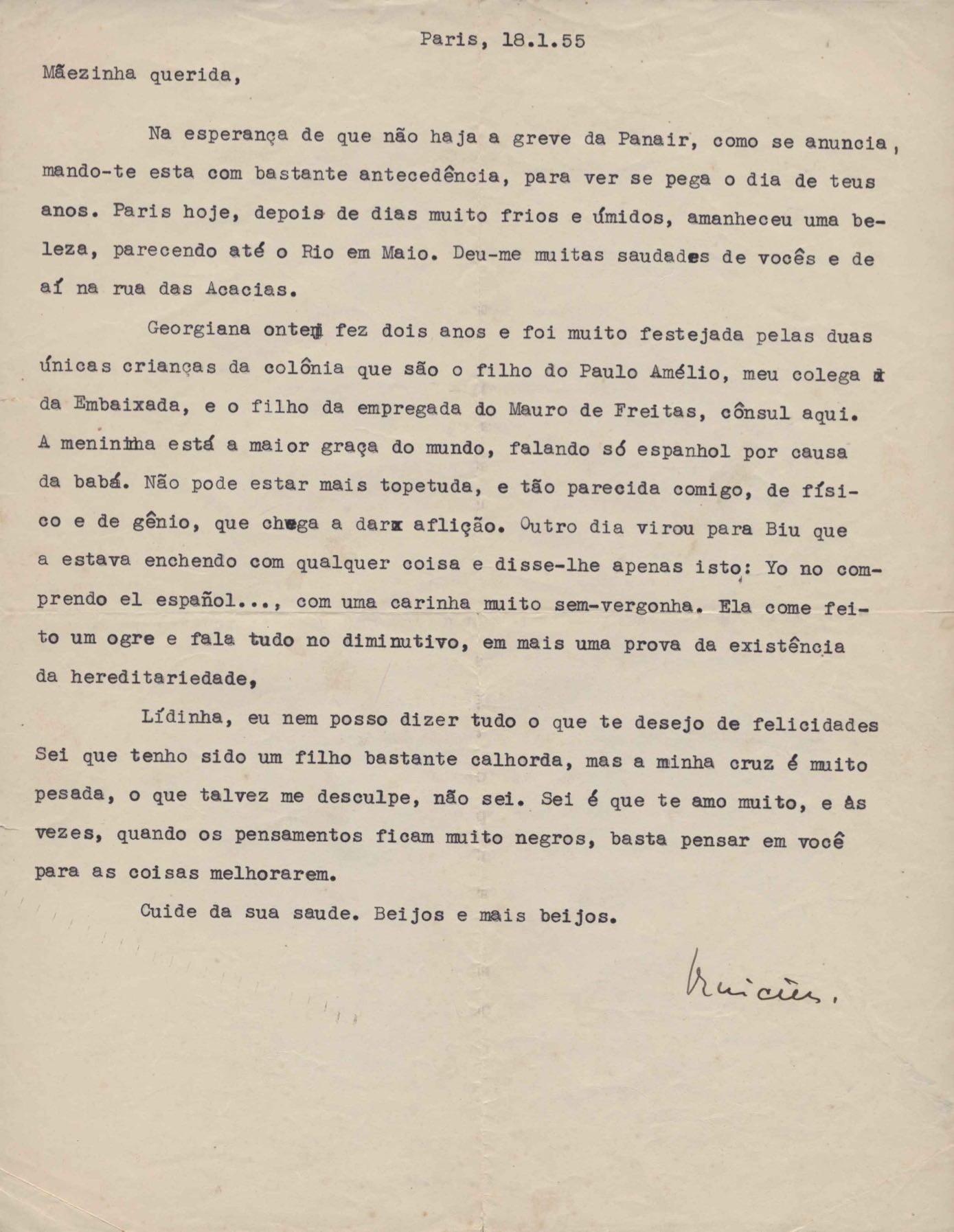 Correspondências entre VM e sua mãe, Lydia Cruz de Moraes. Há cartas sem data e algumas com notas para familiares. Em alguns casos há somente o envelope.
